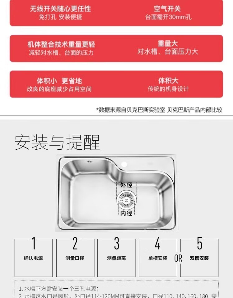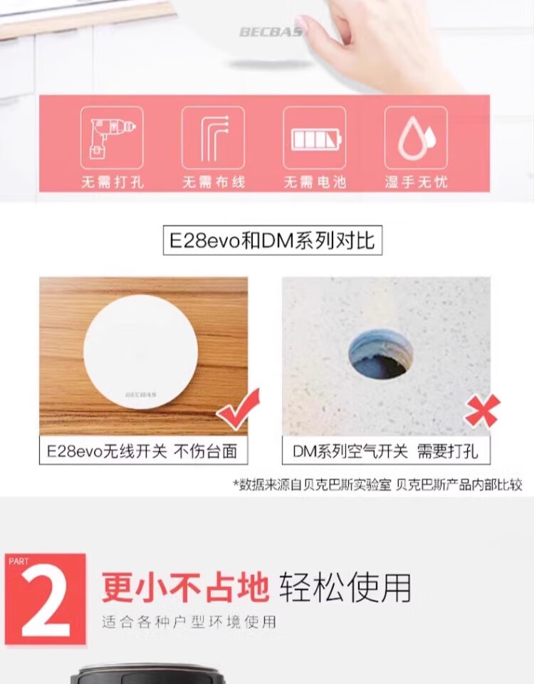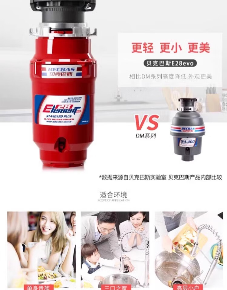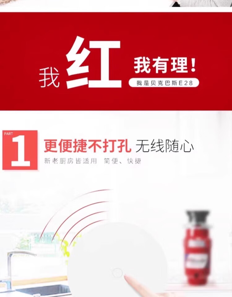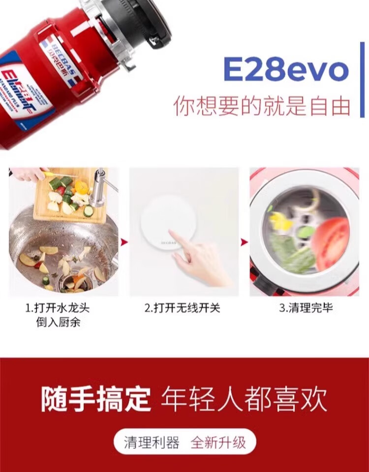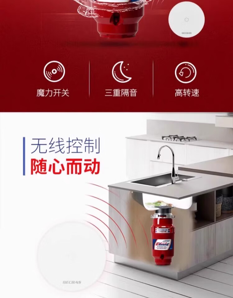 Becbas food waste disposer kitchen waste shredding wireless switch E28EVO E28EVO
