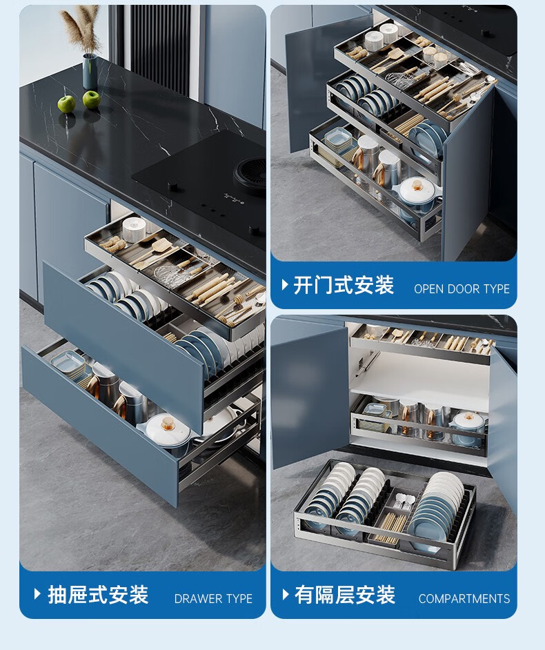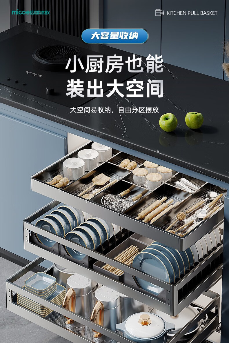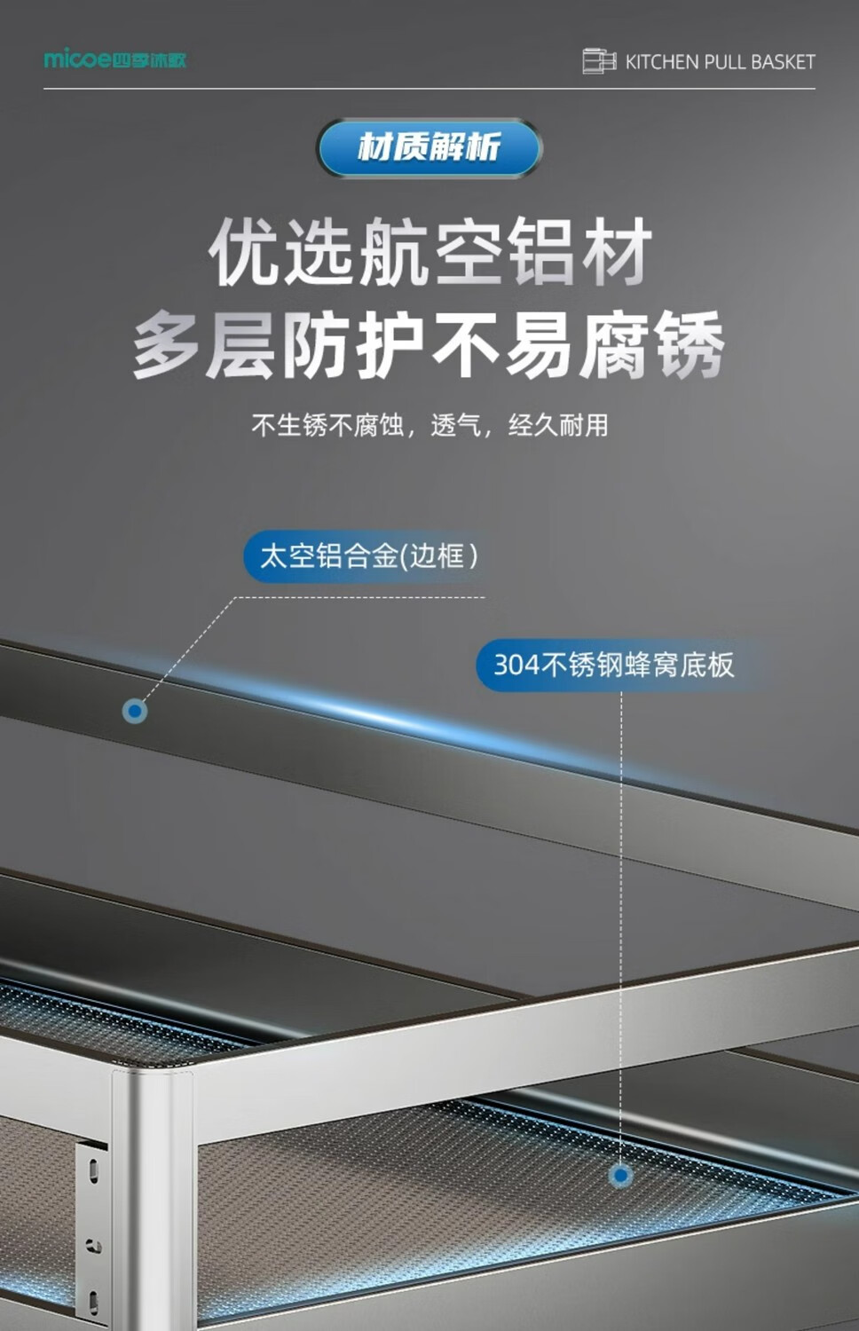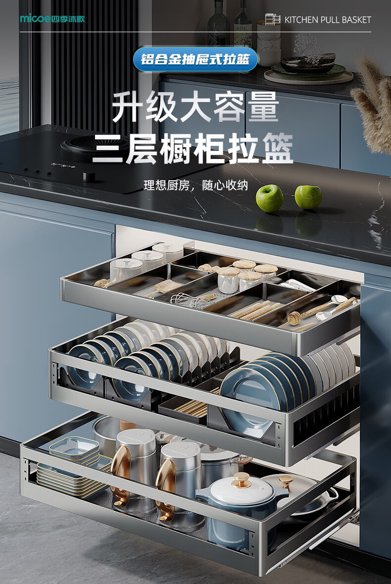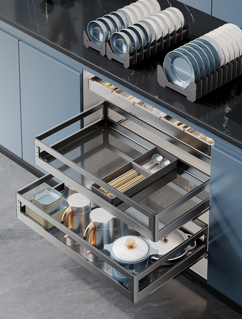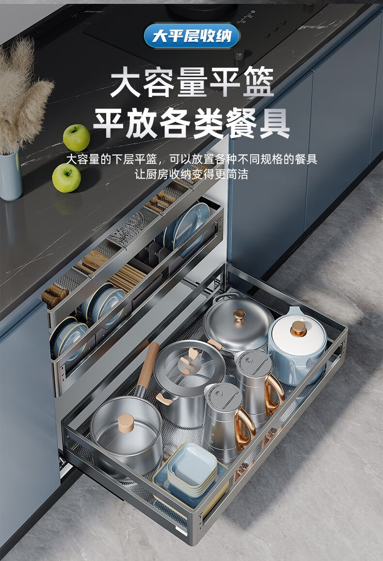 Pull basket kitchen cabinet aluminum alloy double layer drawer type dish rack to store seasoning cabinet bowl basket double layer 500 cabinet-dish basket-basket body aluminum alloy+