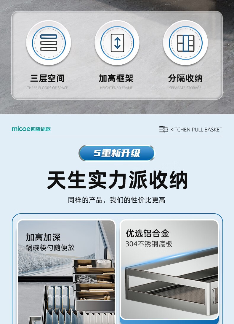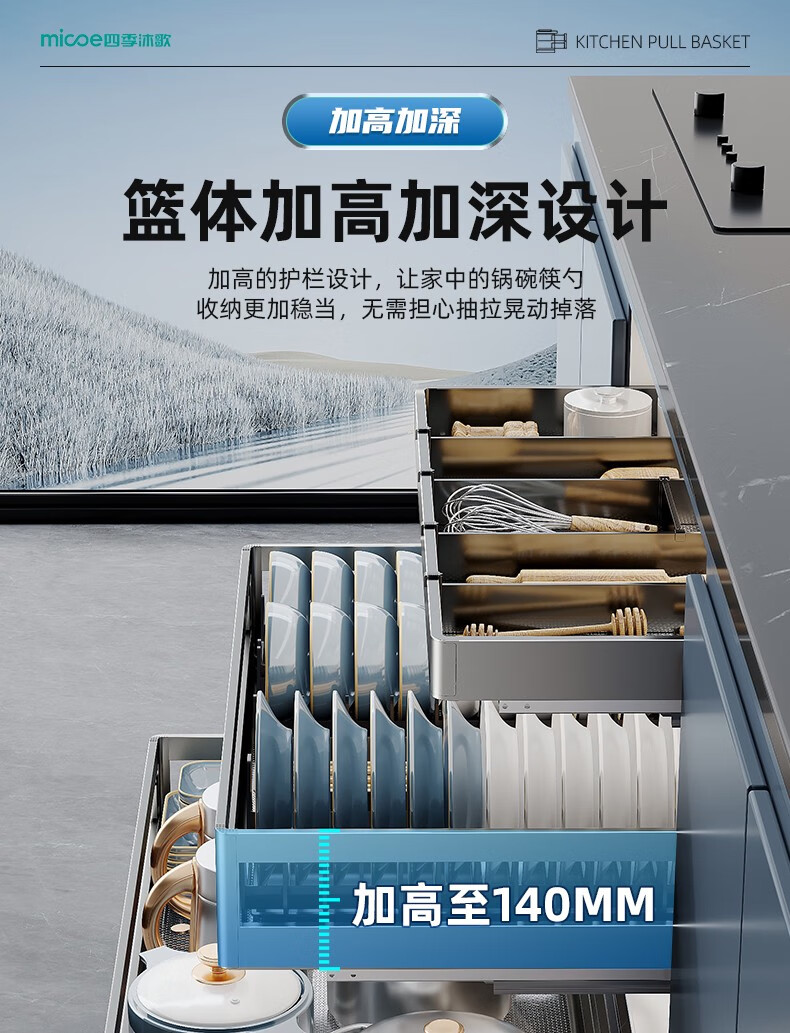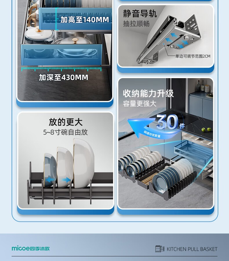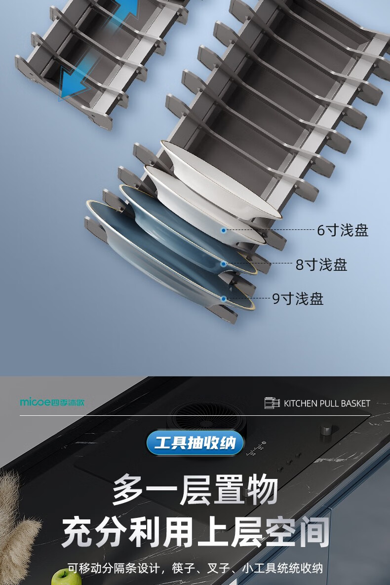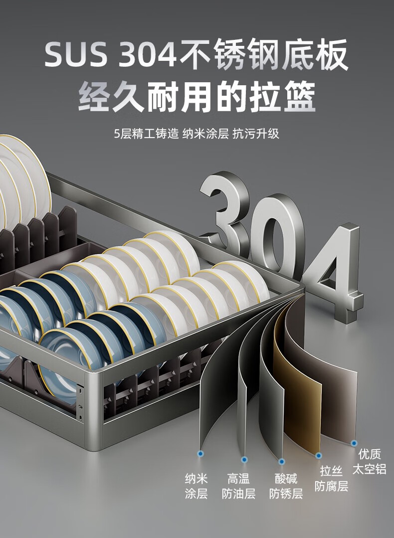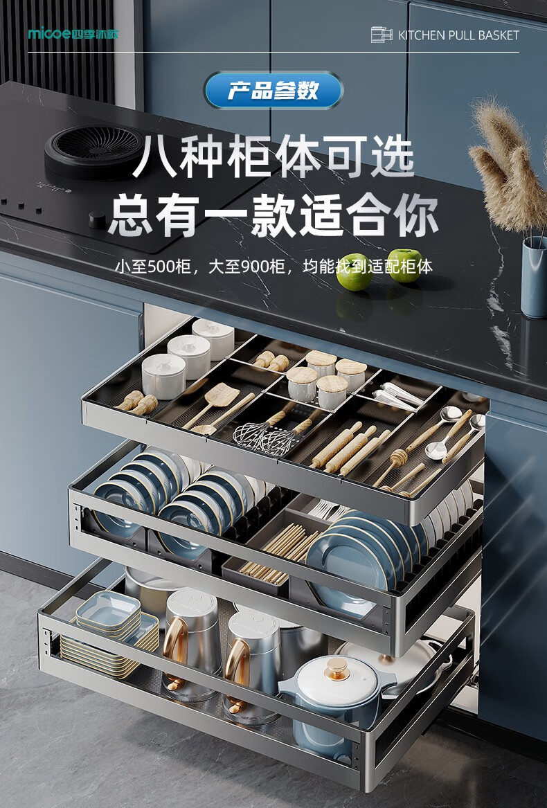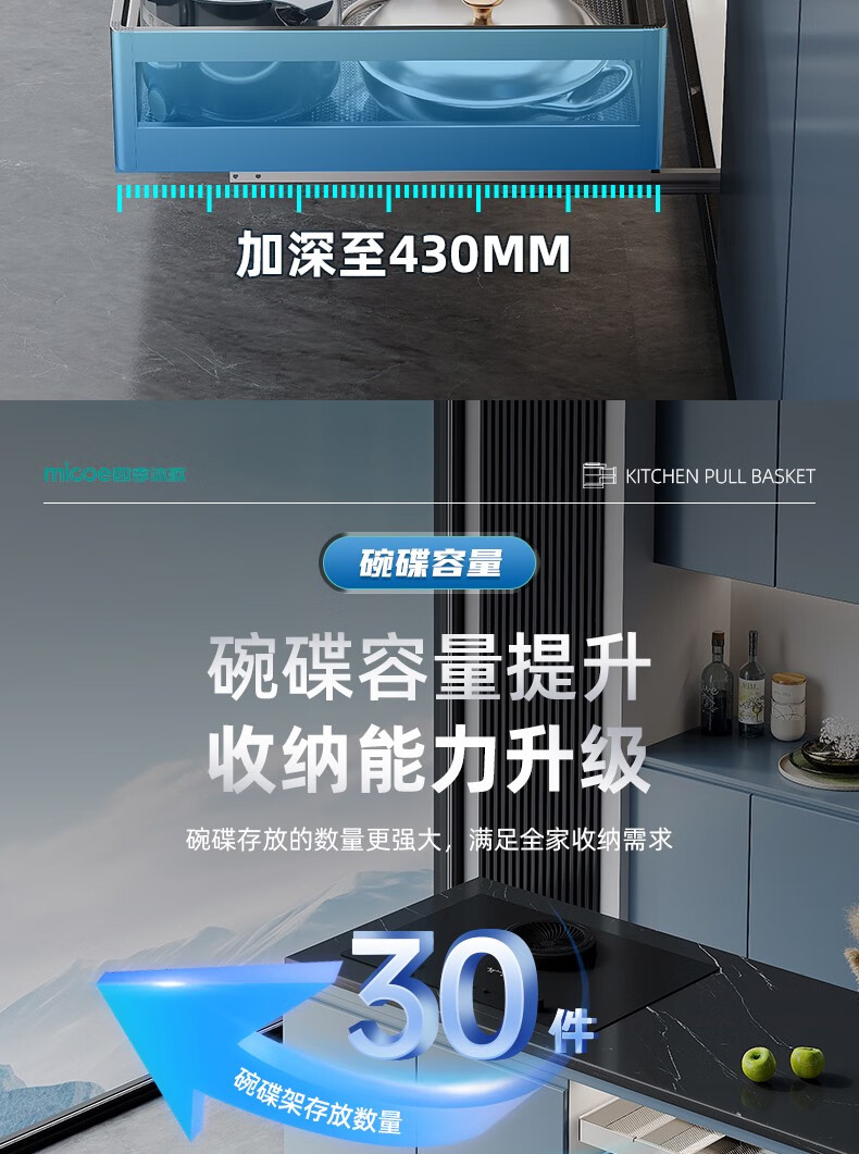 Pull basket kitchen cabinet aluminum alloy double layer drawer type dish rack to store seasoning cabinet bowl basket double layer 500 cabinet-dish basket-basket body aluminum alloy+