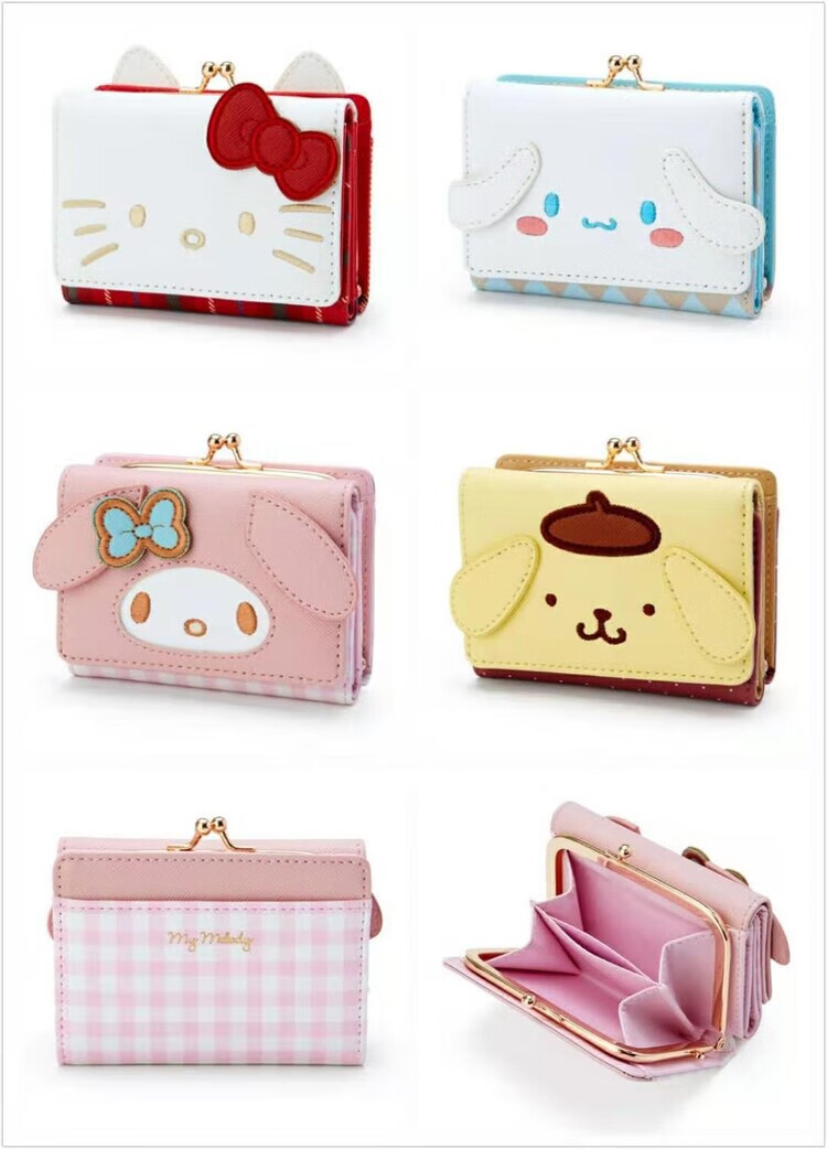Dingtianliying Cartoon Melody Jade Dog Tri-fold Wallet Short Student Wallet Wallet Multiple Card Slots Cute Folding Coin Purse MLD Pink