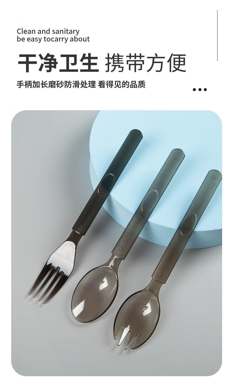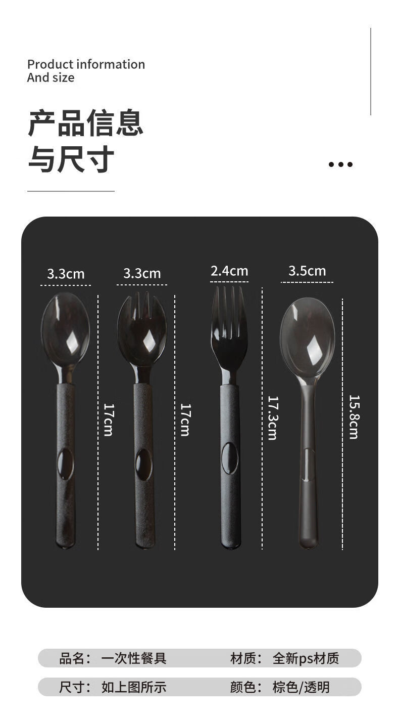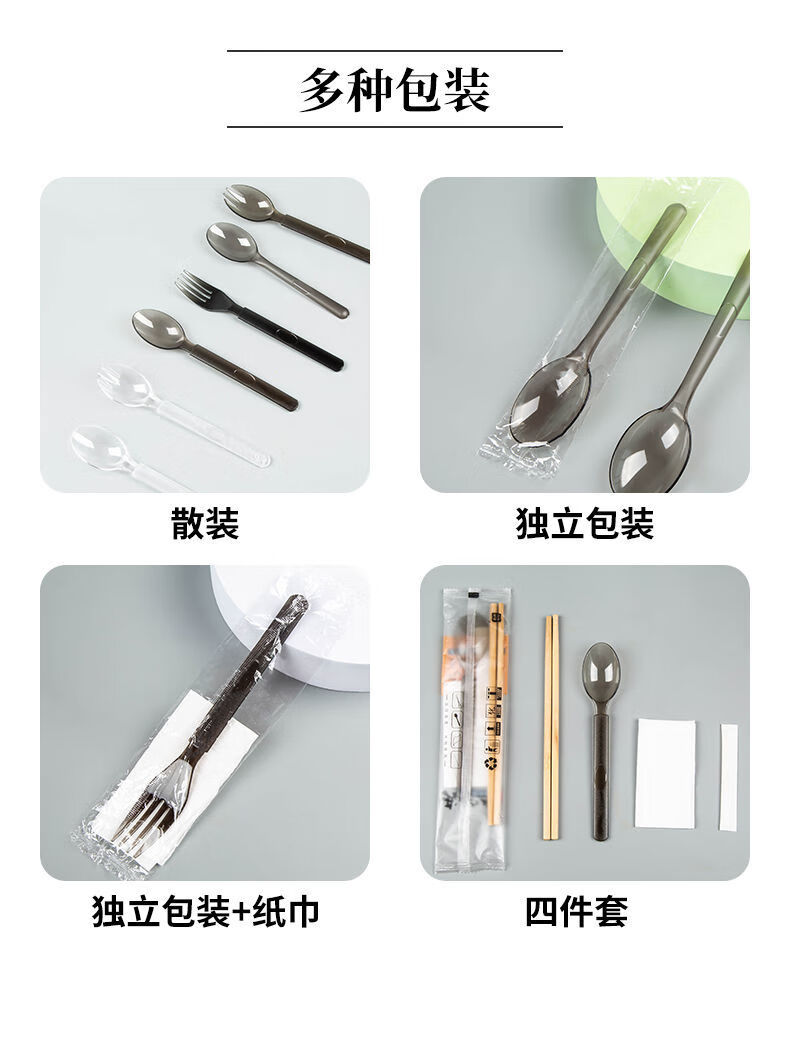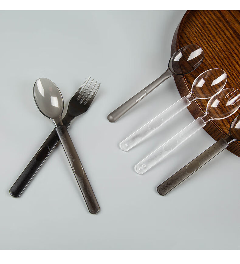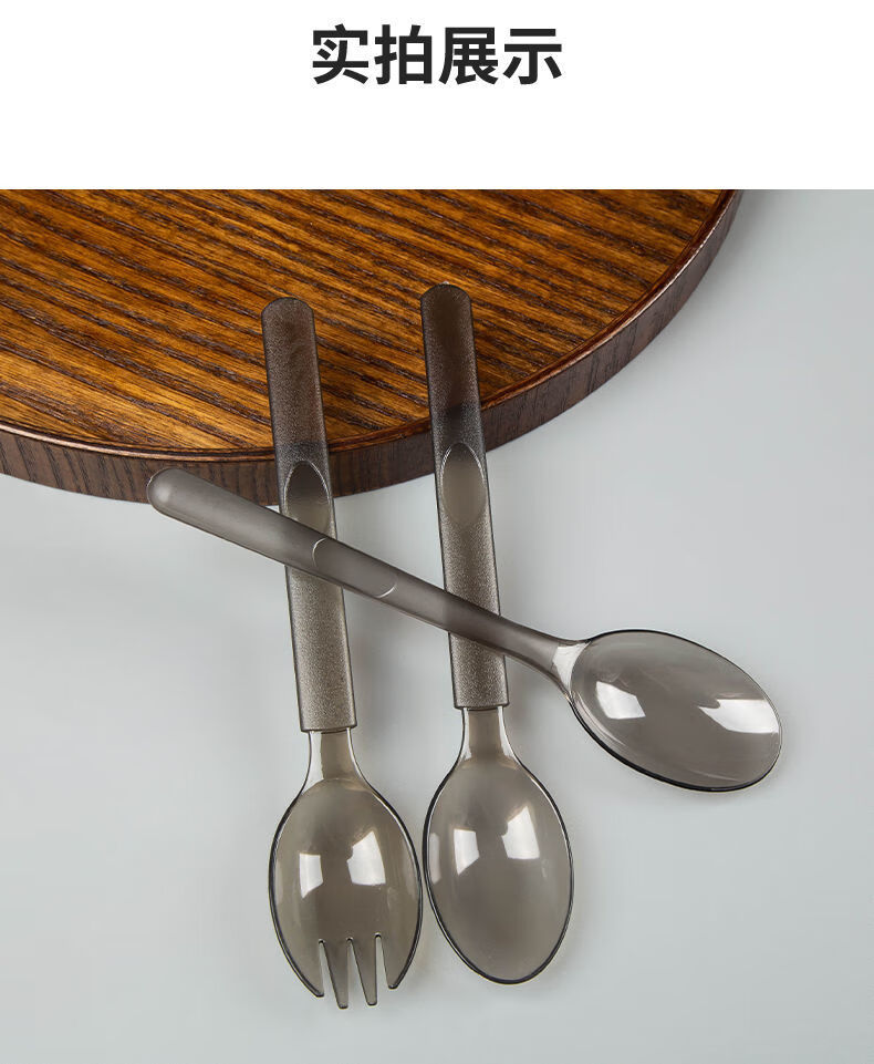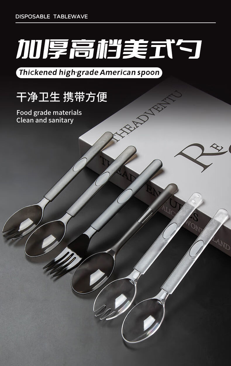 Vinoa disposable thickened and hardened plastic takeaway spoons individually packaged fruit salad light food bibimbap watermelon spoon wholesale European spoon black individually packaged 50 pieces