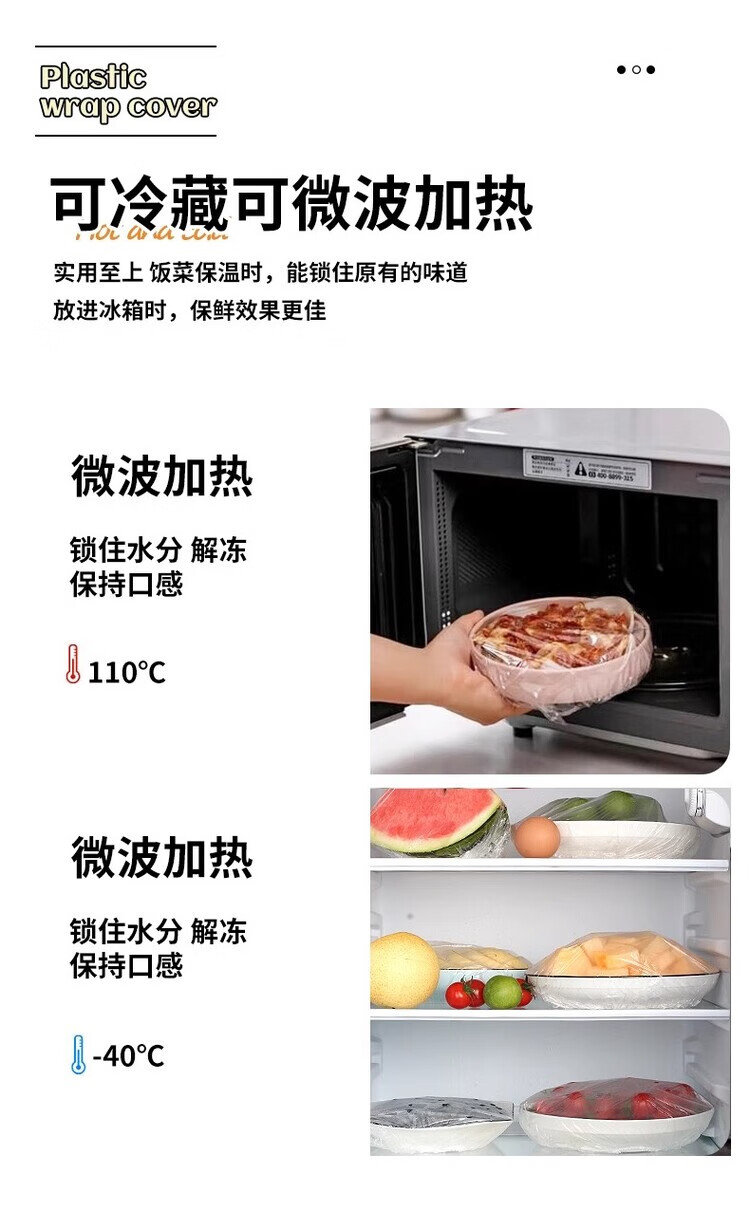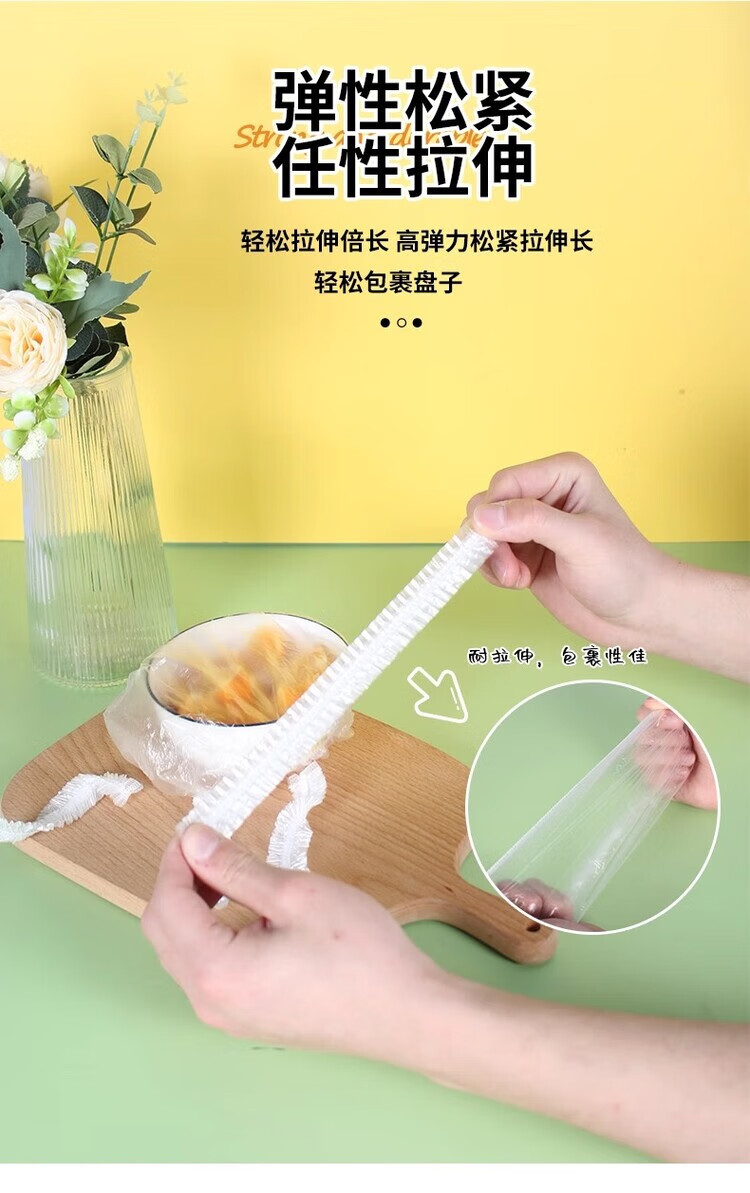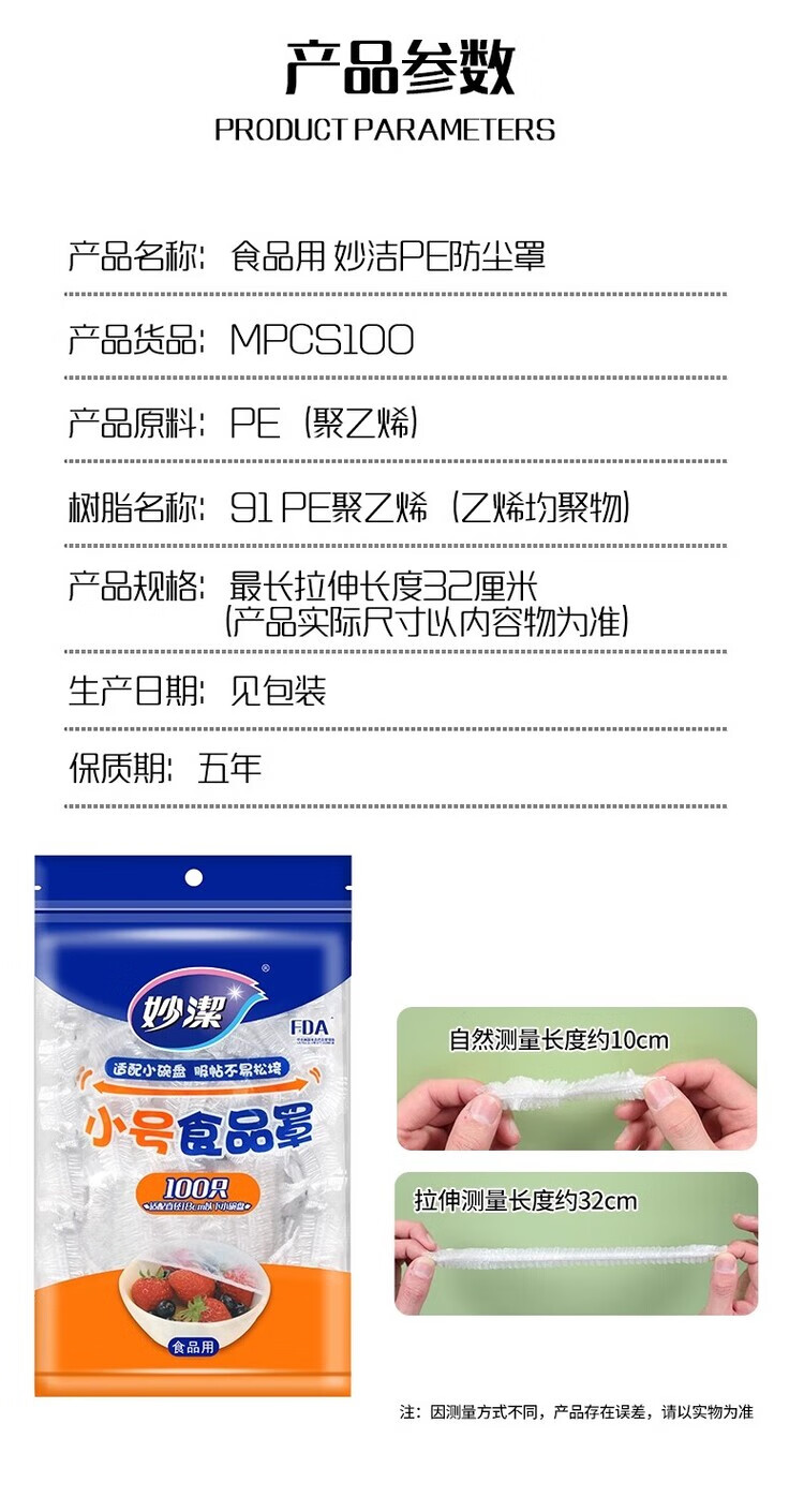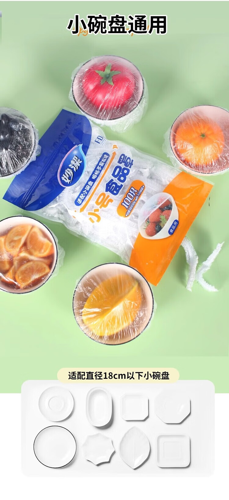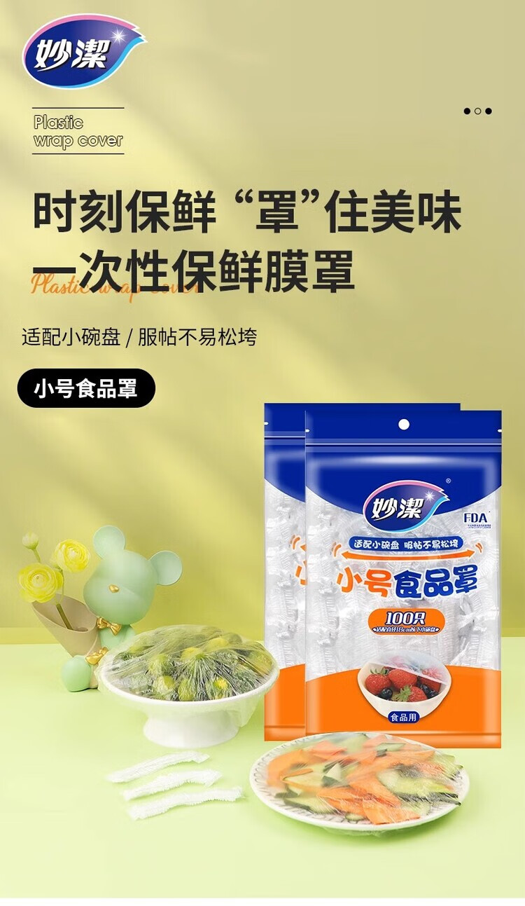MIAOJIE disposable cling film cover food-grade household refrigerator with elastic mouth shower cap type dish and dish PE dust cover 1 pack of 100 pieces for dishes under 18 cm