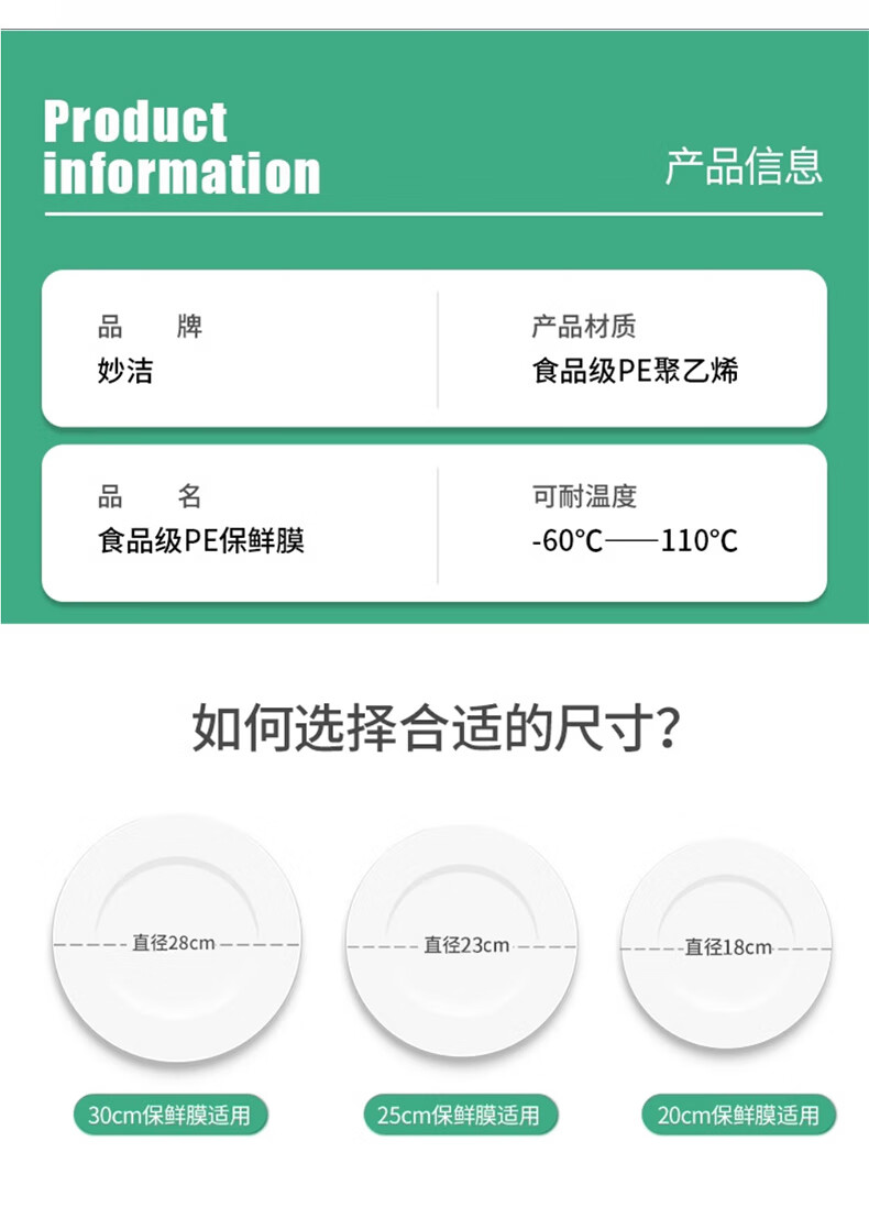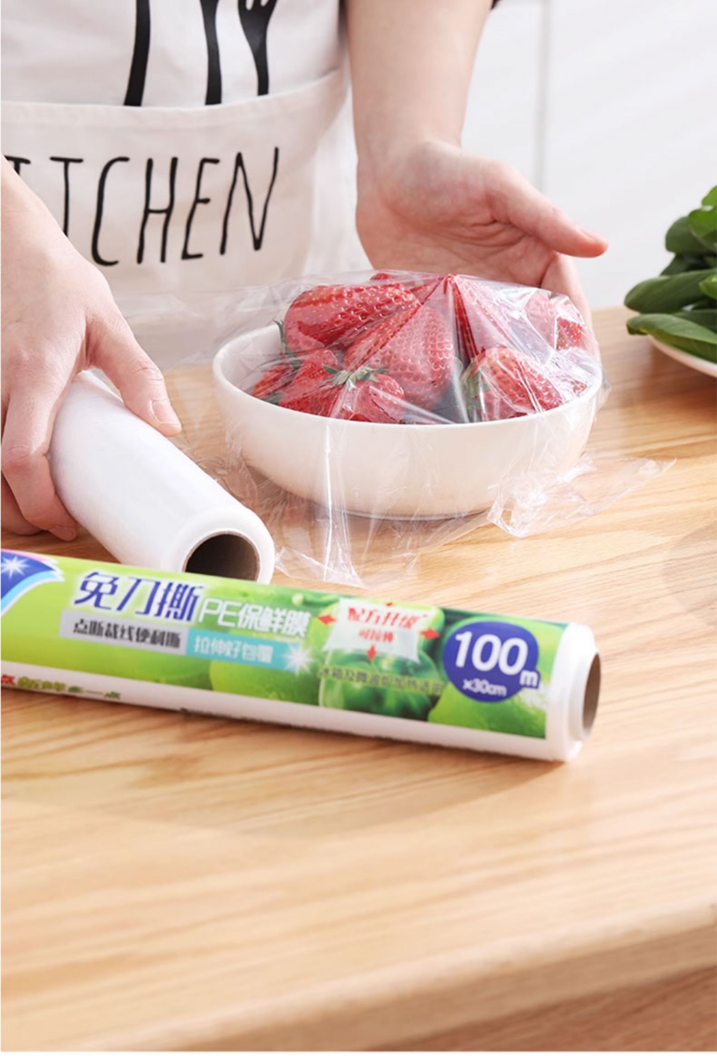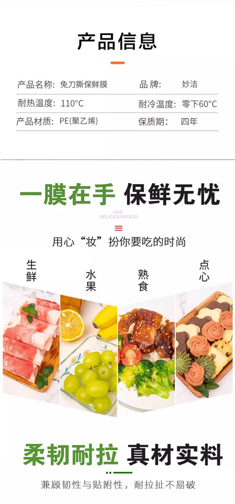 MIAOJIE cling film household food grade disposable kitchen high temperature resistant microwave oven knife-free tear-off PE point-break cling film 50 meters large 30cm wide * 1 roll point-break type