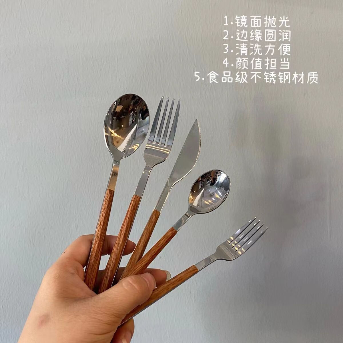 Ins style tableware chopsticks spoon fork stainless steel household high-value tableware steak knife fork spoon dessert small spoon family set 1 (4 tablespoons + 4 large forks)