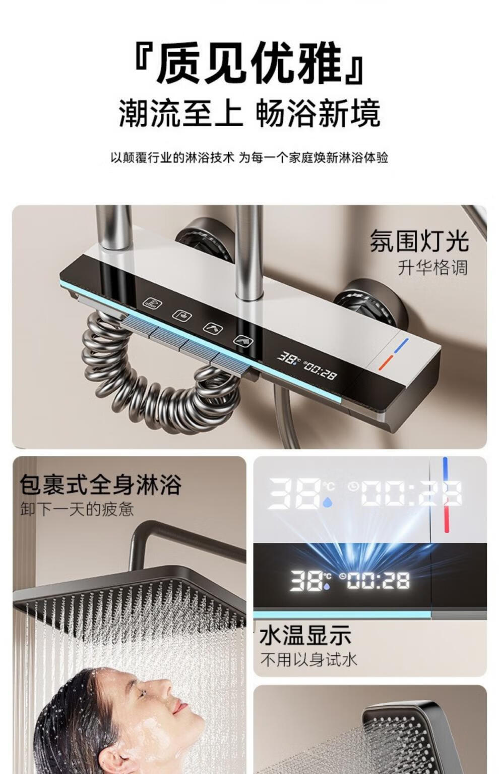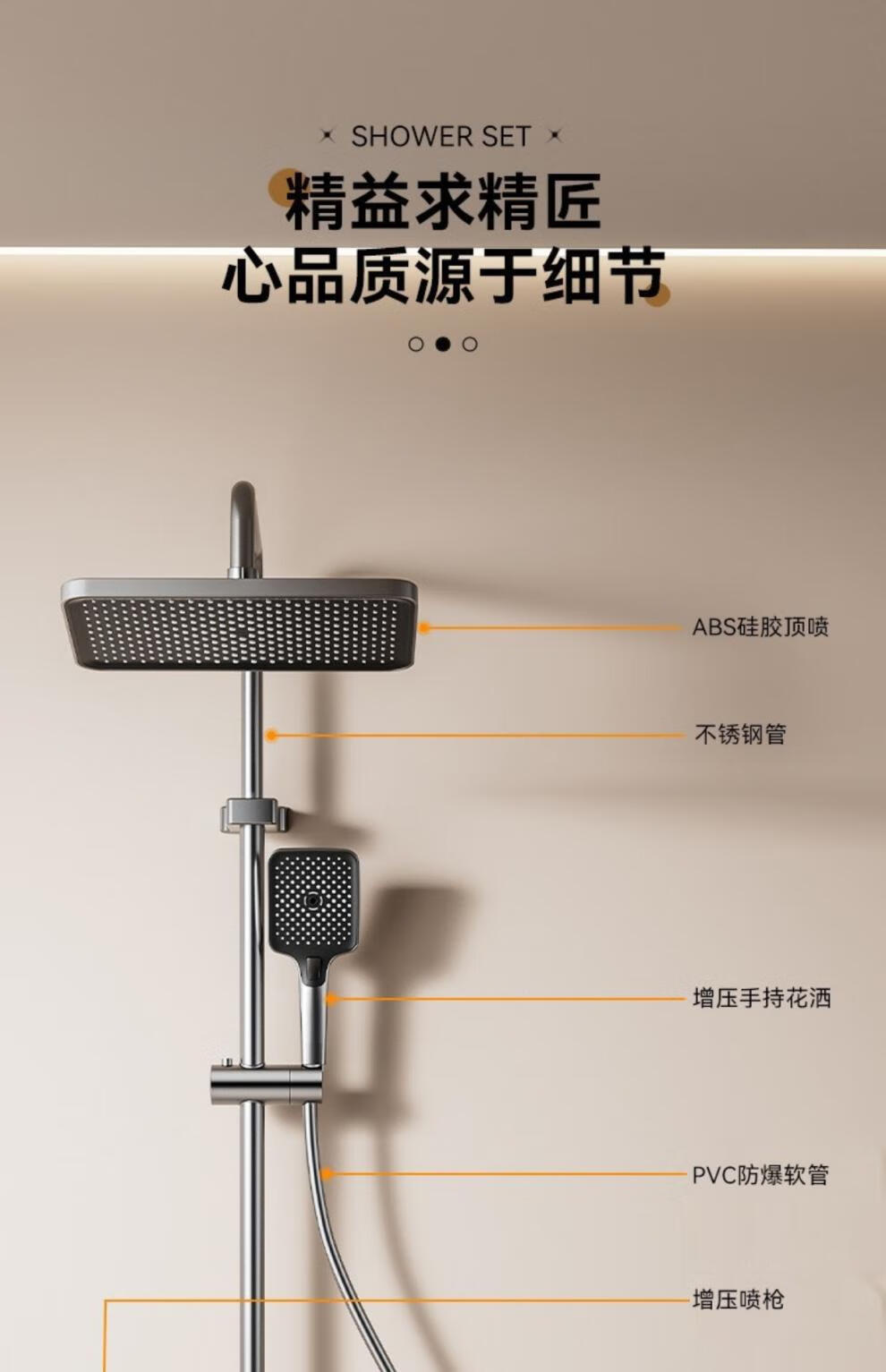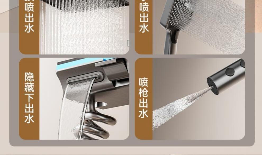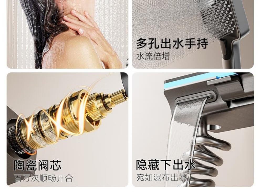 JOMOO piano key digital display shower head set gun gray all-copper shower head household constant temperature booster nozzle (water gray plating) four-speed piano key large panel model (1