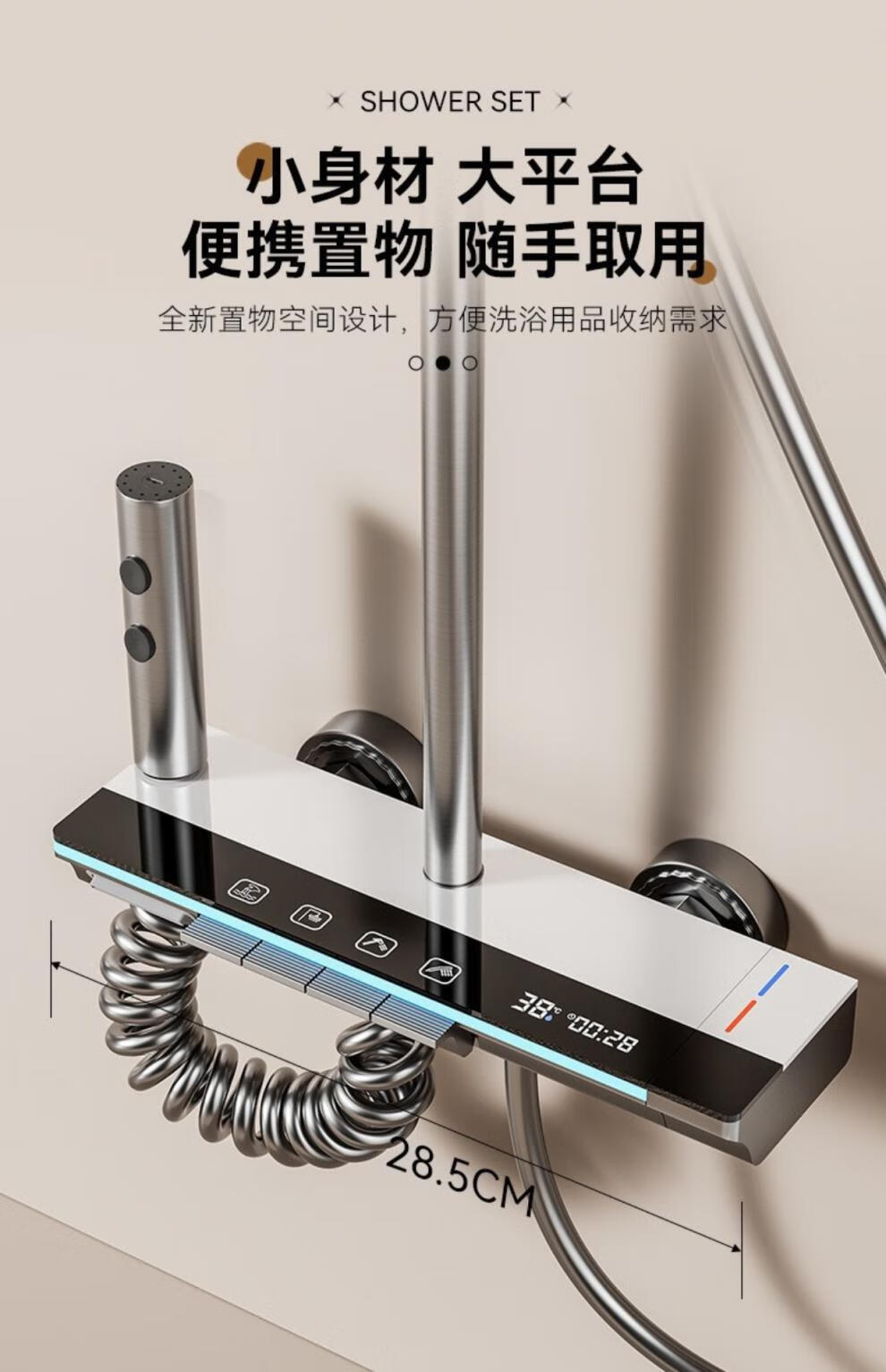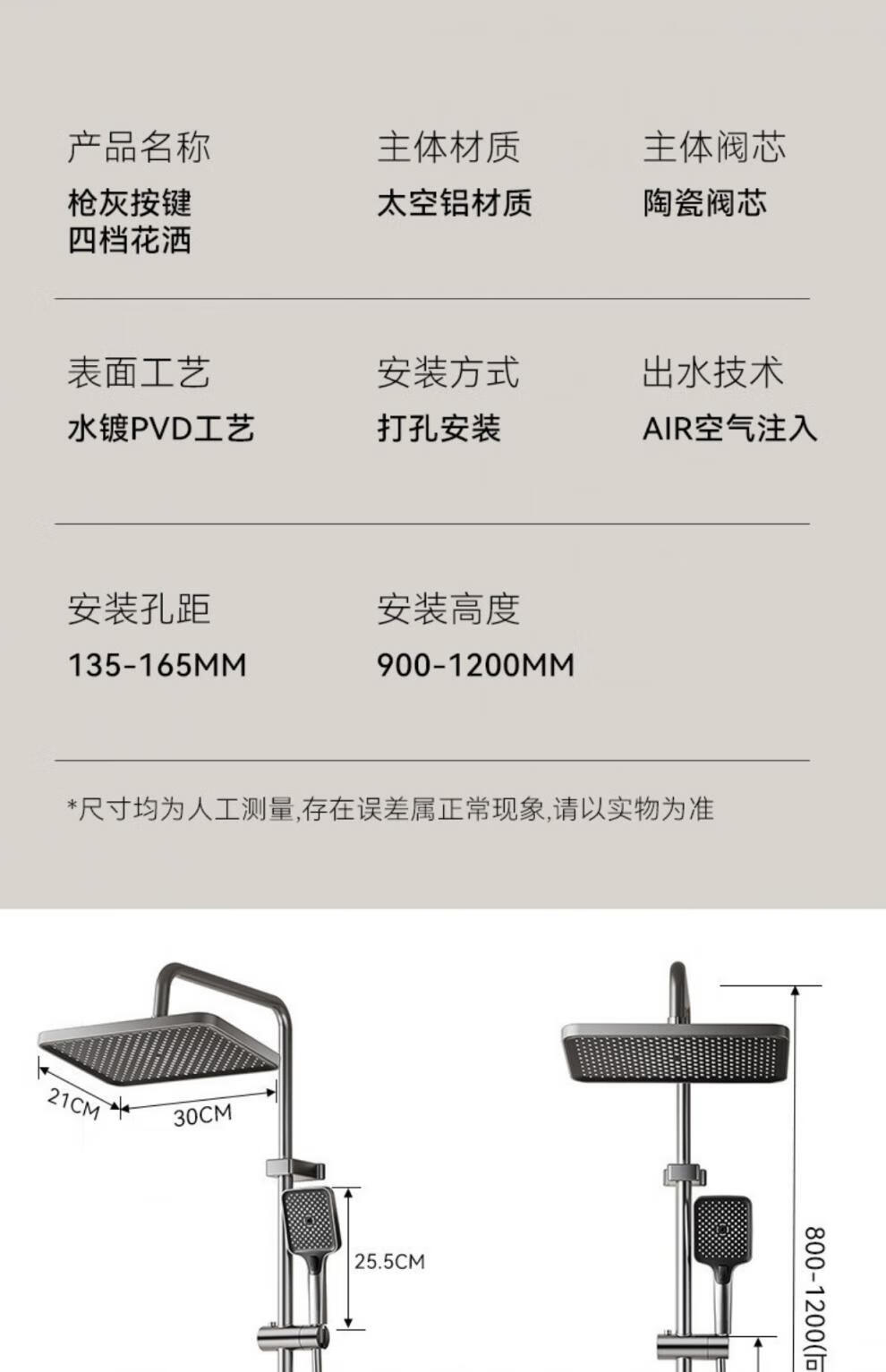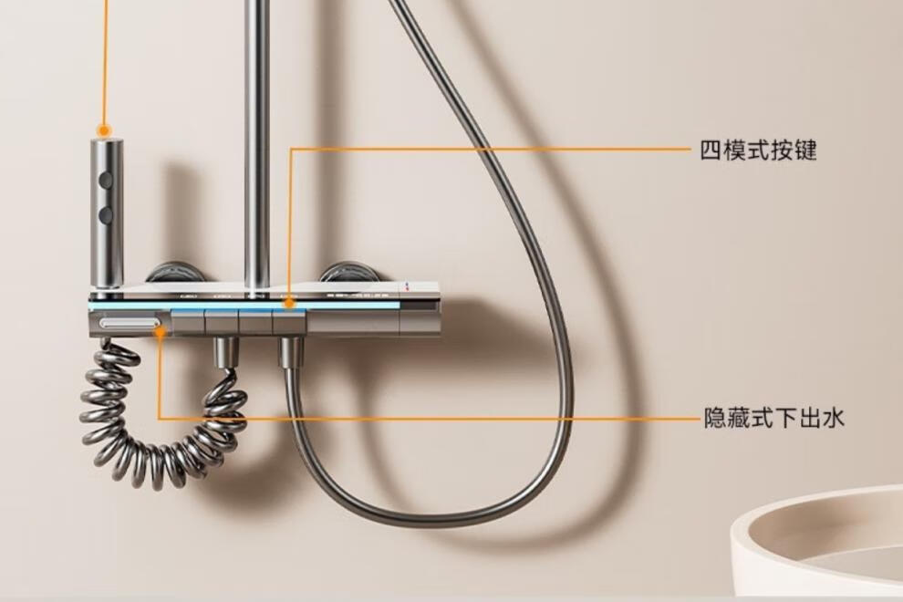 JOMOO piano key digital display shower head set gun gray all-copper shower head household constant temperature booster nozzle (water gray plating) four-speed piano key large panel model (1