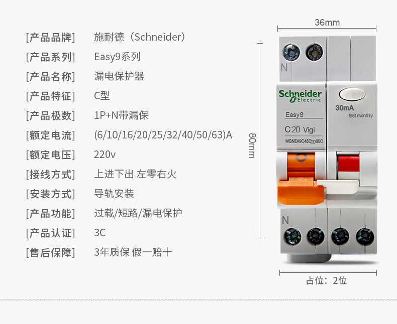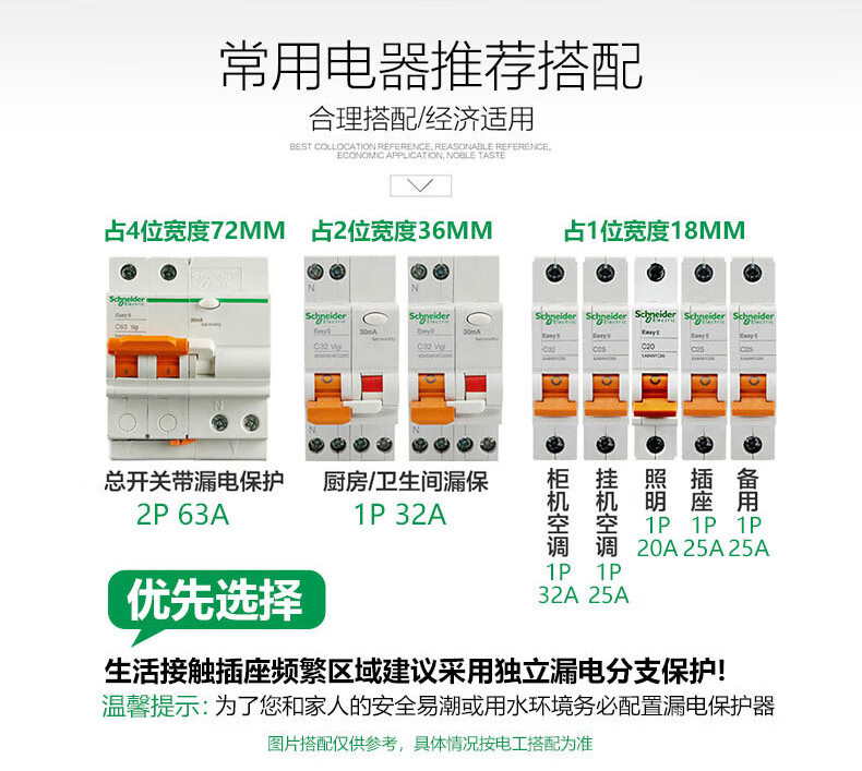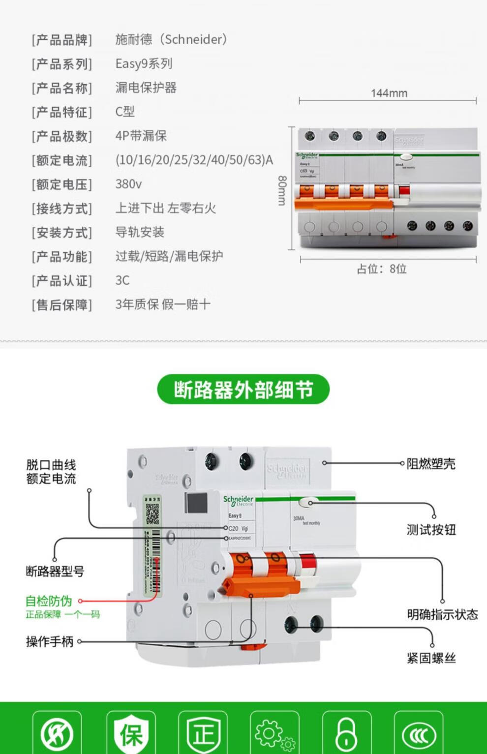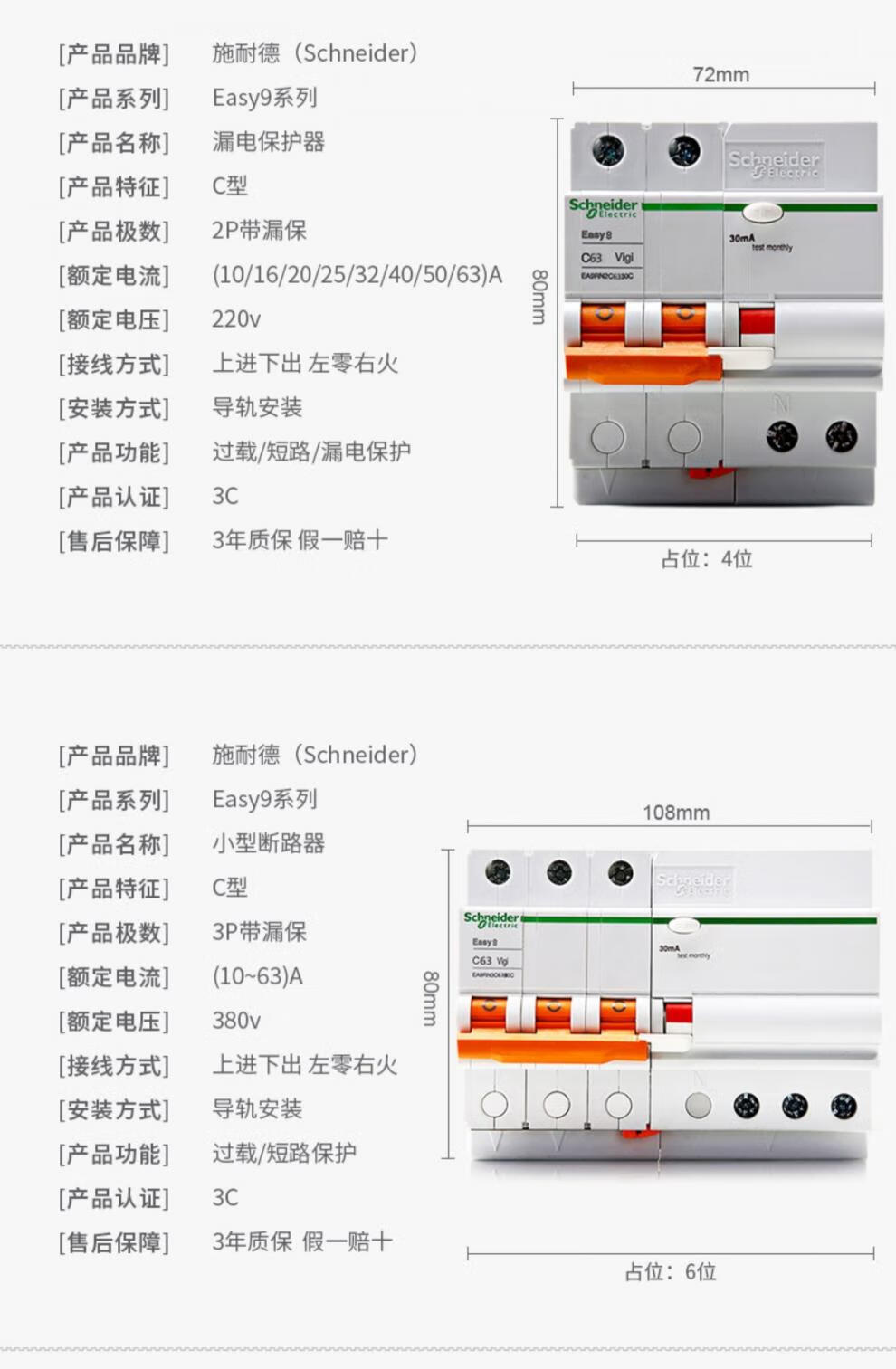 Schneider E9 series leakage circuit breaker leakage air switch E9 series air leakage circuit breaker Type A 63A 2P