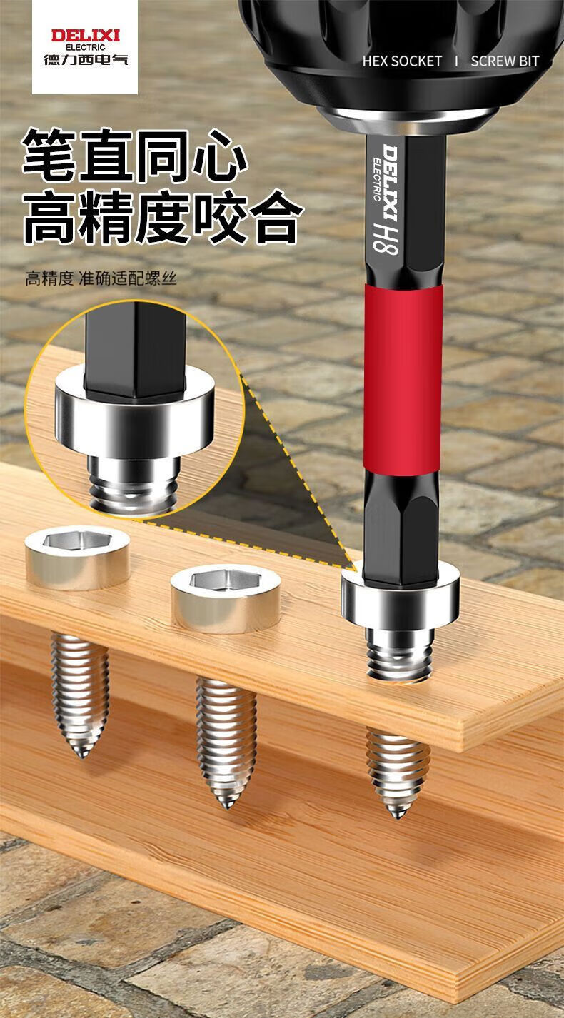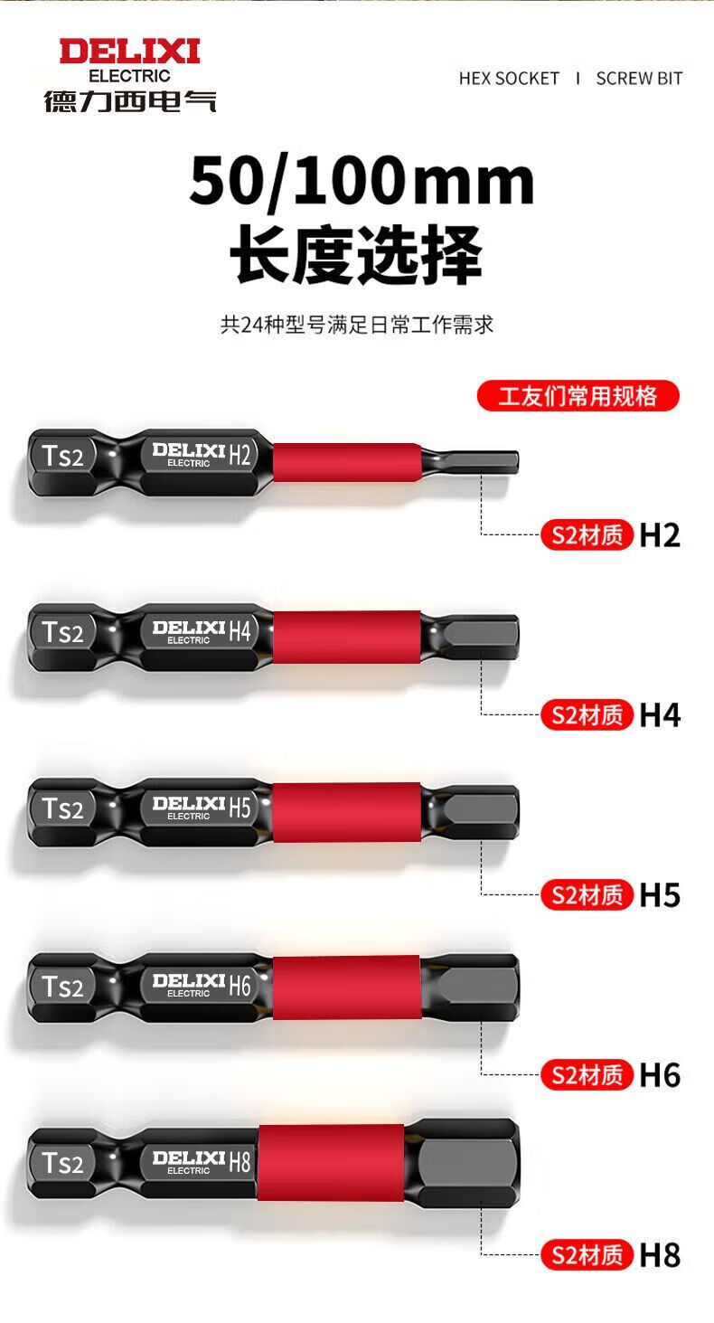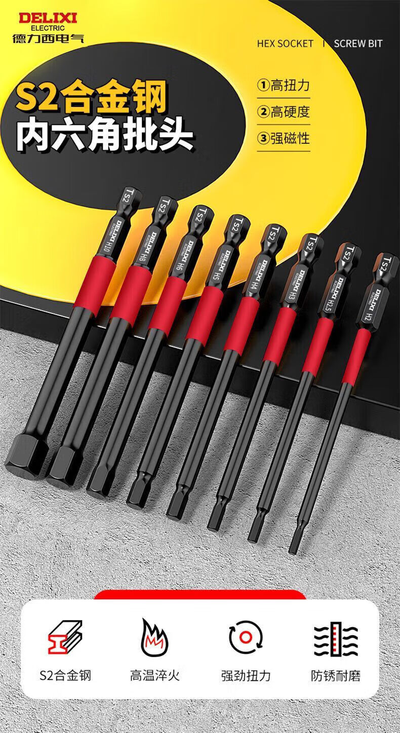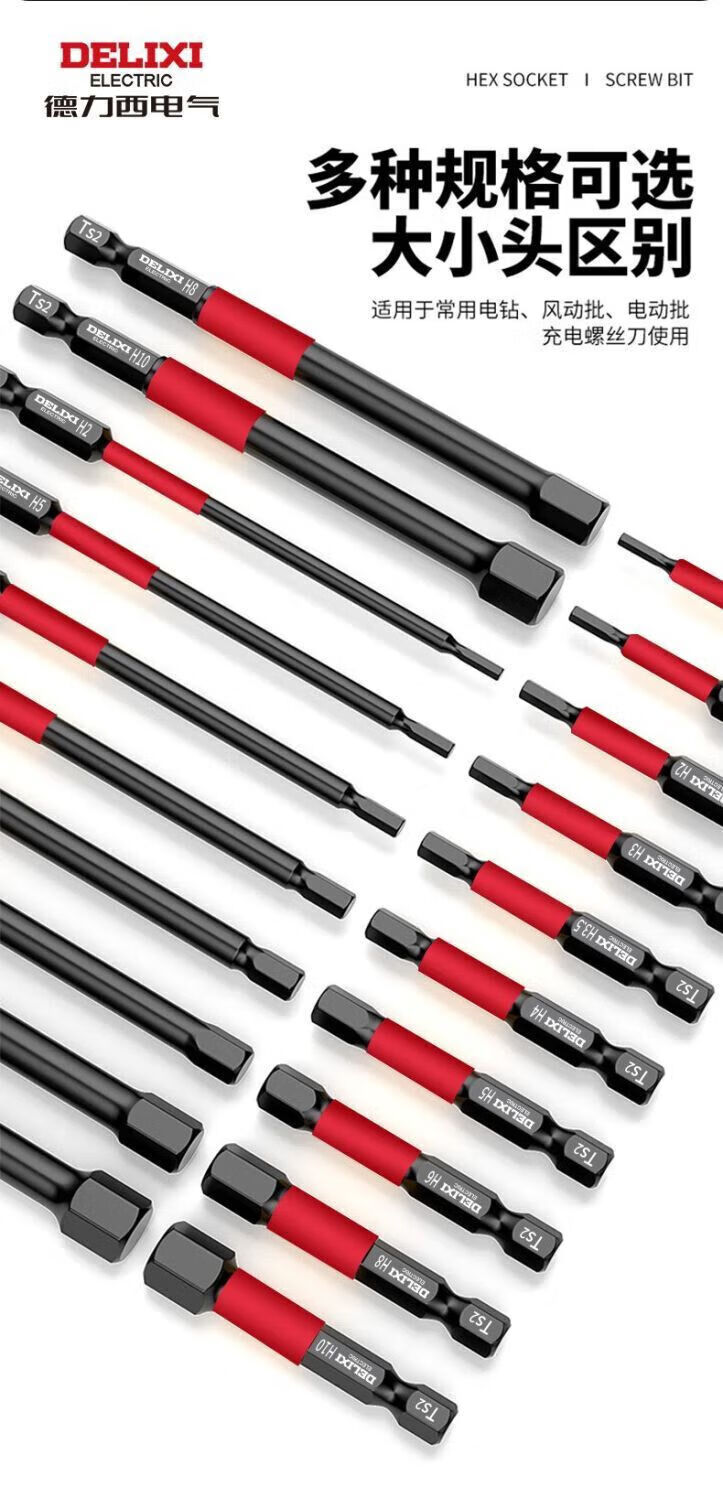 Delixi Electric inner hexagonal bit lengthened S2 pneumatic electric screwdriver set Beatle special wind bit super hard industrial wear-resistant 100MM 7-piece set