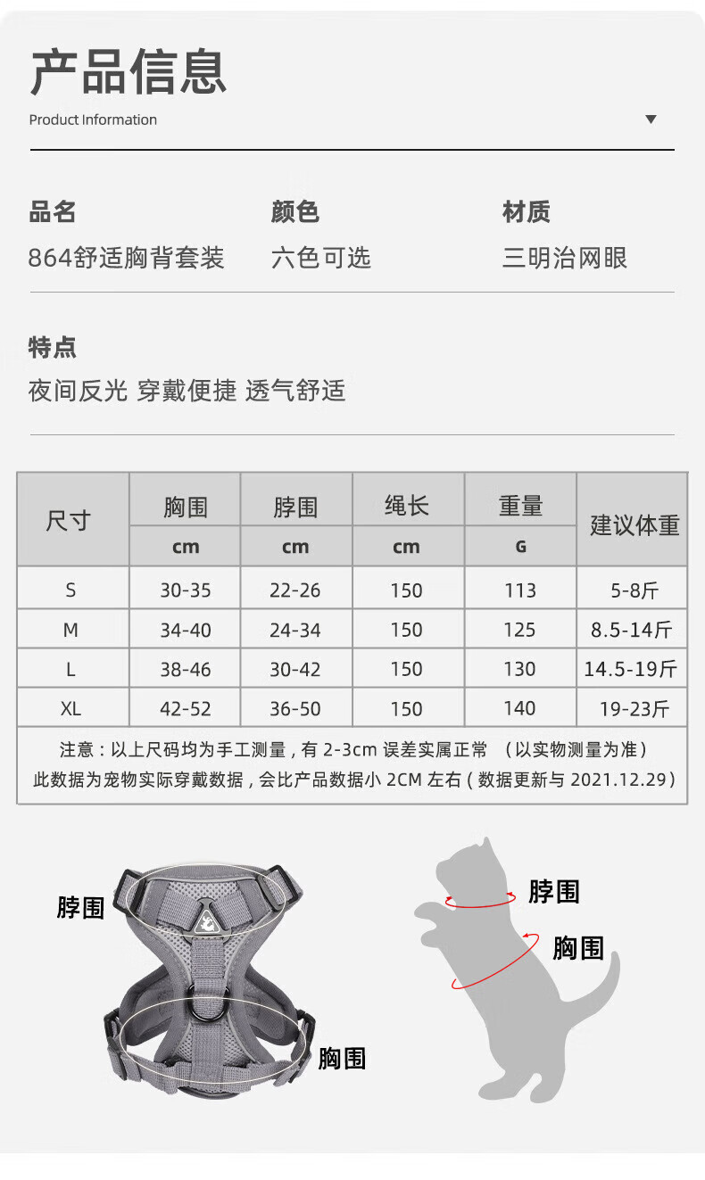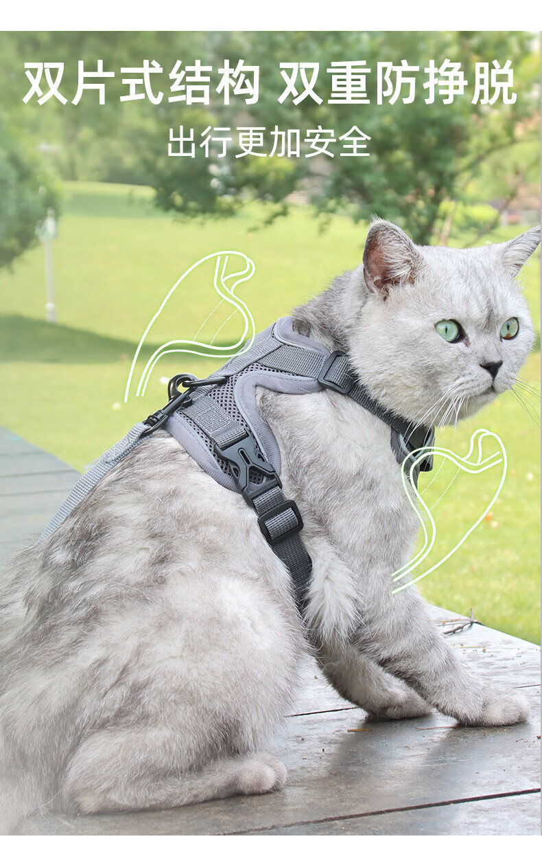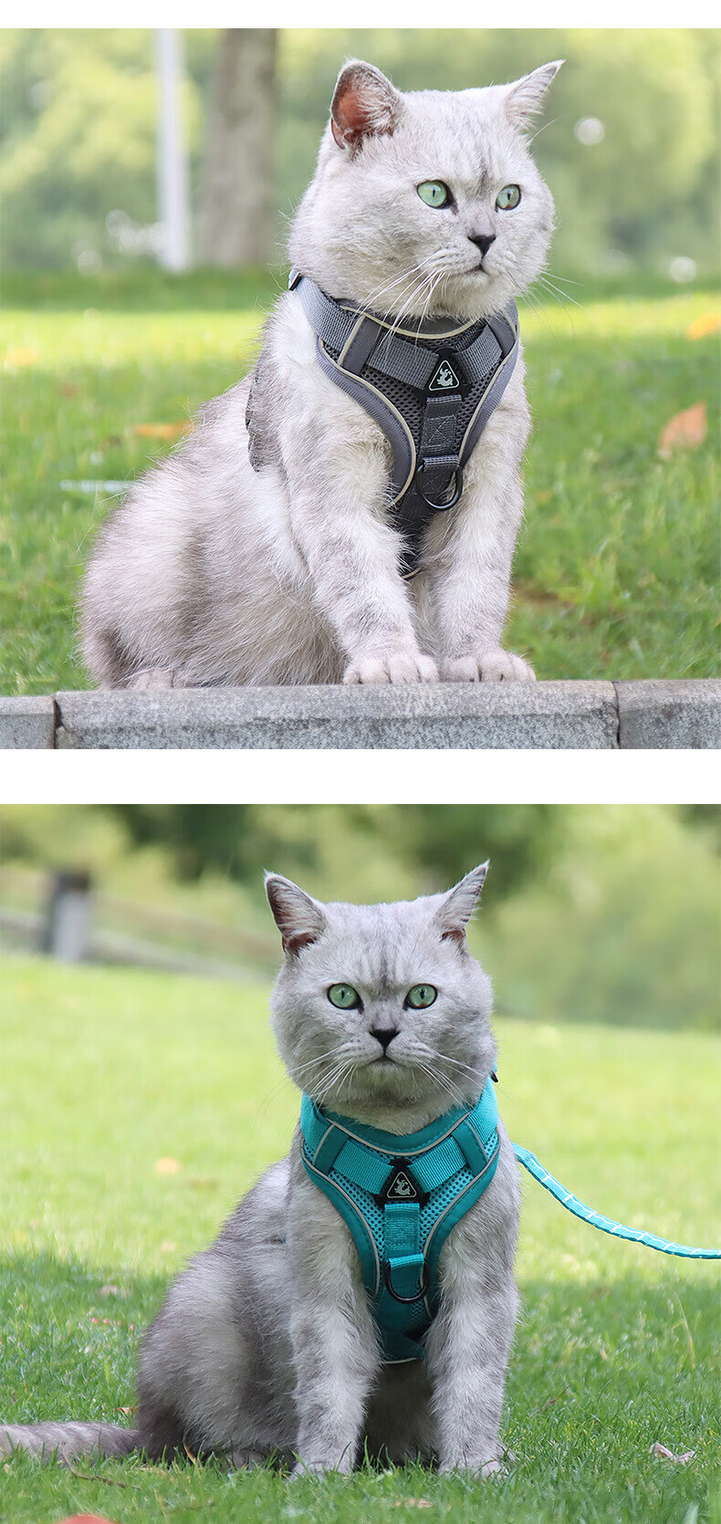 Tianmiaomiao Cat Traction Rope Vest Type Harness Reflective and Breathable When Walking Cats Rope British Short Ragdoll Pet Traction Rope Gray Pet Harness + 1.5 Meter Traction Rope M chest 34-40cm (recommended around 8.5-14 catties) to prevent breaking away and getting lost