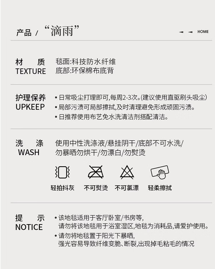 Diatom silk living room carpet, cream style sofa coffee table blanket, high-end waterproof, anti-fouling, washable and wipeable bedroom floor mat, Drop Rain 200cm*300cm