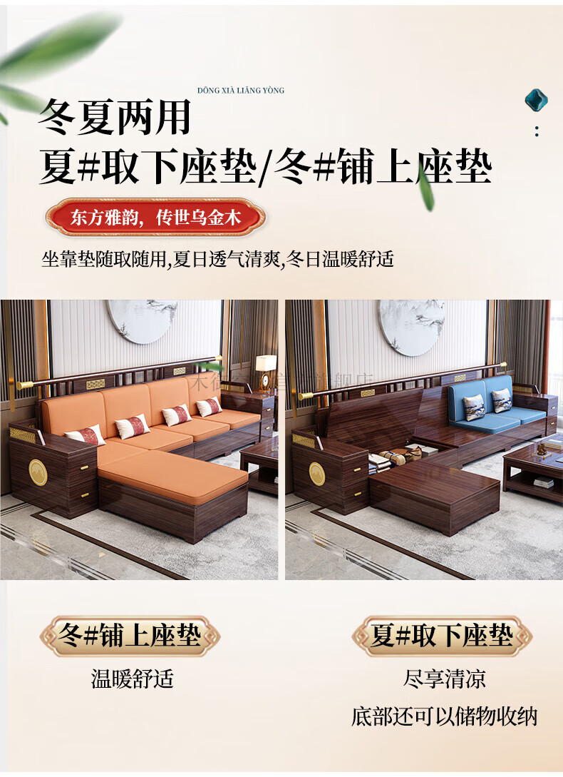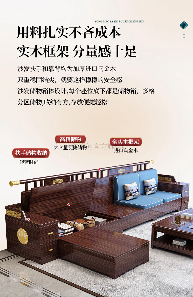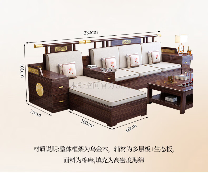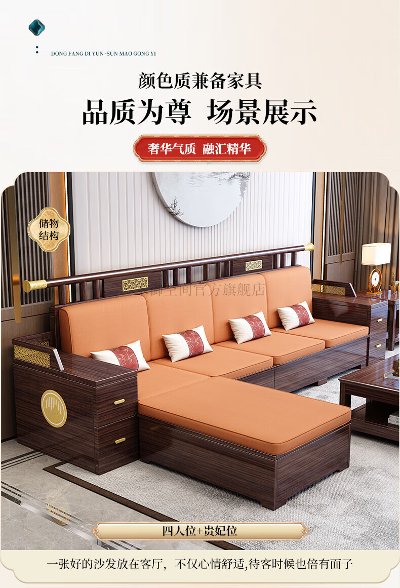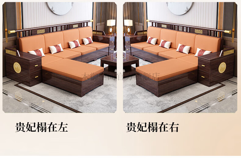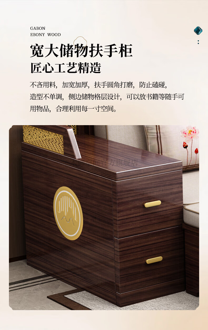 Muyu Space New Chinese Style Ebony Wood Solid Wood Sofa Living Room 2025 New Small Apartment Storage Style Imperial Concubine Wooden Furniture Complete Set 1+2+3+ Coffee Table+ Square Table*2+ TV Cabinet