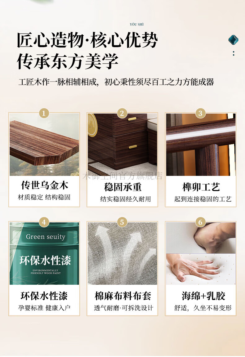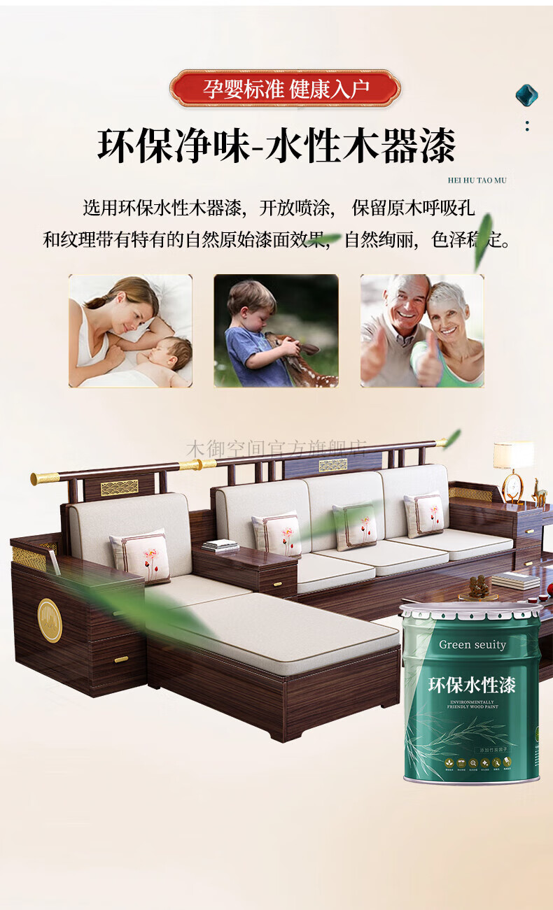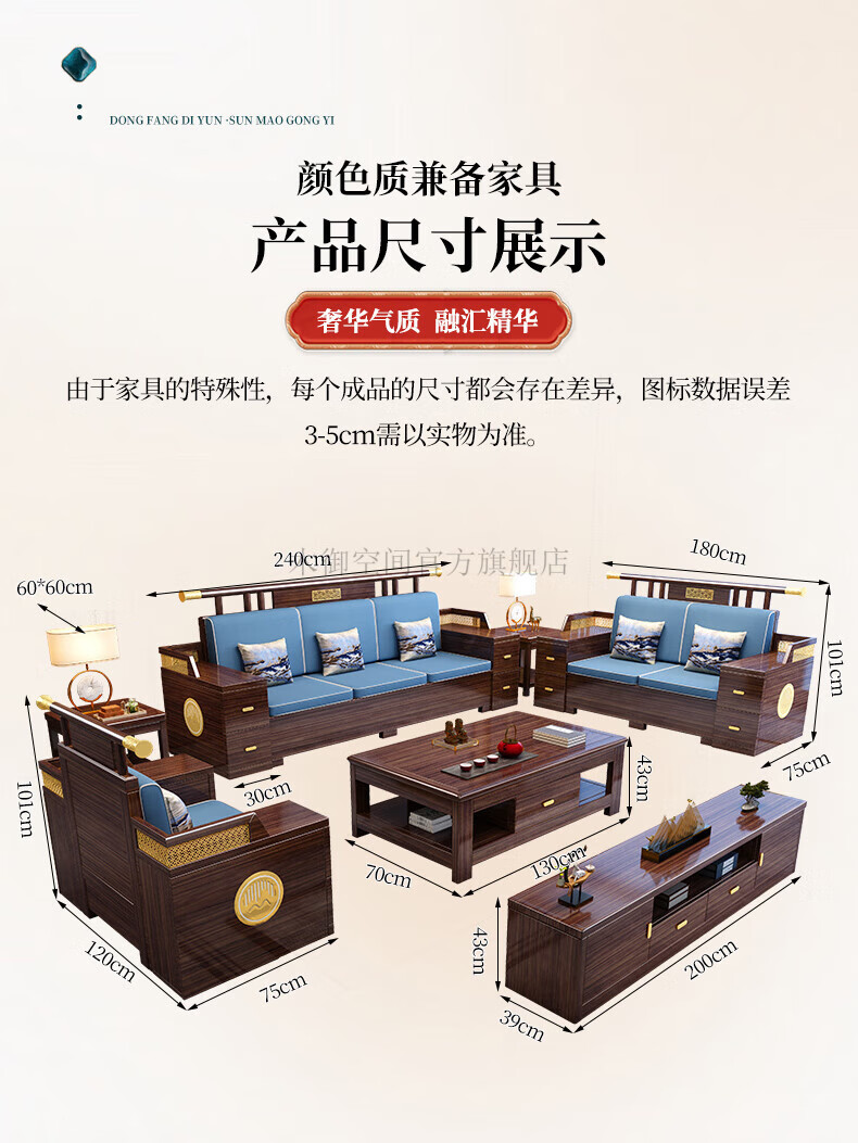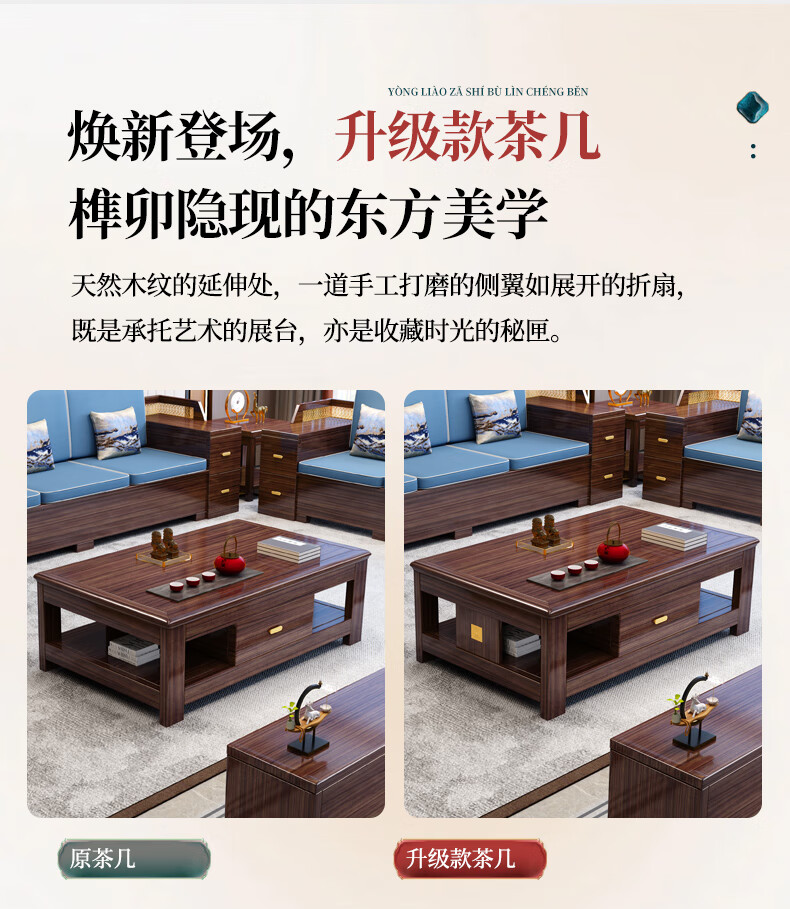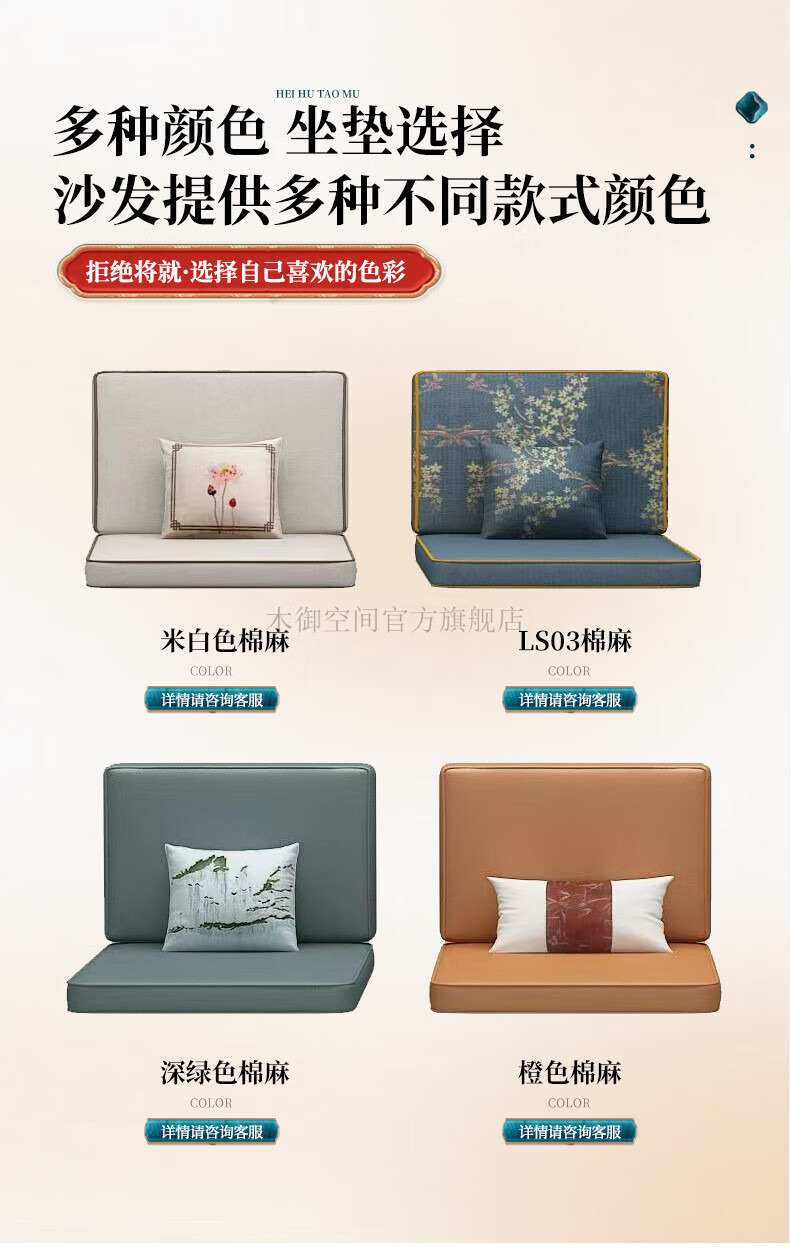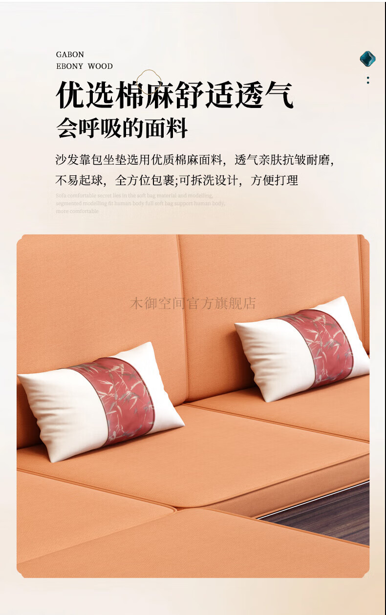Muyu Space New Chinese Style Ebony Wood Solid Wood Sofa Living Room 2025 New Small Apartment Storage Style Imperial Concubine Wooden Furniture Complete Set 1+2+3+ Coffee Table+ Square Table*2+ TV Cabinet
