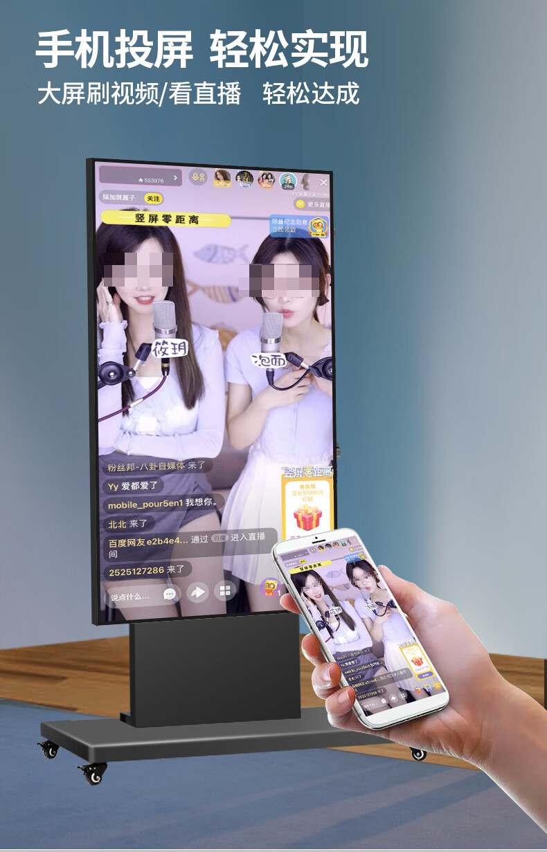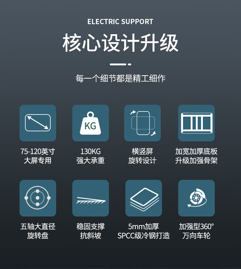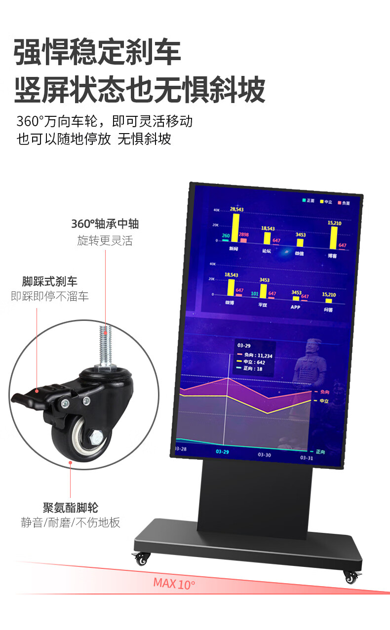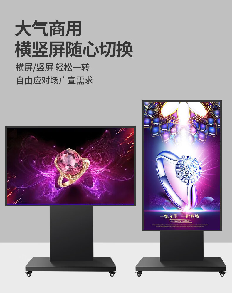 Yunjia 75/85/98/100-inch TV floor-standing bracket horizontal and vertical screen rotating large-screen mobile cart all-in-one smart screen universal rack teaching conference training hotel exhibition hall 70-120-inch horizontal and vertical screen rotating cart - load bearing 130KG