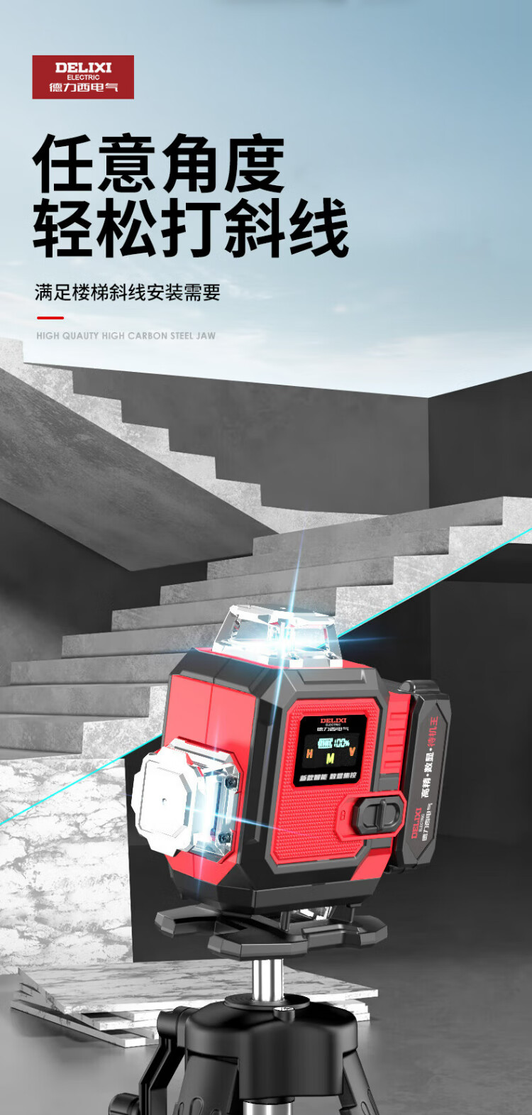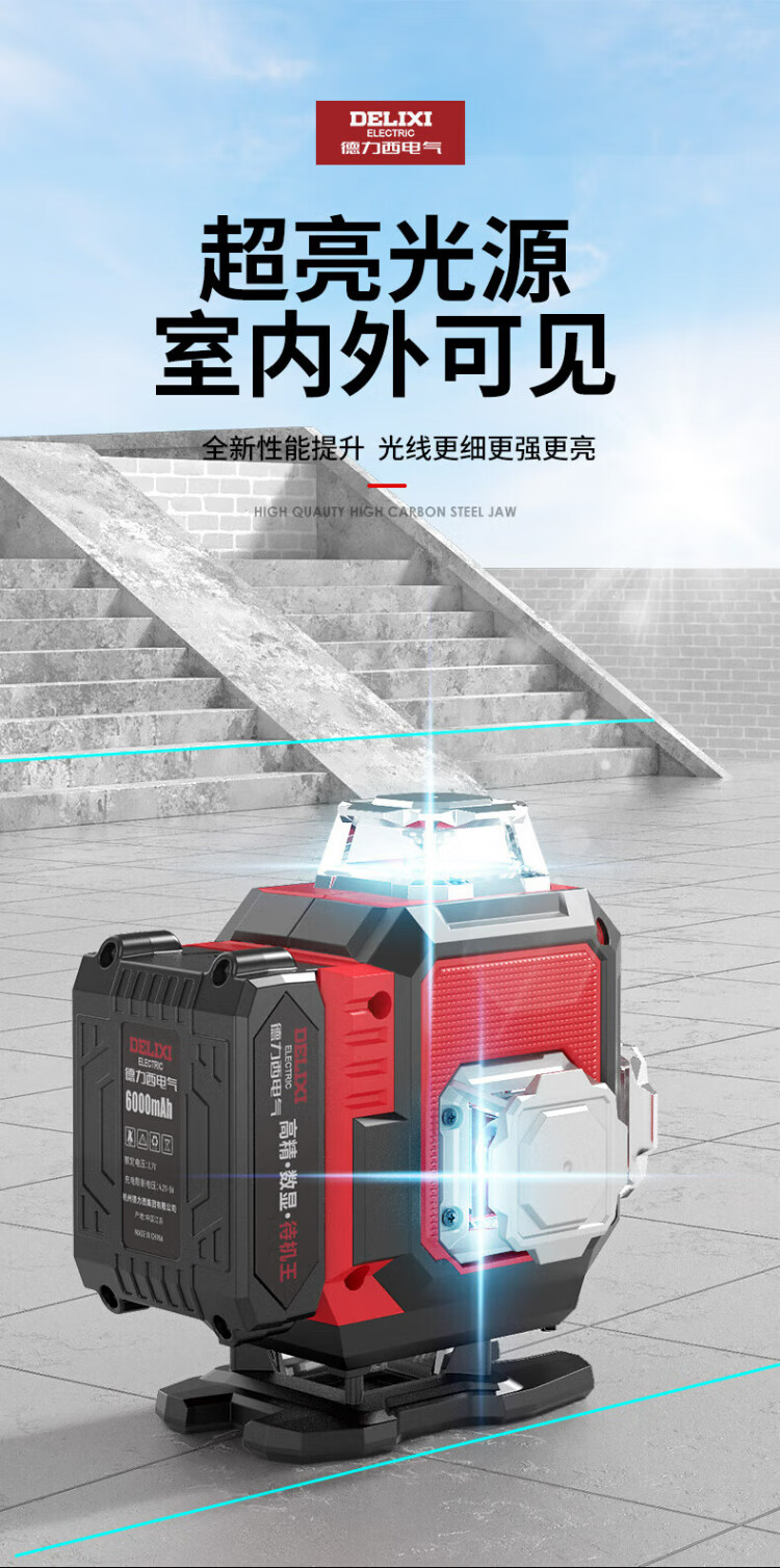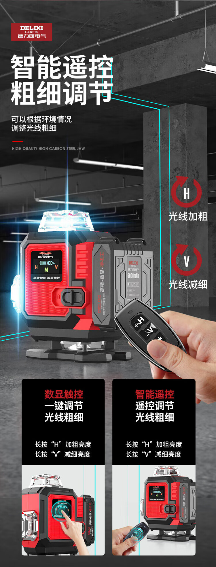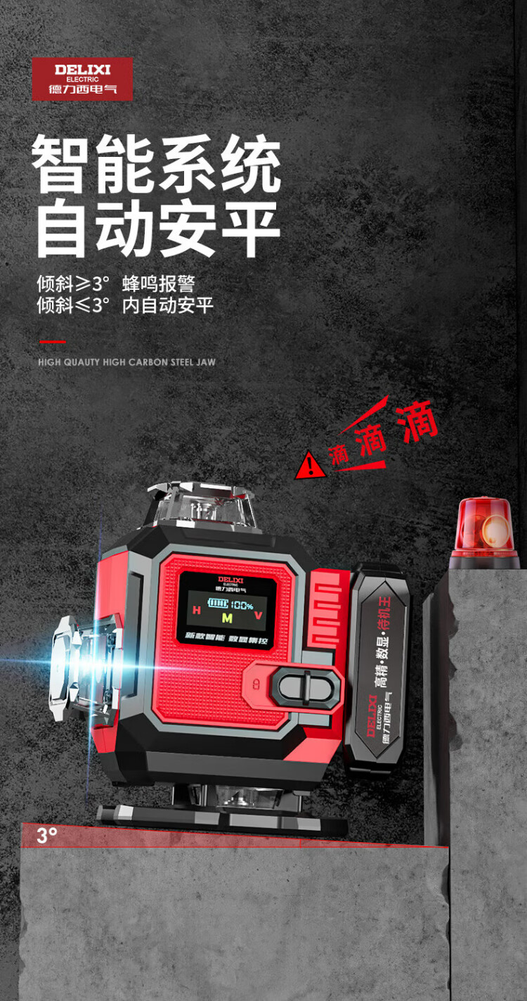 Delixi Electric 12-wire high-precision strong light thin-wire infrared level meter automatic leveling water meter outdoor green light laser wall-mounted/digital display green light 12-wire giant dual electric