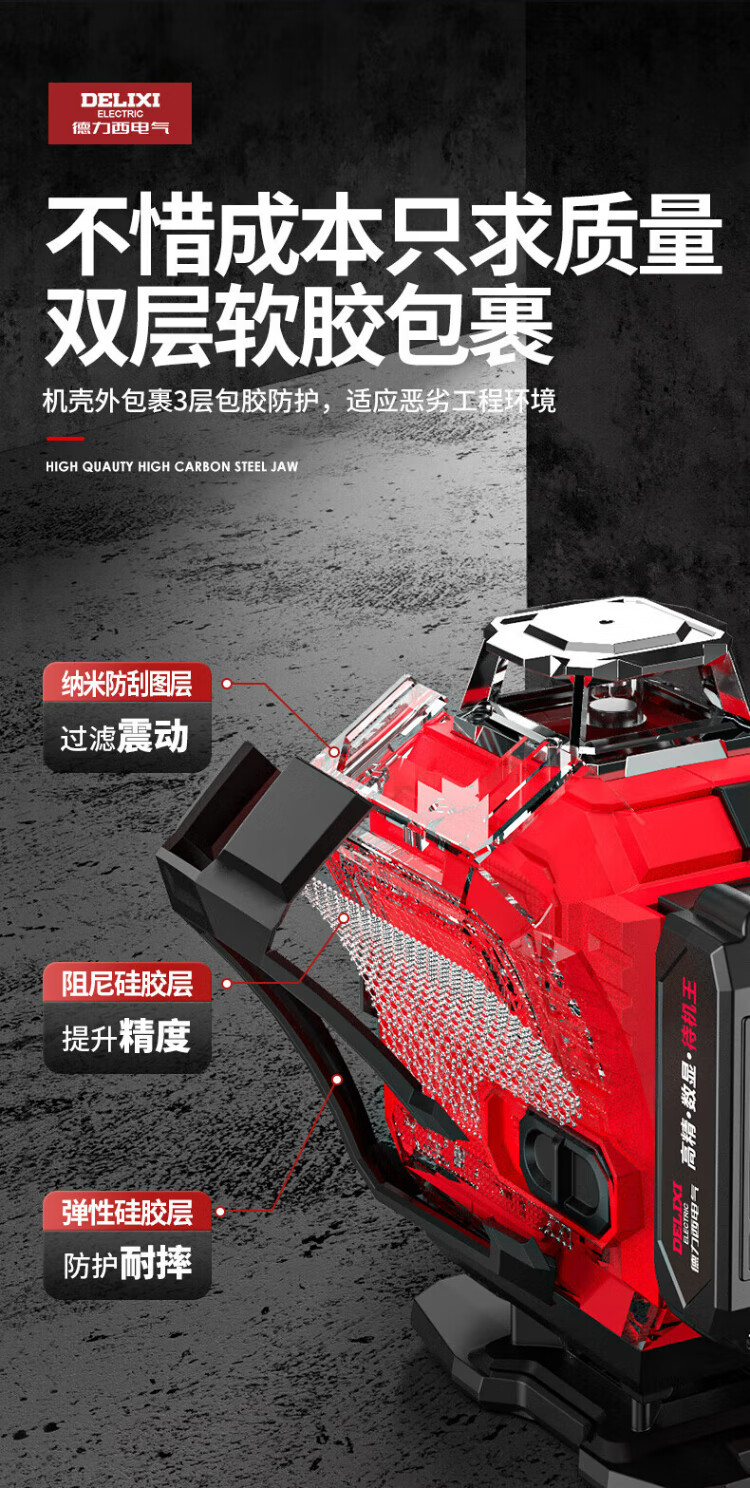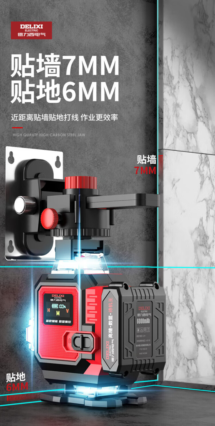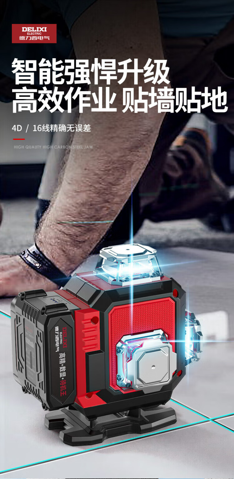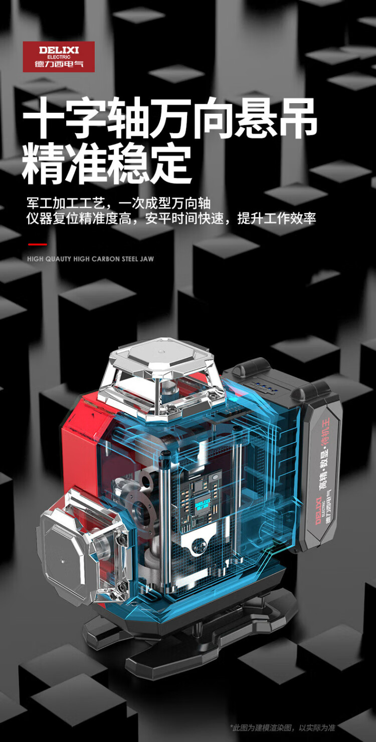 Delixi Electric 12-wire high-precision strong light thin-wire infrared level meter automatic leveling water meter outdoor green light laser wall-mounted/digital display green light 12-wire giant dual electric
