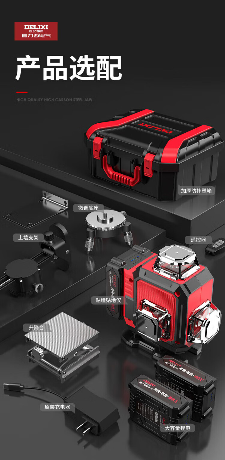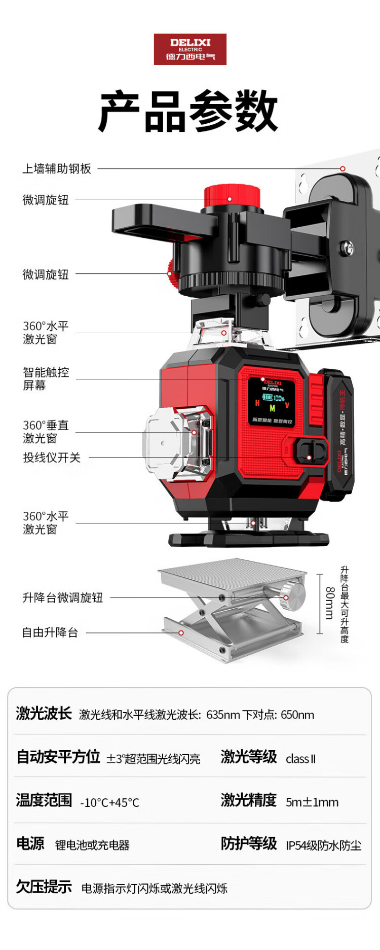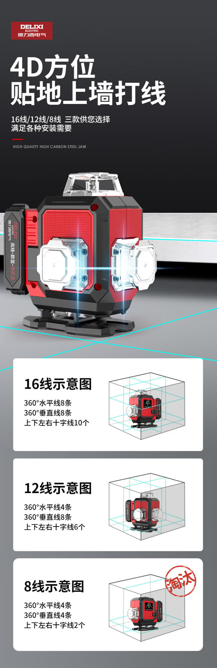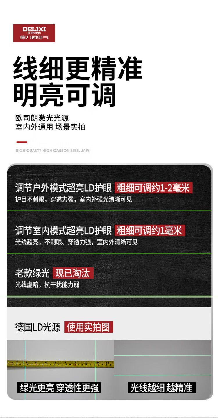Delixi Electric 12-wire high-precision strong light thin-wire infrared level meter automatic leveling water meter outdoor green light laser wall-mounted/digital display green light 12-wire giant dual electric