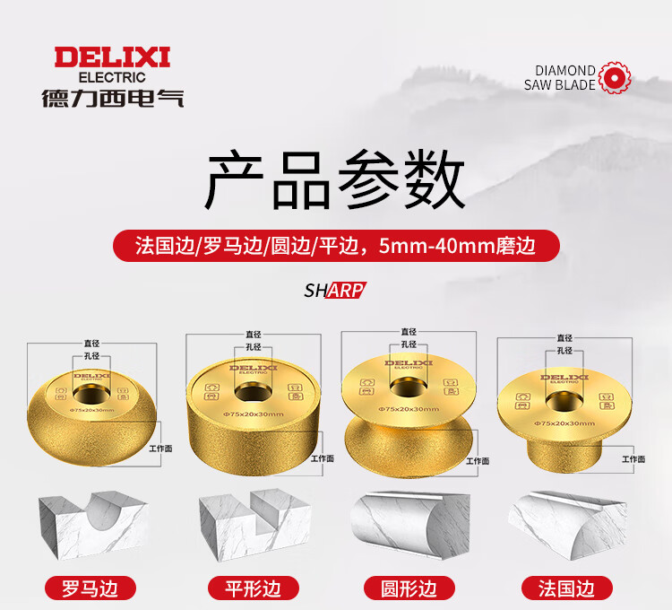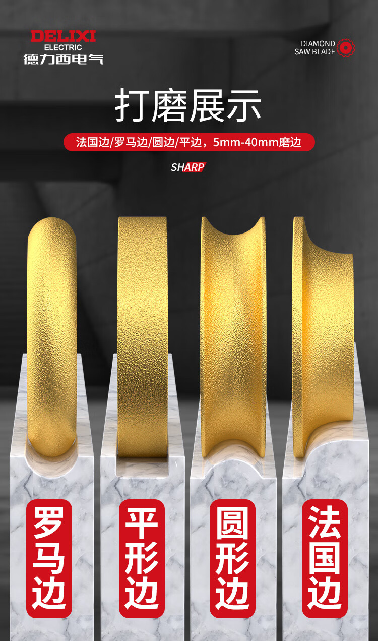 Delixi electric stone edge grinding wheel marble granite tile trimming and chamfering artifact slotting grinding arc angle grinder manual wheel Roman edge grinding wheel thickness 20mm 1 pack
