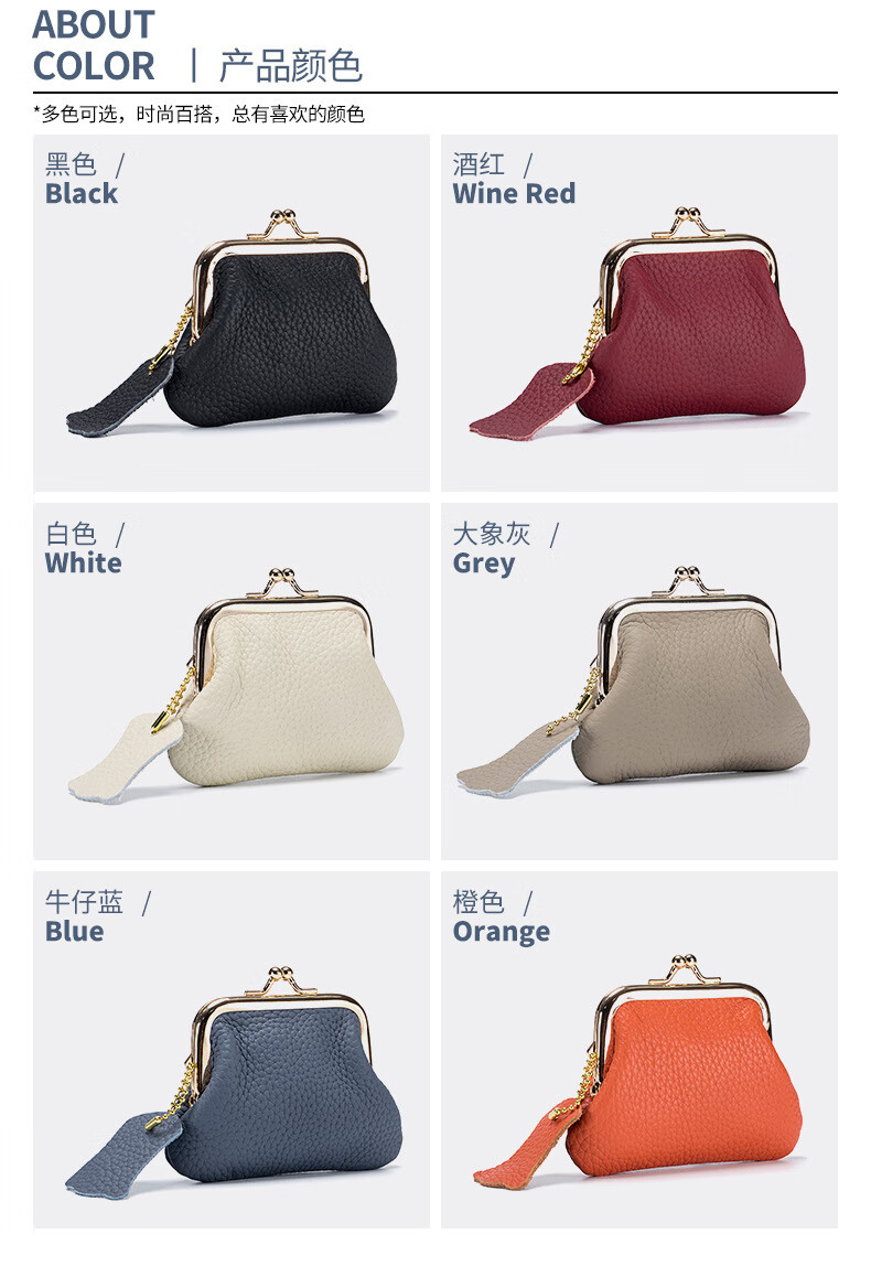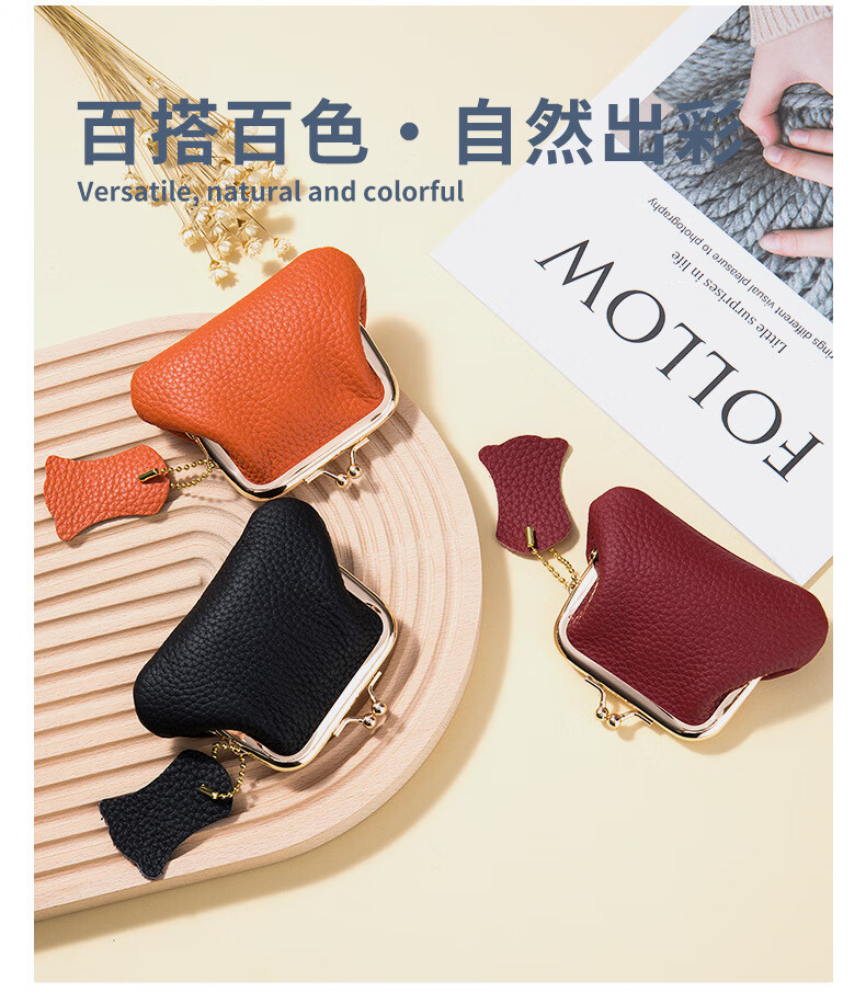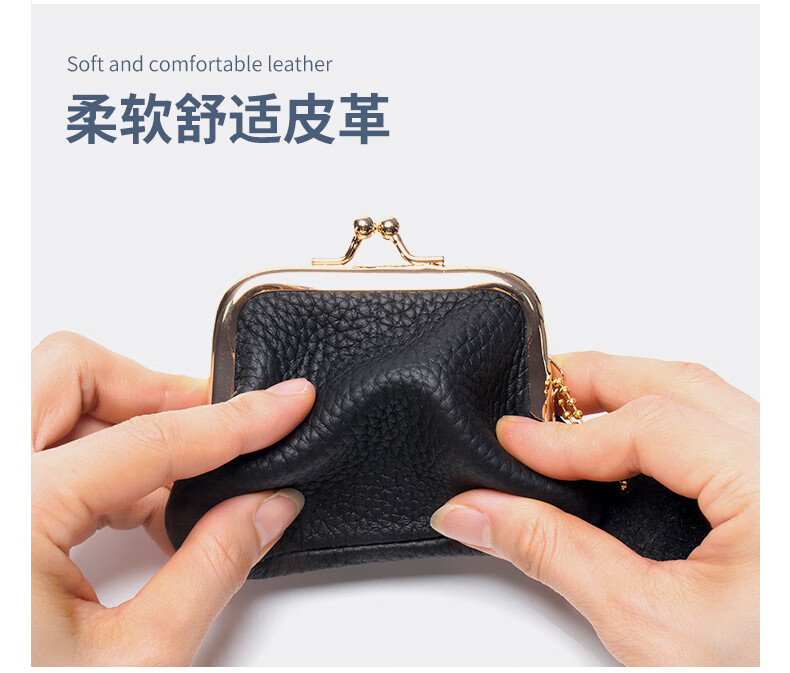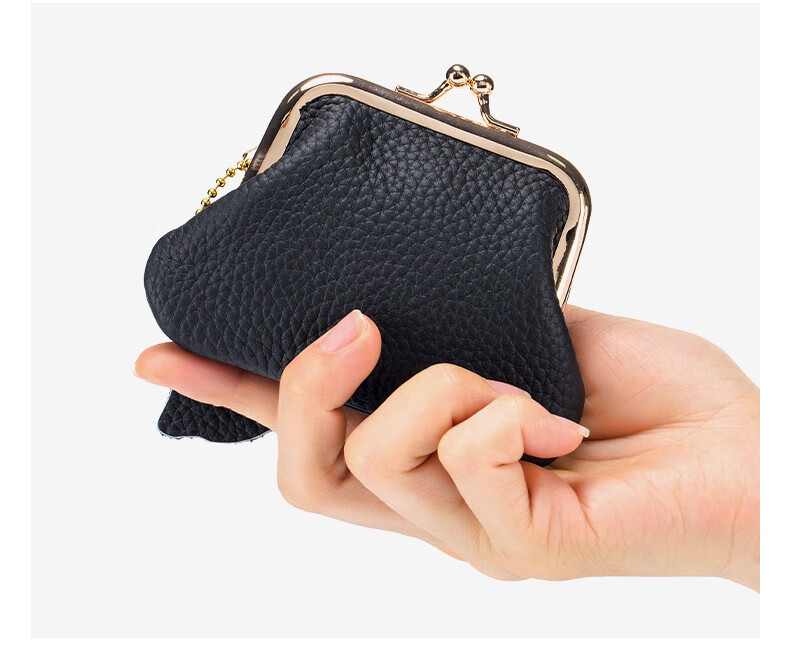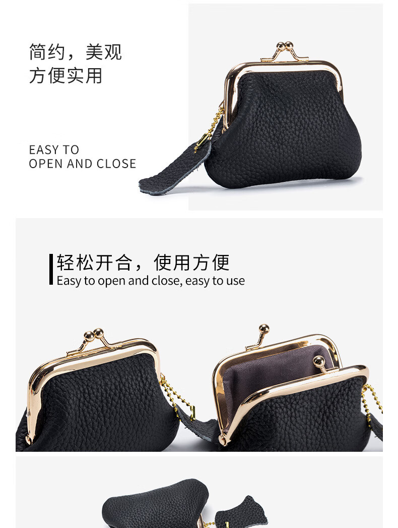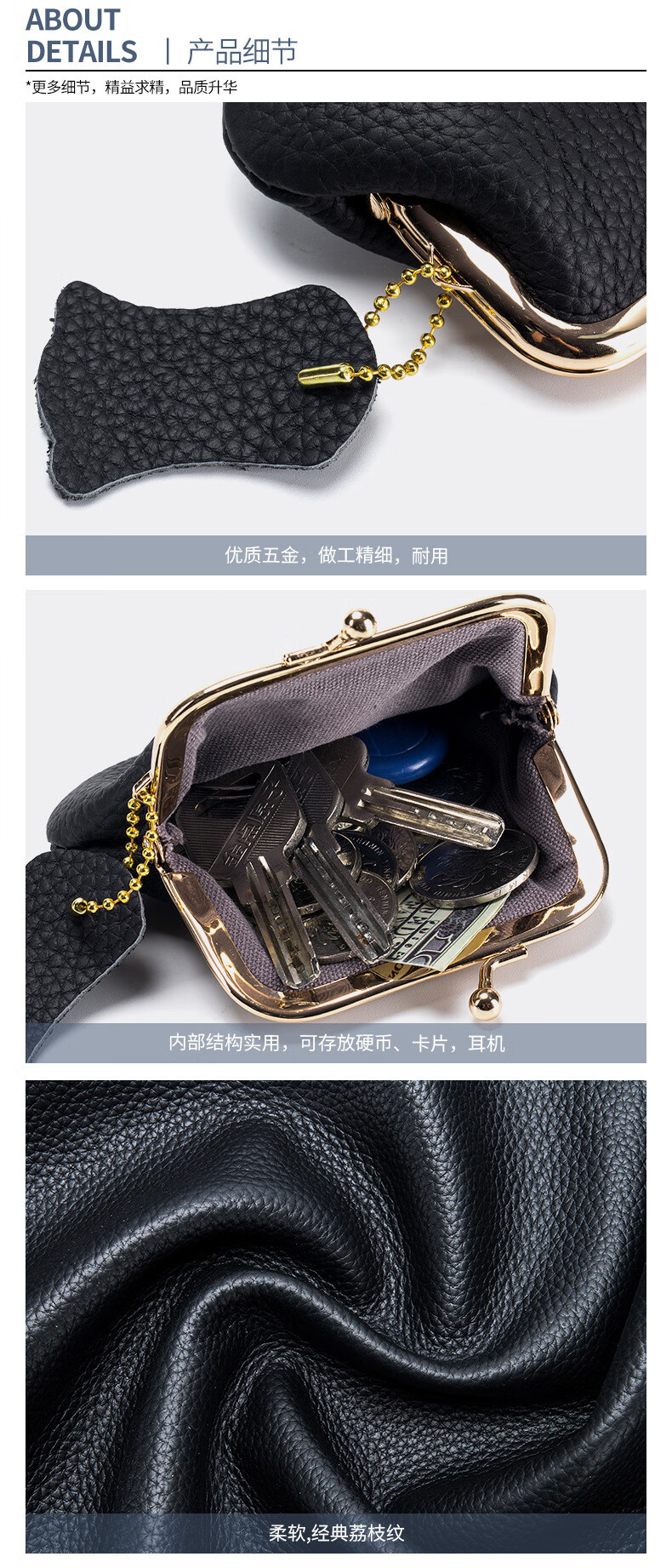 VANLEMN Danish Compact Genuine Leather Key Bag Coin Purse Women's First Layer Cowhide Coin Bag Mini Clip Bag Black Mini