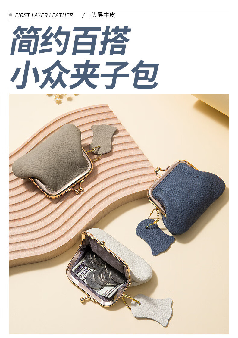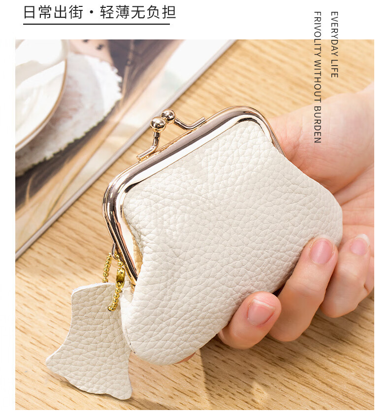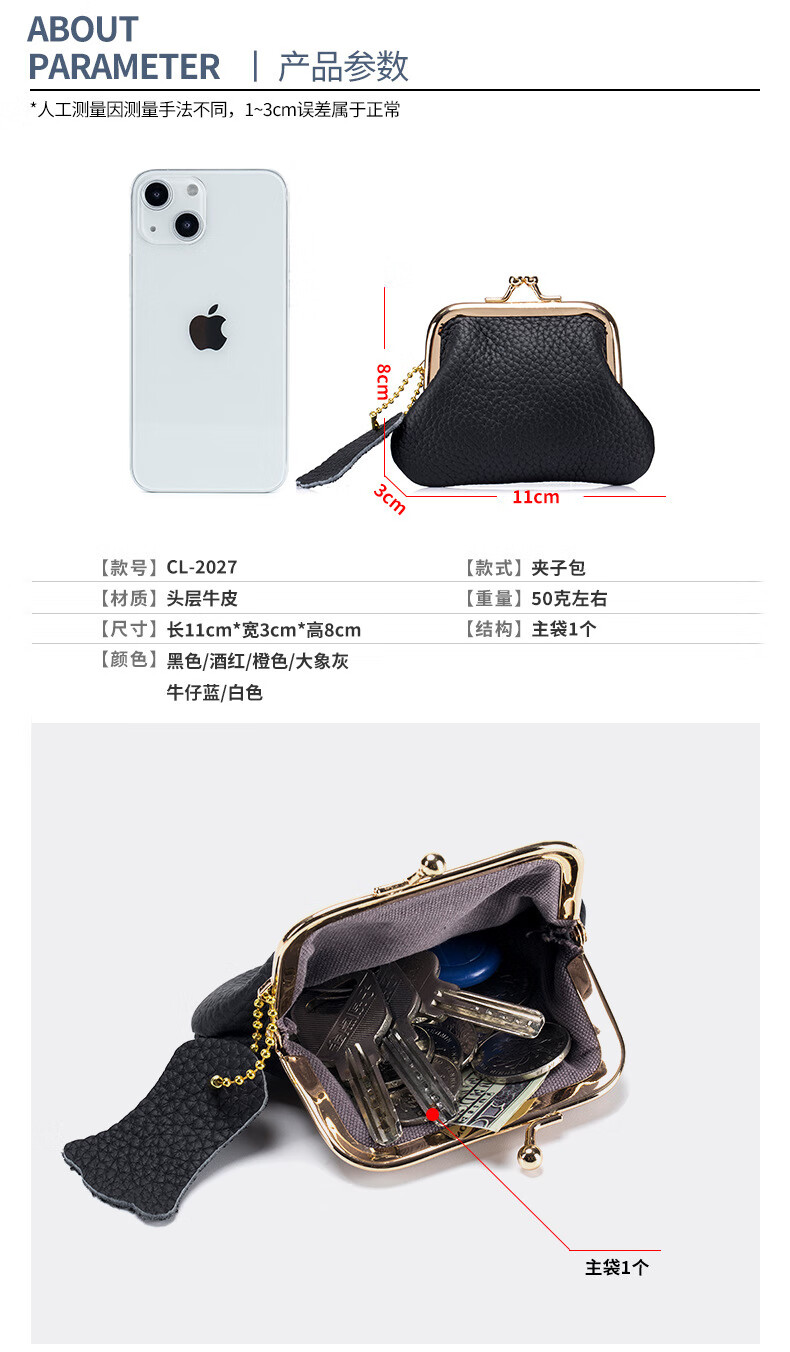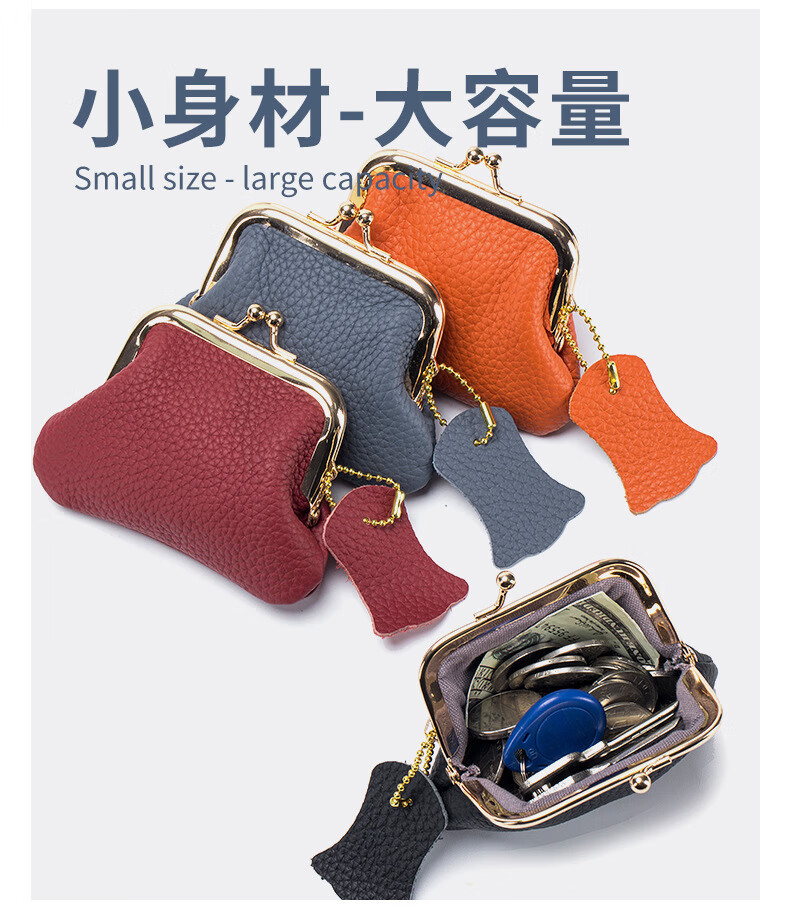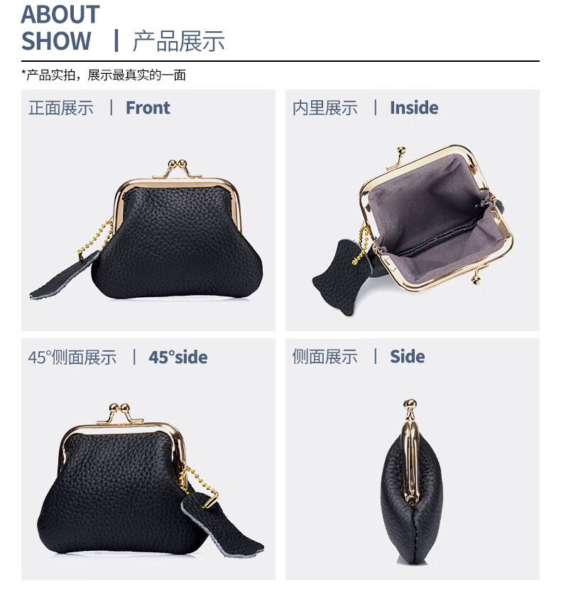 VANLEMN Danish Compact Genuine Leather Key Bag Coin Purse Women's First Layer Cowhide Coin Bag Mini Clip Bag Black Mini