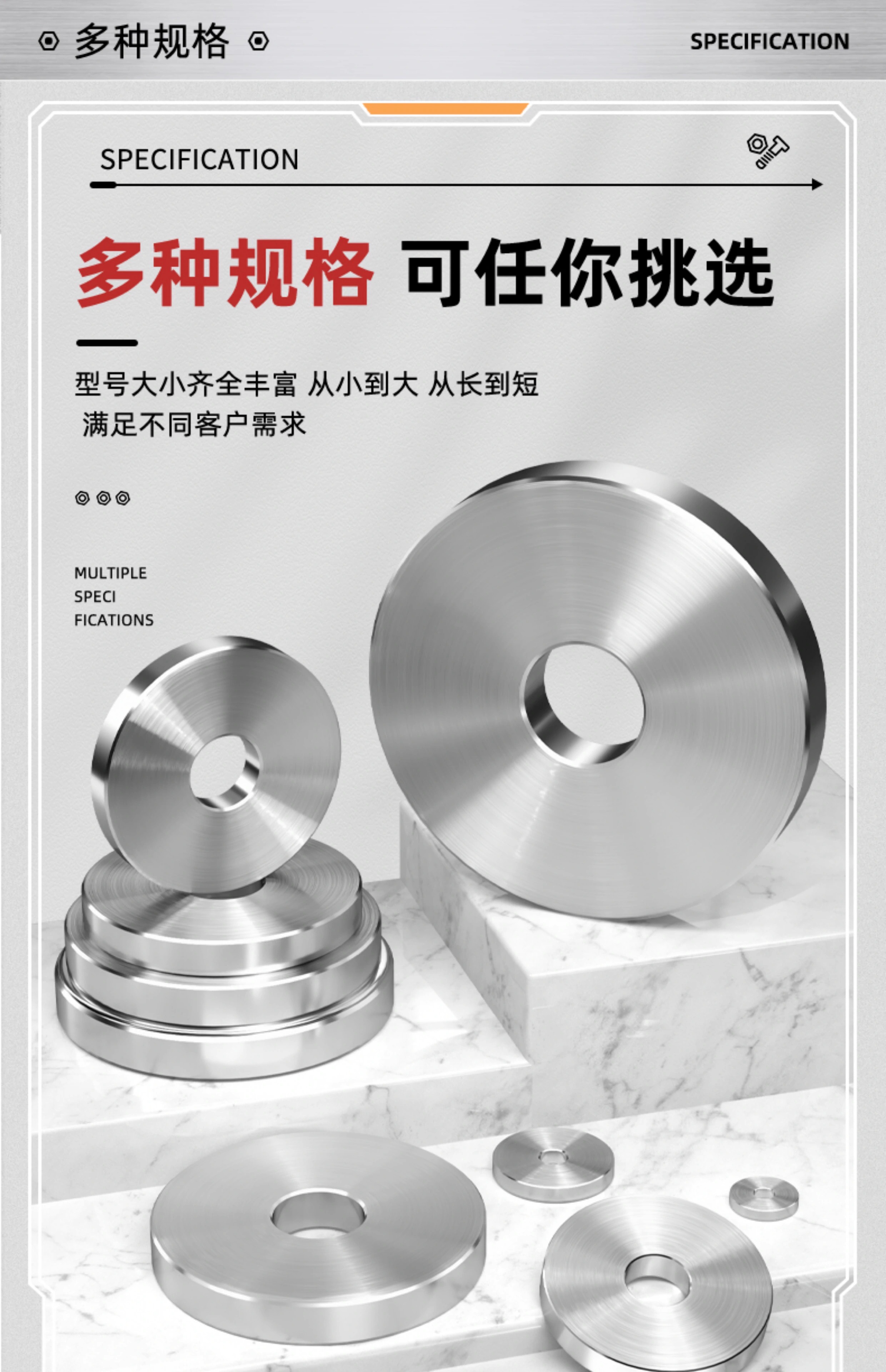 Tianzhuo Hardware high-end 304 stainless steel enlarged heavy-duty flat pad thickened flat washer non-standard gasket lathe processing washer hole 40*100*8 1 piece