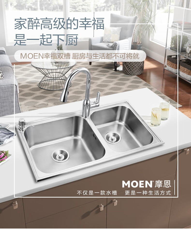 Moen kitchen sink 304 stainless steel double sink kitchen sink dish basin 28106/28116 800 stainless steel double sink + KF09352 stainless steel pull-out dragon