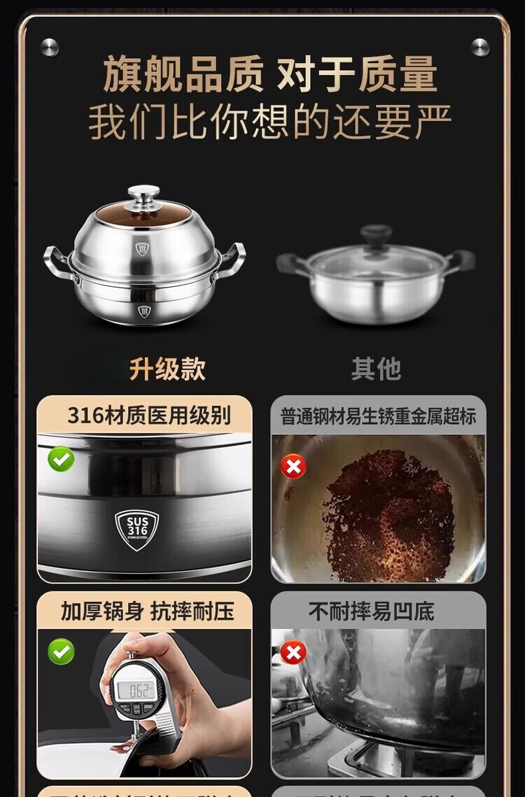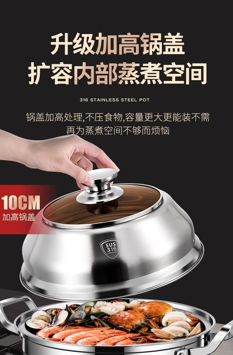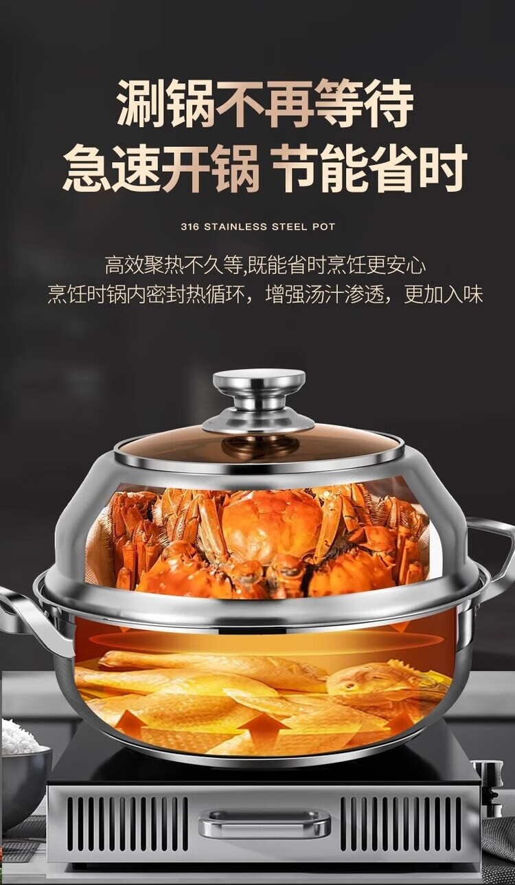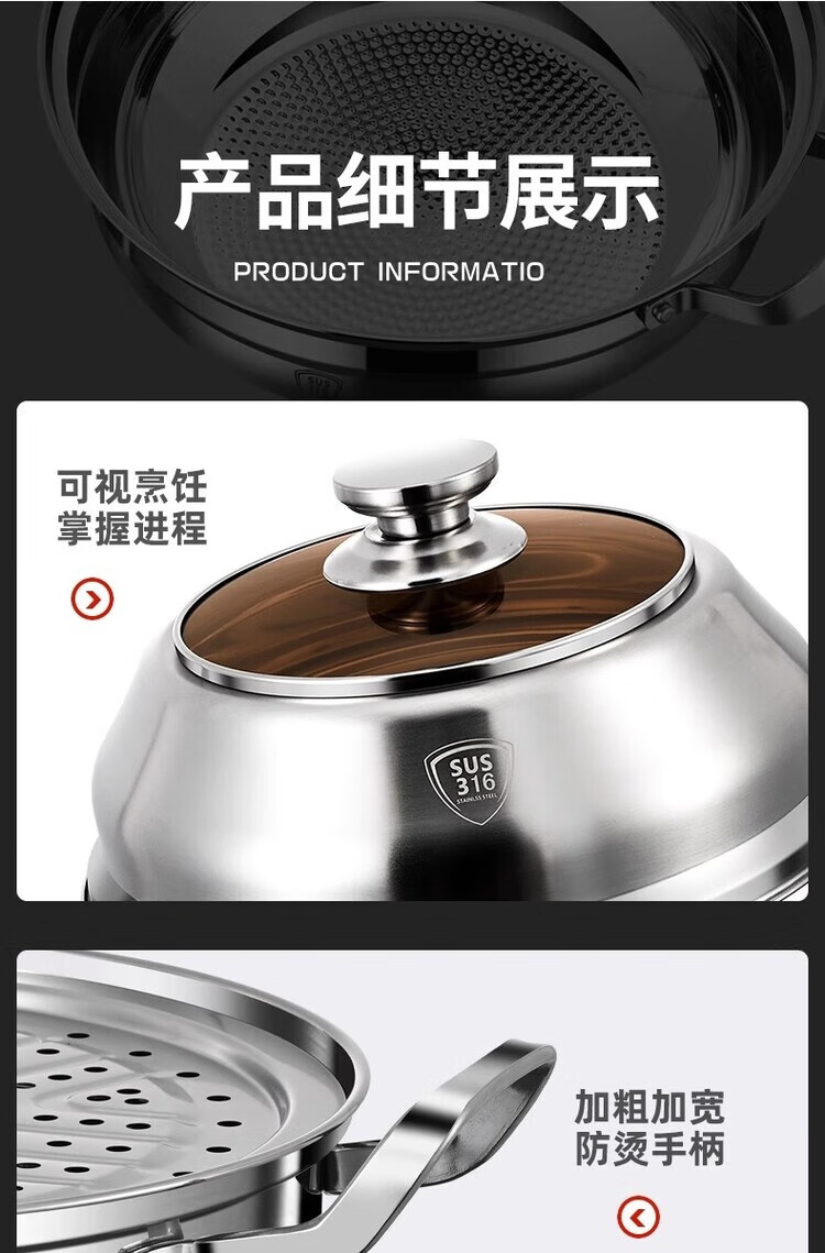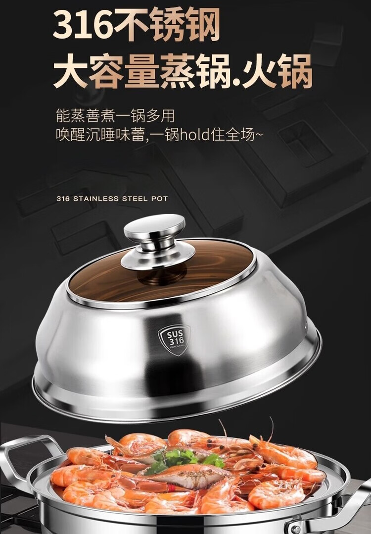 DEATKN German 316 stainless steel steamer thickened large capacity large household steaming and stewing steamer single layer multi-layer steaming pot 28cm single layer steamer 28cm 45CM