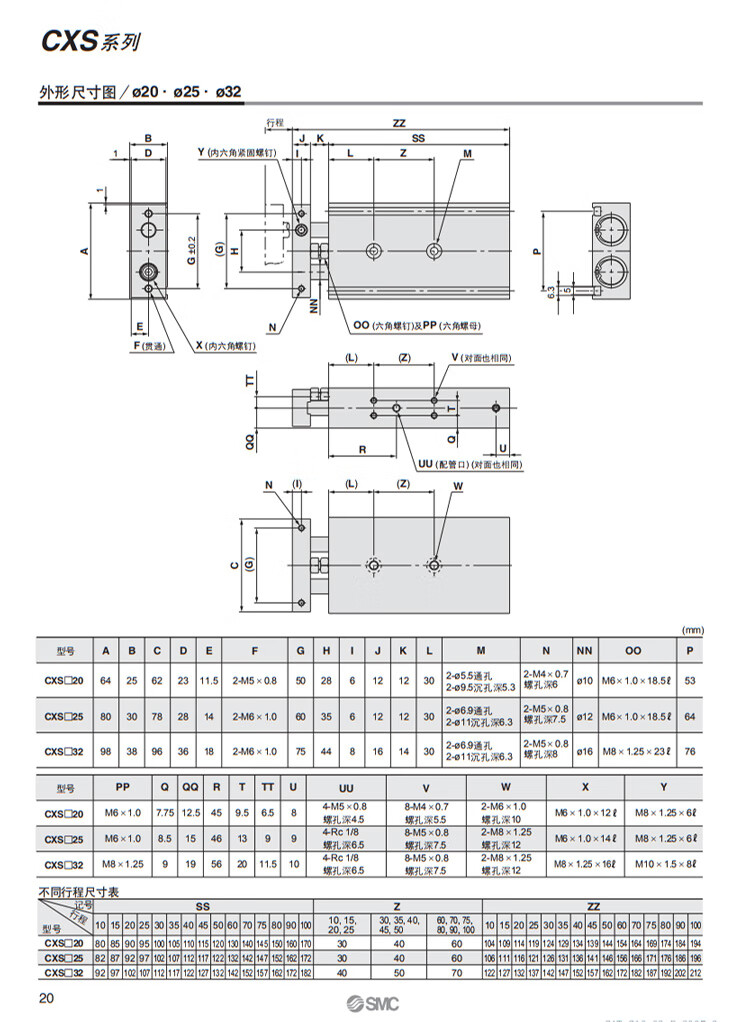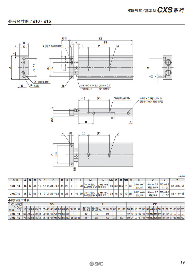SMC's new dual-axis double-rod cylinder CXSL/CXSM6-10/15/20/25/30/35/40/45/50/7 C CXSM6-10