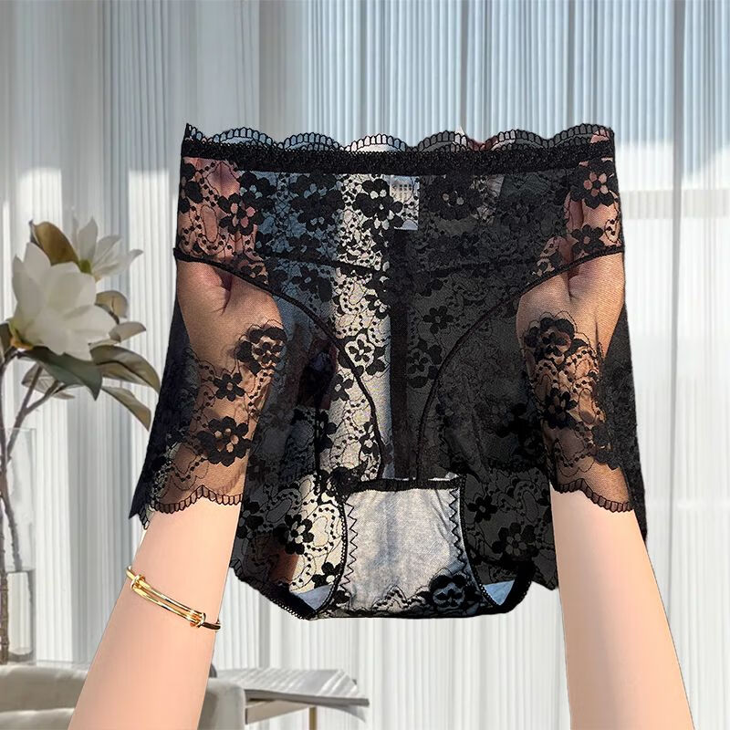 New high-waisted tummy-tightening butt-lifting corset panties for women, large size lace sexy thin mesh seamless body shaping panties black-224 L recommended 100-120 catties