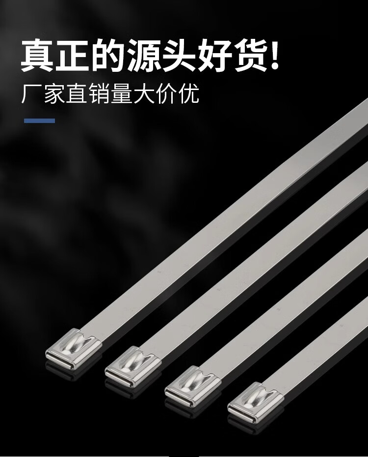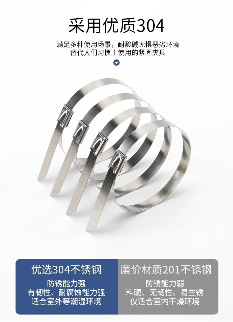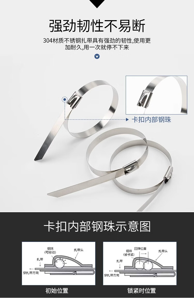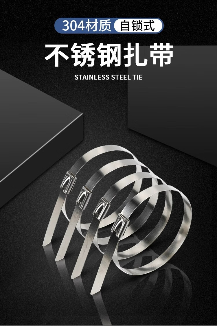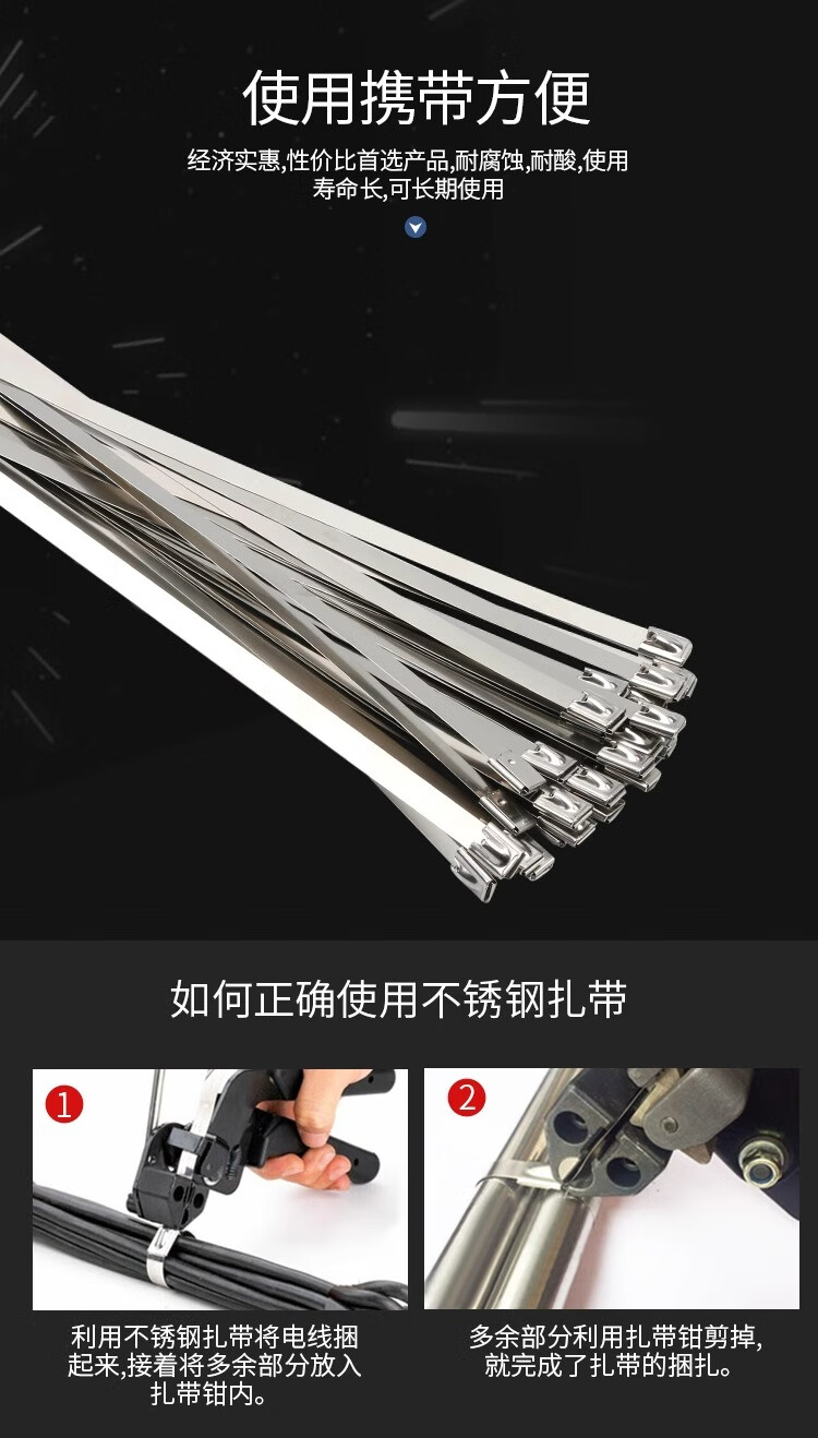 304 stainless steel cable tie self-locking metal cable tie room outdoor marine binding belt strong cable tie tensioner 4.6*200mm/10 pieces