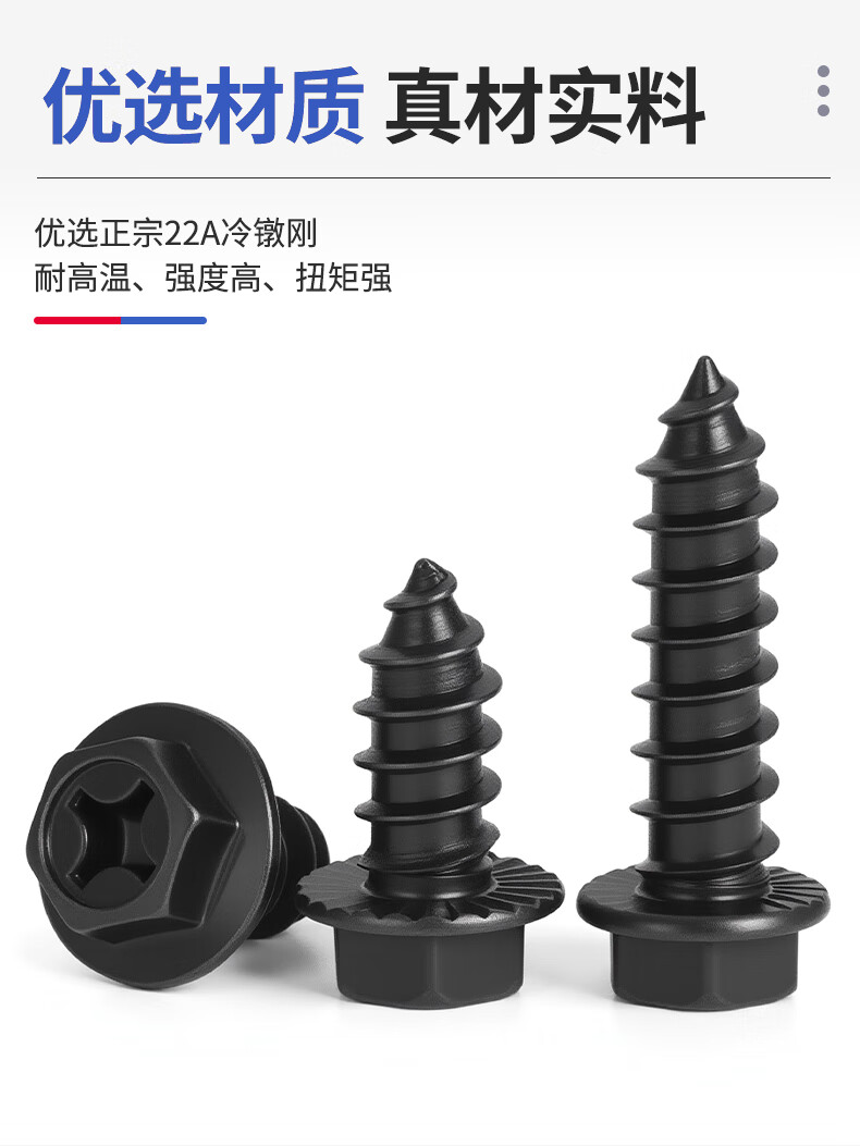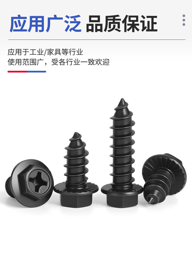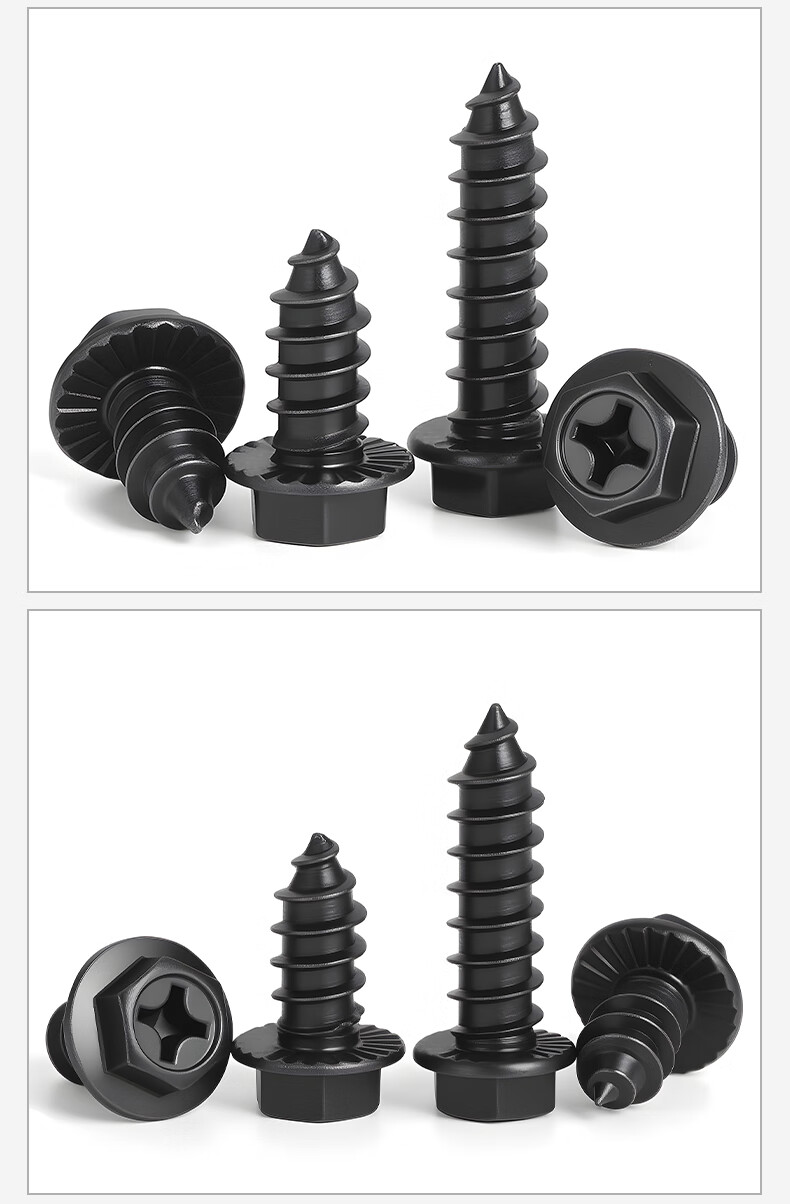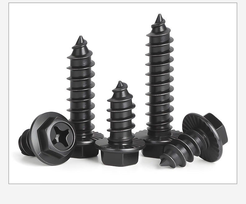 JINGGONG hardened iron cross flange toothed self-tapping screws external hexagonal self-tapping screws with tip and tail pad screws M8*40 (20 pcs) black zinc
