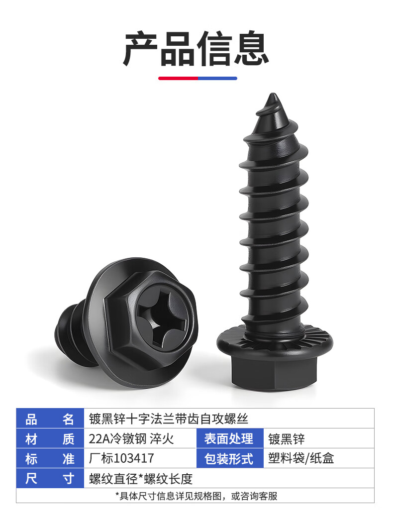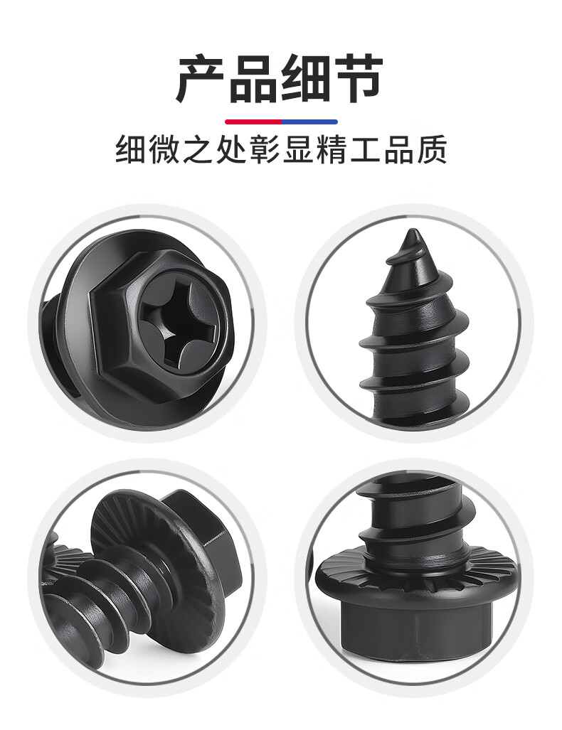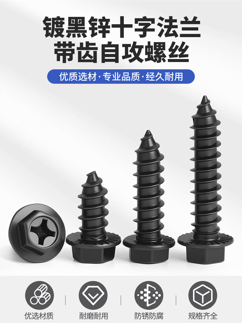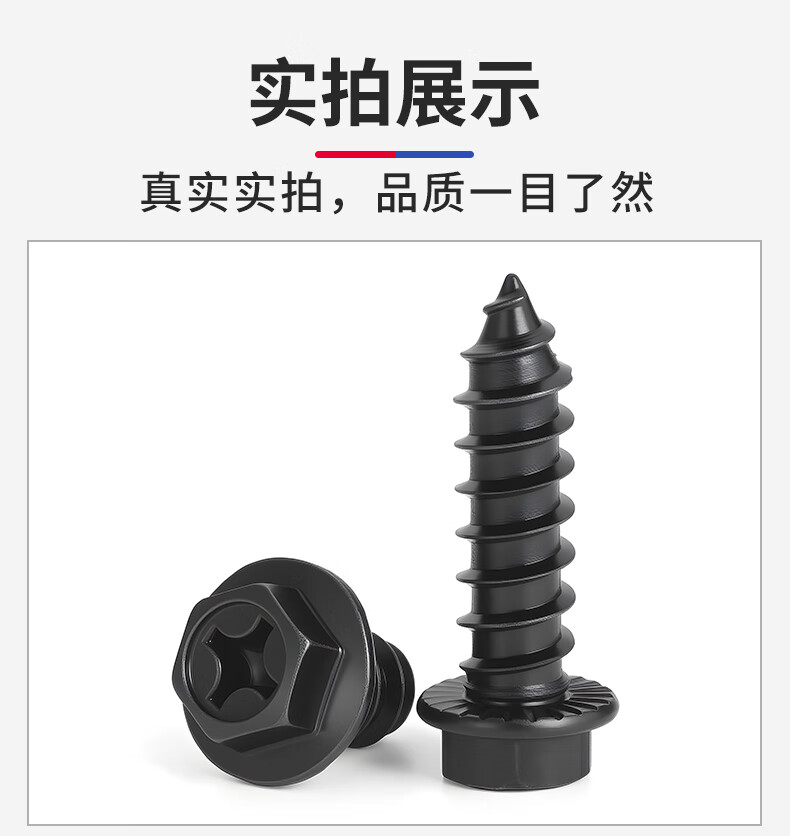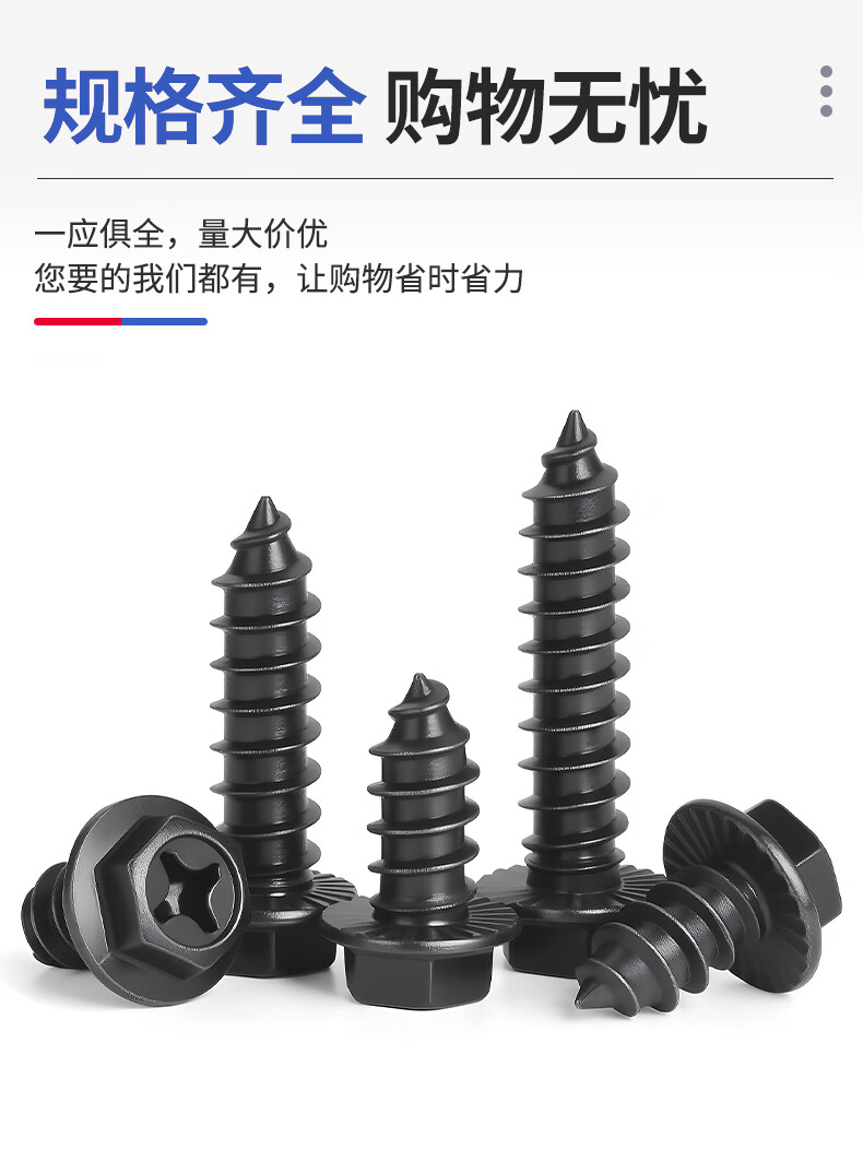 JINGGONG hardened iron cross flange toothed self-tapping screws external hexagonal self-tapping screws with tip and tail pad screws M8*40 (20 pcs) black zinc