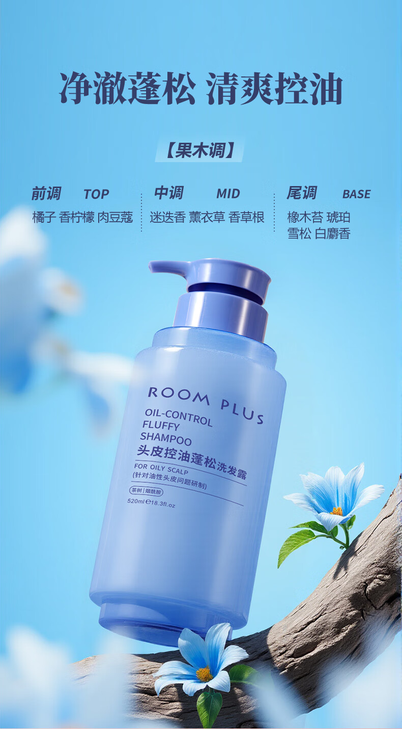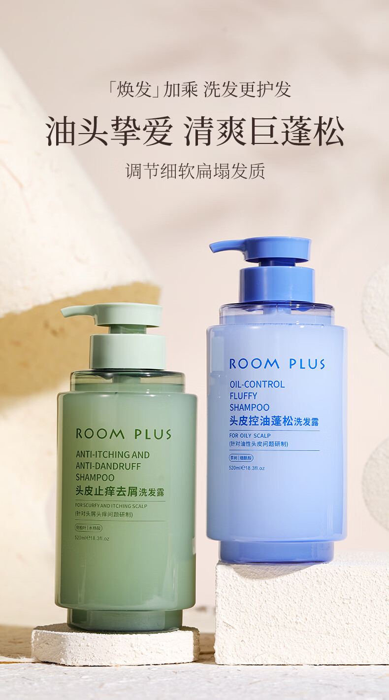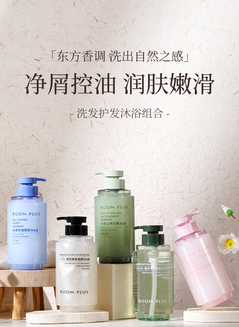 ROOM PLUS Shampoo, Oil Control and Fluffy Scalp, Anti-Dandruff, Anti-Breakage Conditioner, Anti-Acne Shower Gel, Body Care Set, Oil Control and Fluffy Scalp Shampoo 520ml