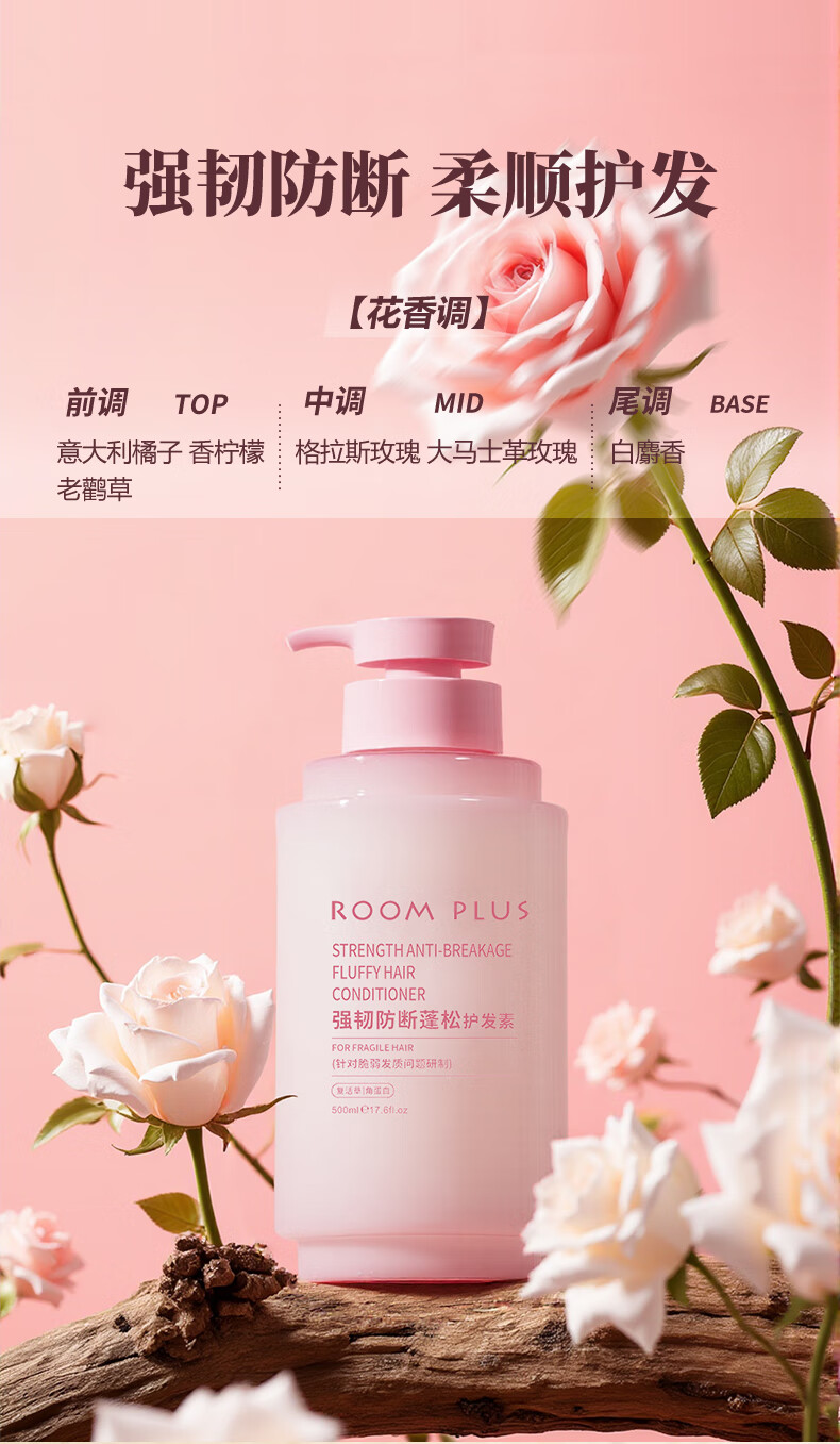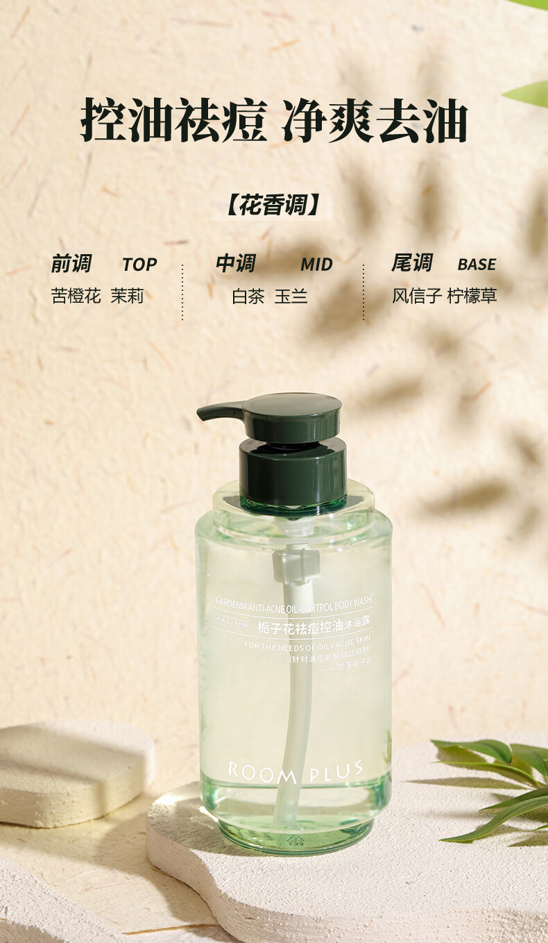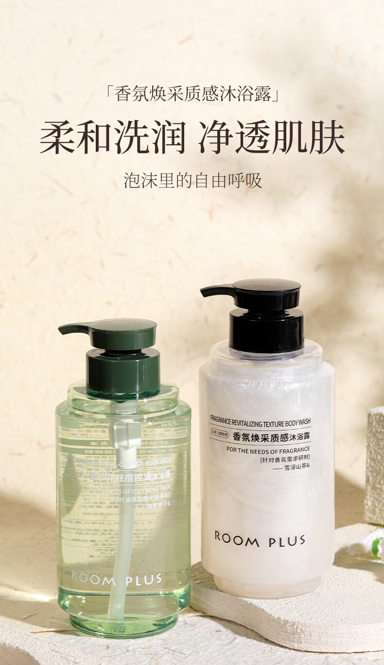 ROOM PLUS Shampoo, Oil Control and Fluffy Scalp, Anti-Dandruff, Anti-Breakage Conditioner, Anti-Acne Shower Gel, Body Care Set, Oil Control and Fluffy Scalp Shampoo 520ml