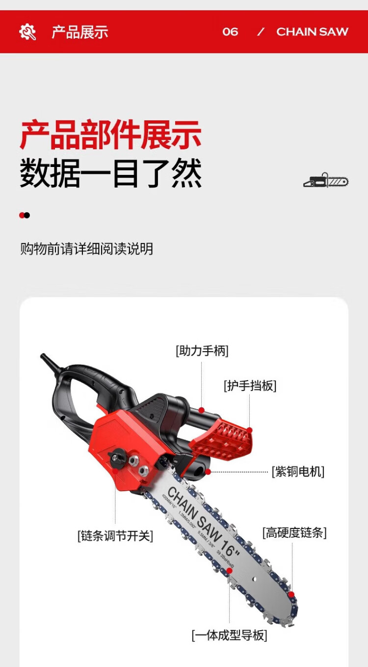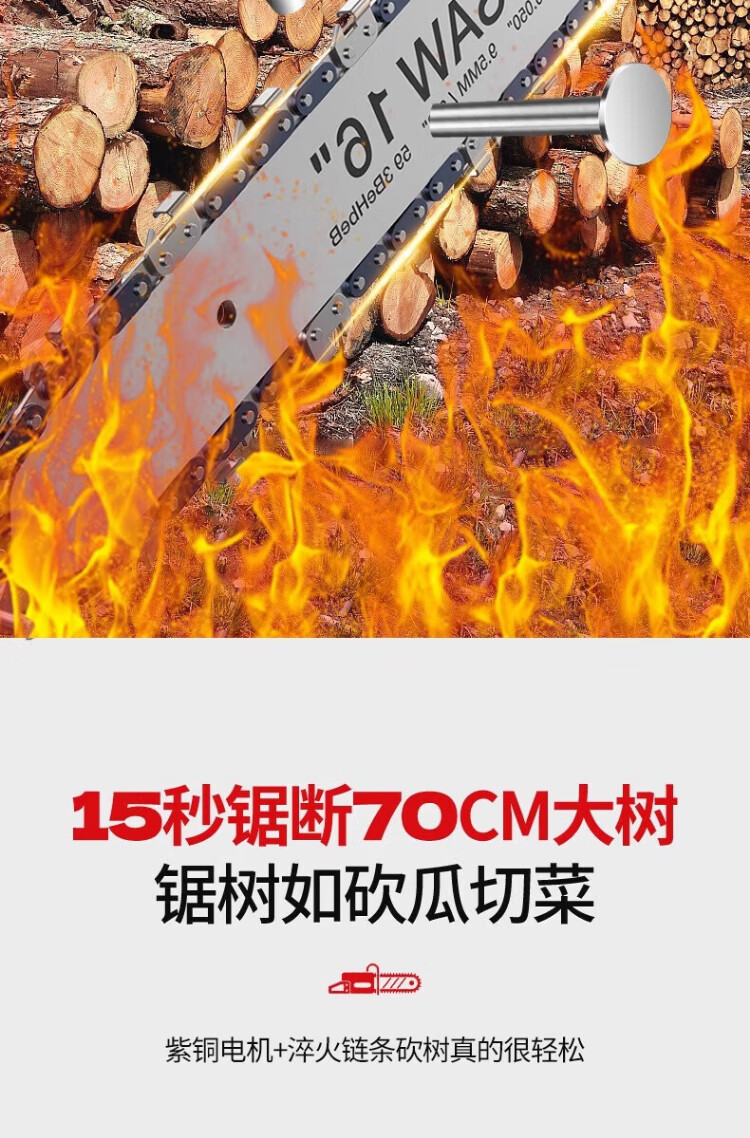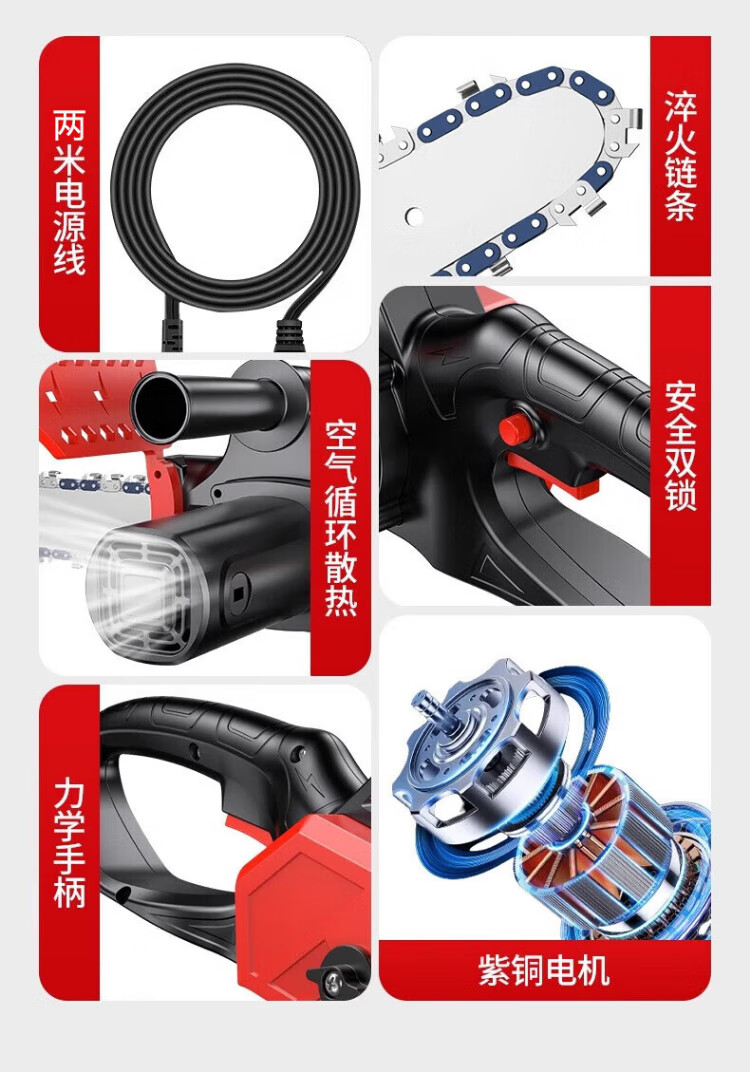 Xianniao chainsaw household firewood 220v high-power logging saw tree artifact electric chain saw wired tree felling portable saw cutting machine 12-inch flagship brushless pure copper motor + two quenching chains plug-in tree-based rural firewood chainsaw woodworking