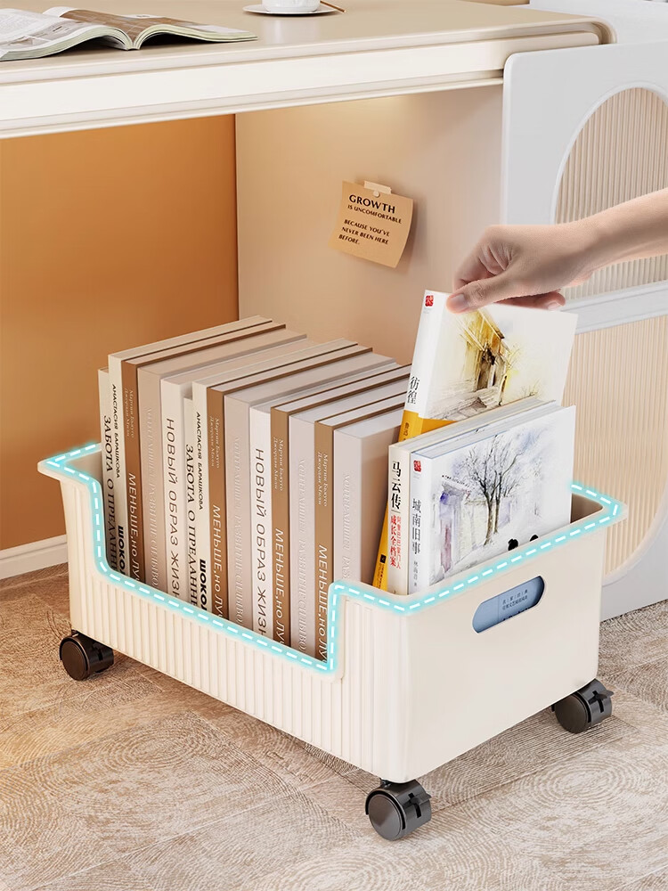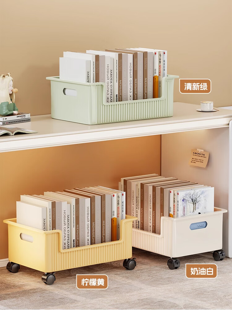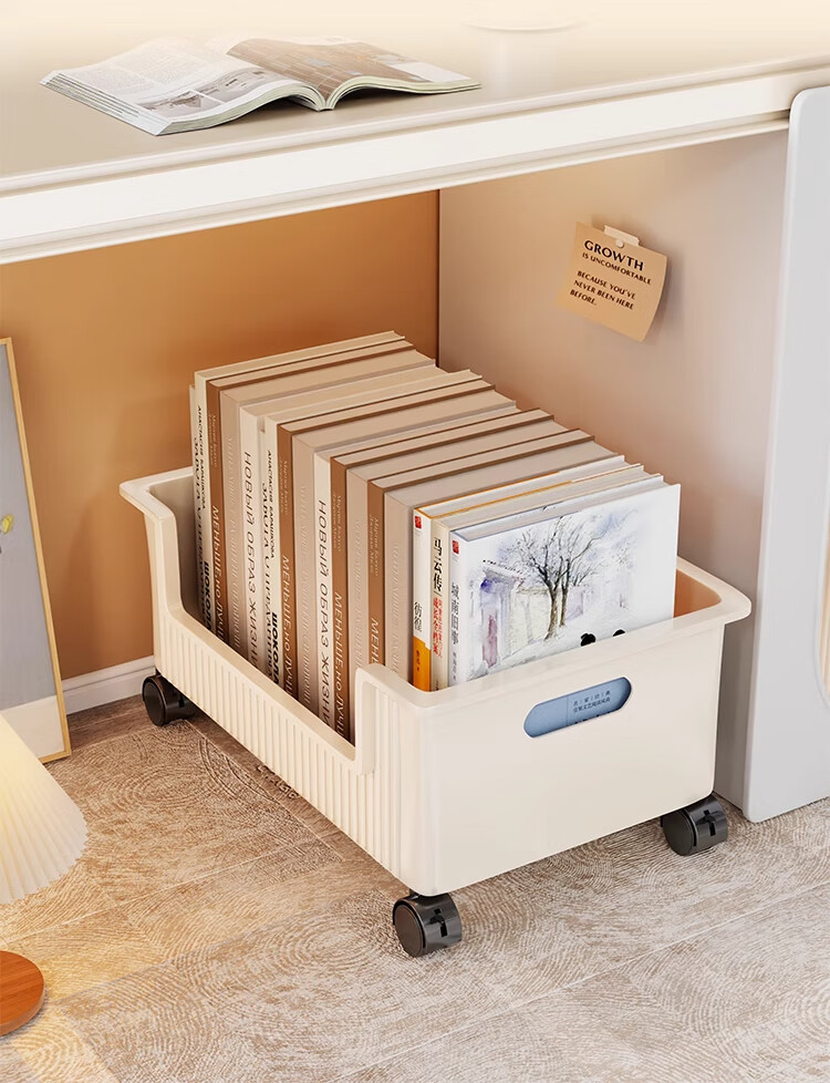 Under-desk book storage box classroom bag rack pulley removable book box student desktop book storage box bookshelf cream white 1 pack can be rotated 360
