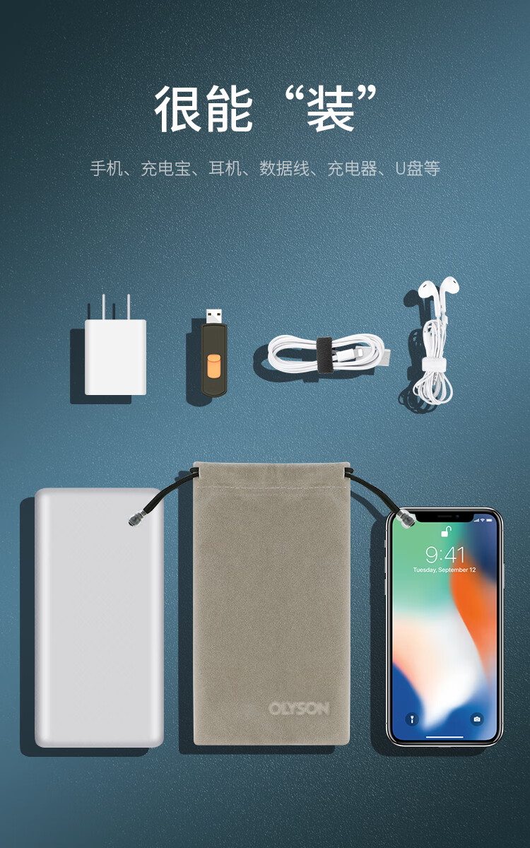 OLYSON power bank protective cover suitable for Huawei Xiaomi mobile power storage bag data cable charger velvet bag earphone dust bag mobile phone case portable custom logo single pocket small size 9.5*17.5cm