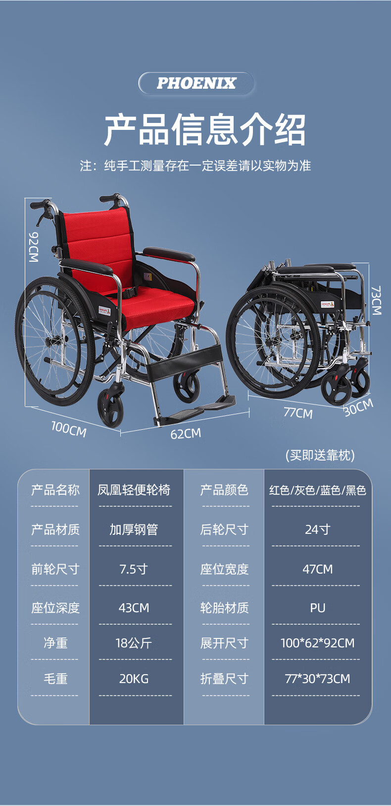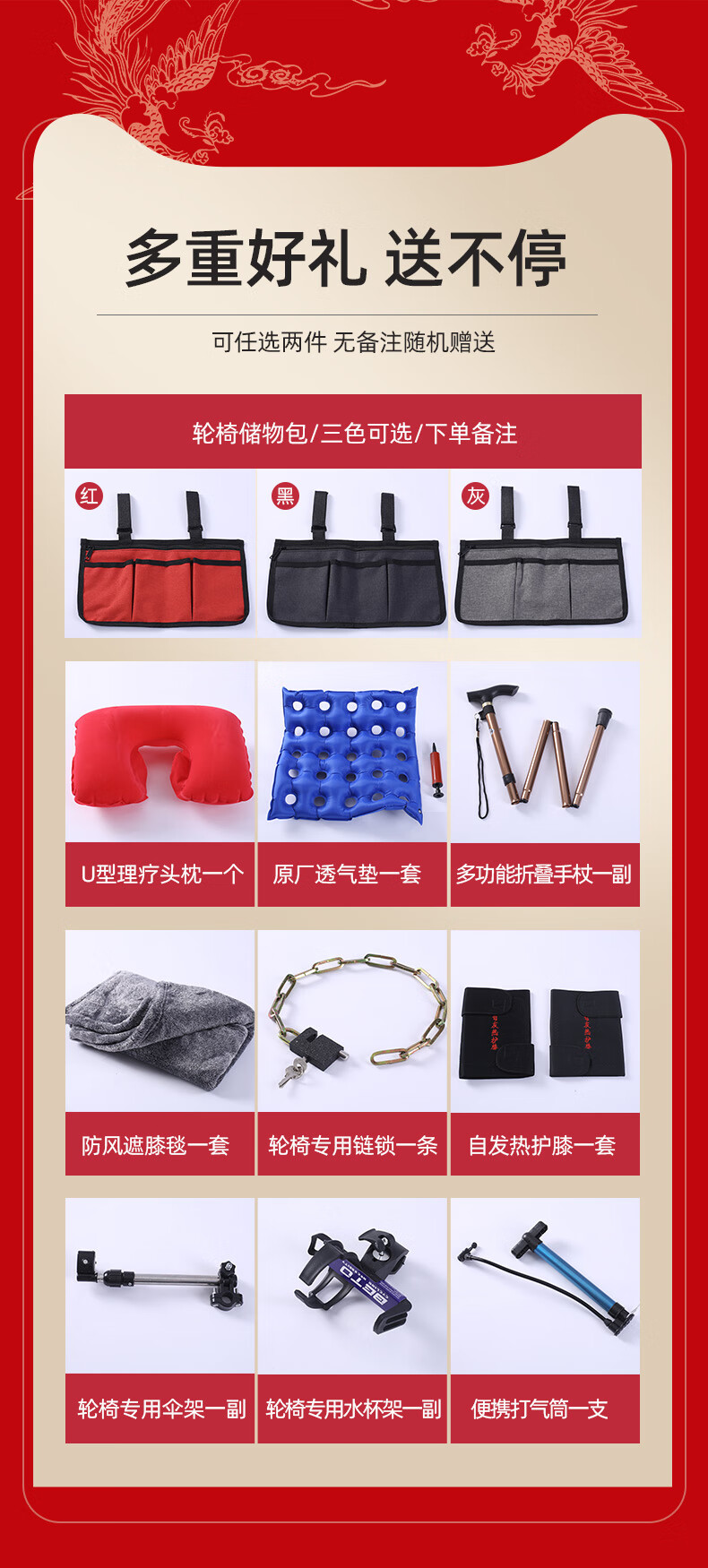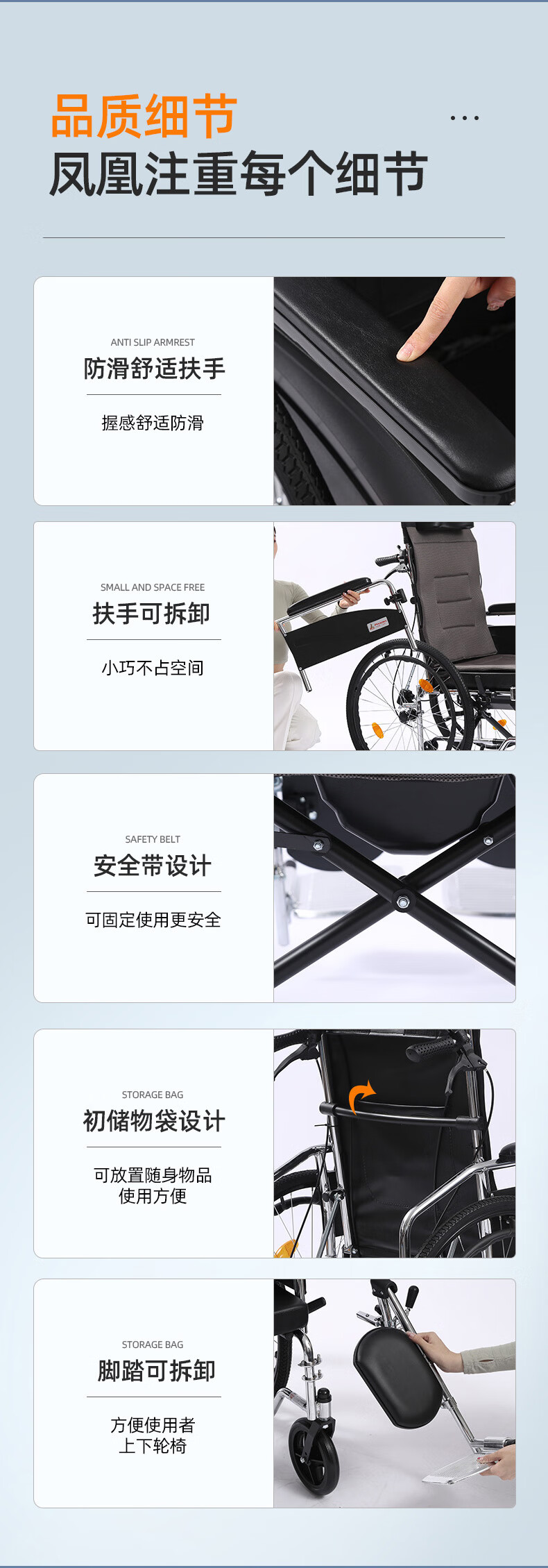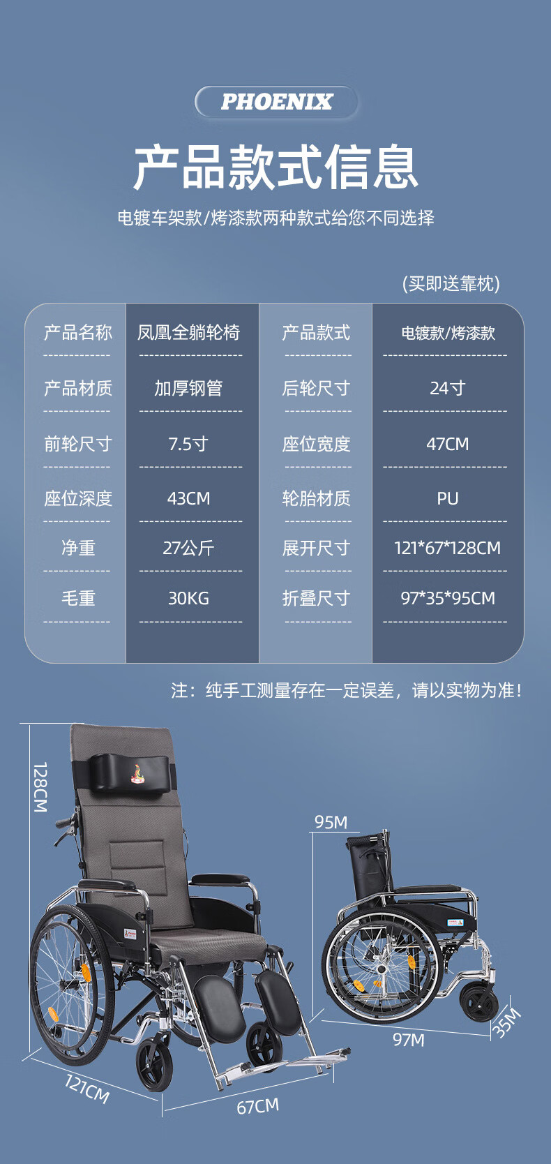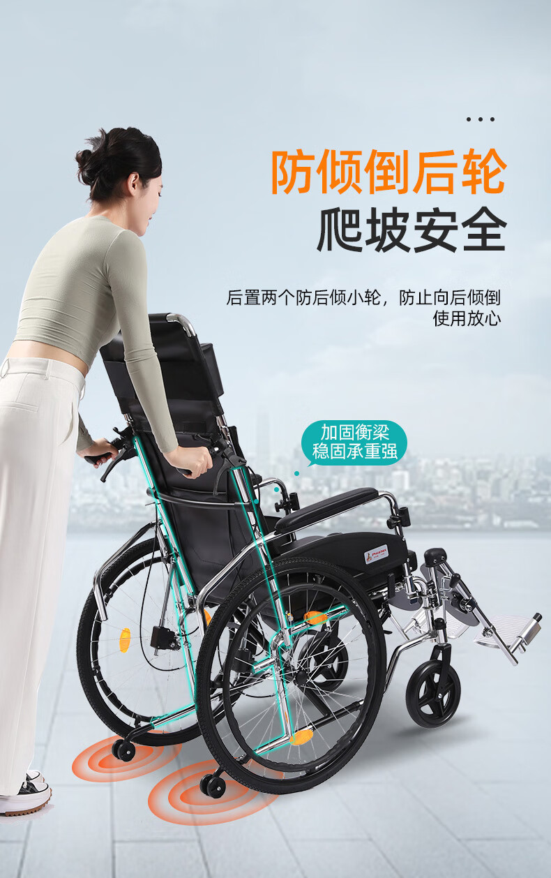 Phoenix multifunctional wheelchair, foldable and lightweight, with seat and commode, portable stroller for the elderly, fully reclined and semi-reclining, walking aid, bathing, Phoenix official +903 electroplated frame, dining table, seated, fully reclined and semi-reclining, leather fabric, solid tire + water cup holder