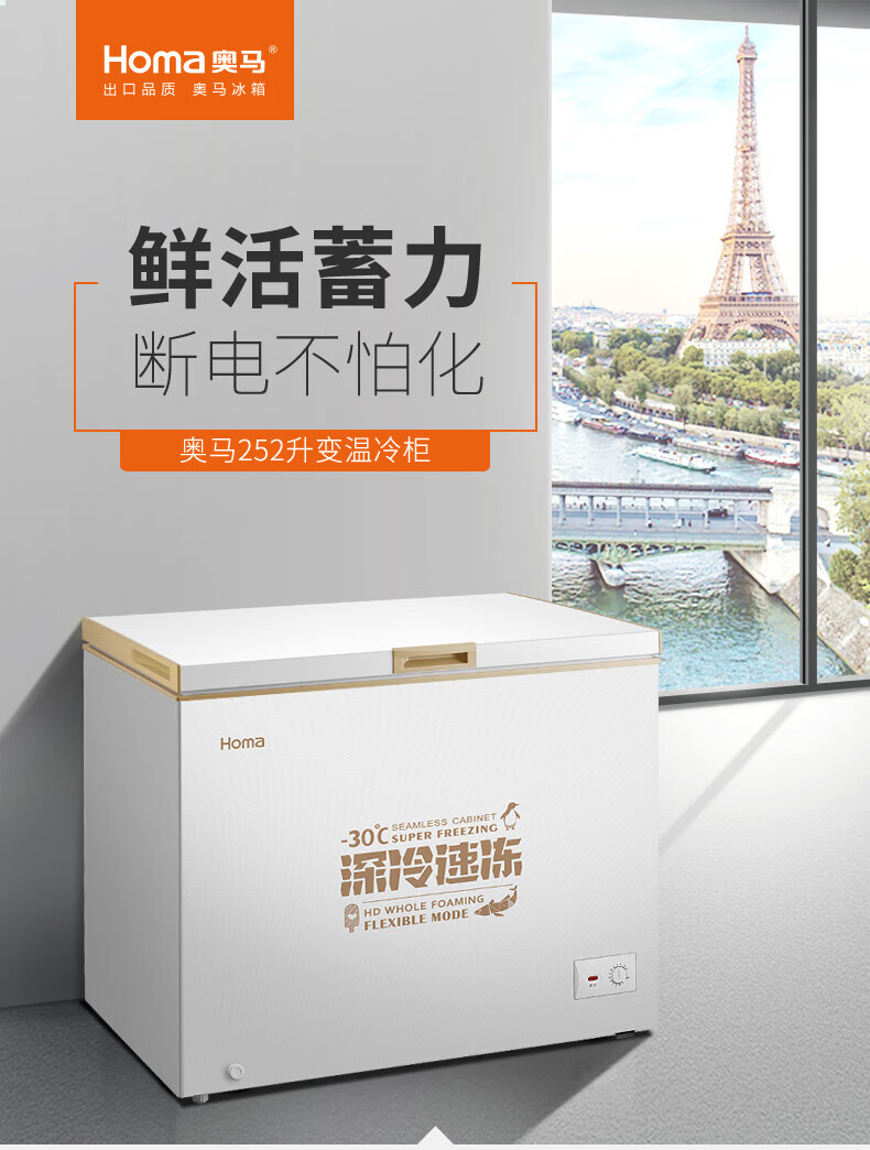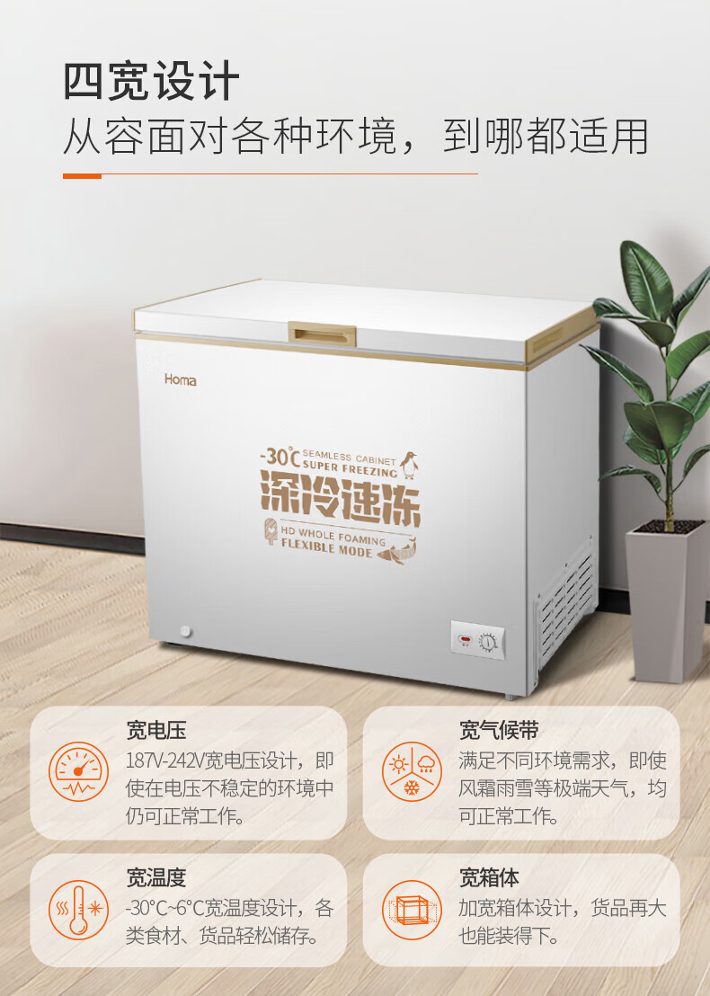Homa 252L household horizontal freezer commercial refrigeration-freezing conversion quick-freezing refrigerator first-level energy efficiency frost reduction 80% deep cold brown 252L energy-saving upgraded version