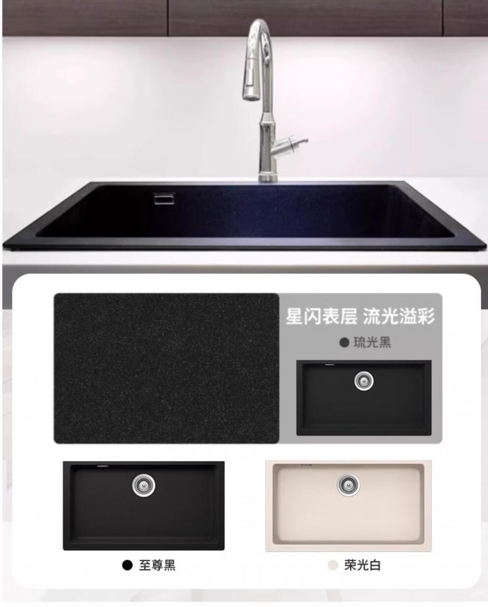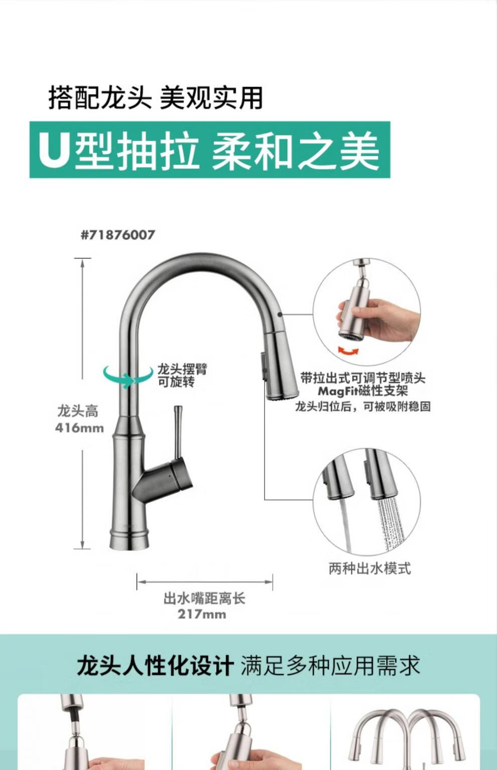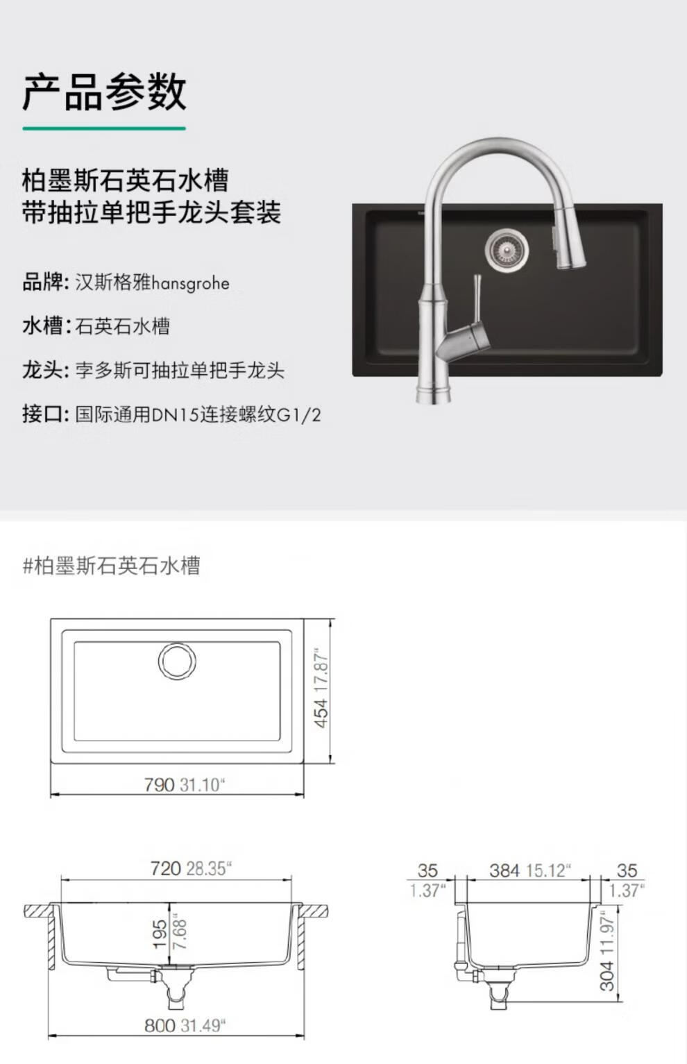 Hansgrohe granite sink quartz stone wash basin kitchen above and below counter basin 43122500 now in stock black single tank + U-shaped pull-out faucet package