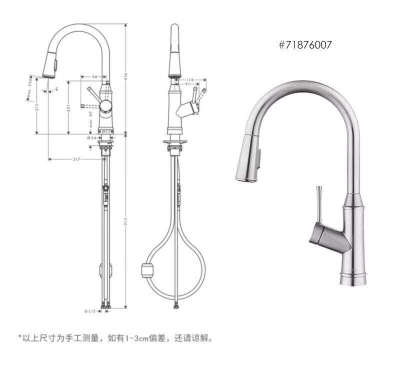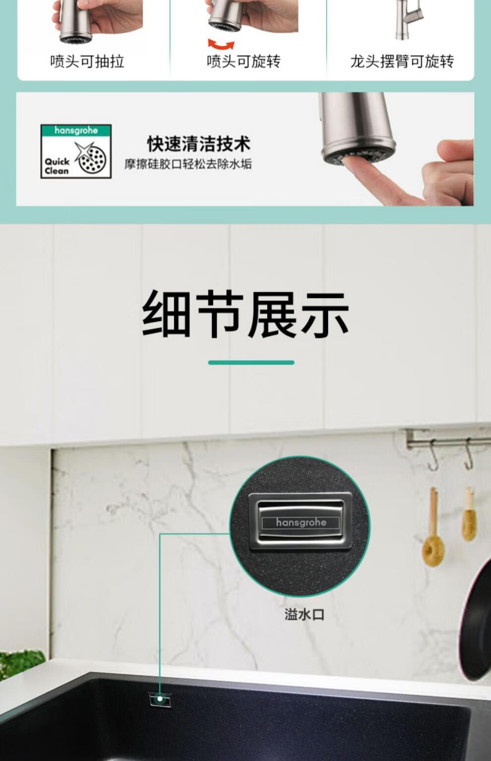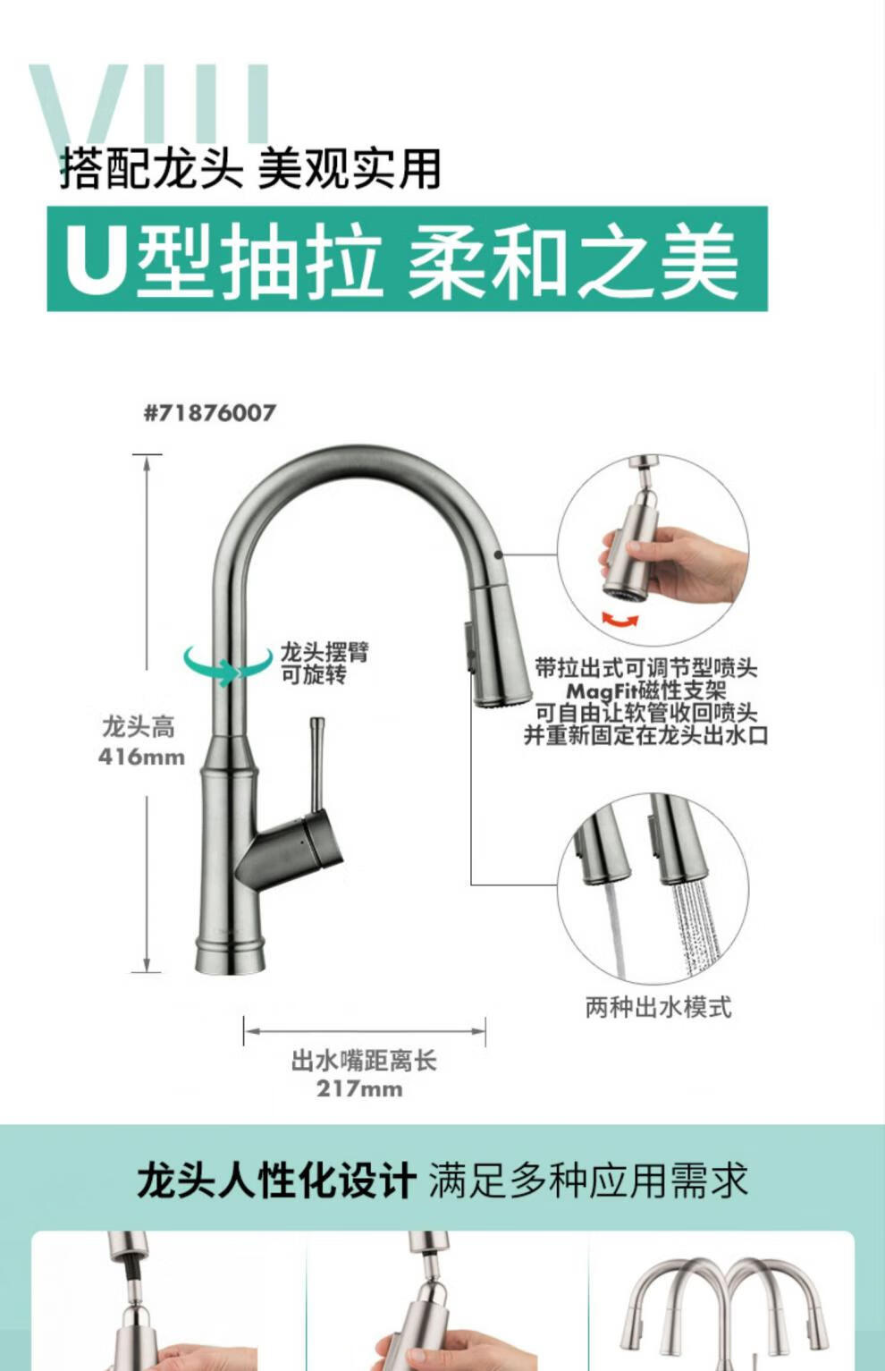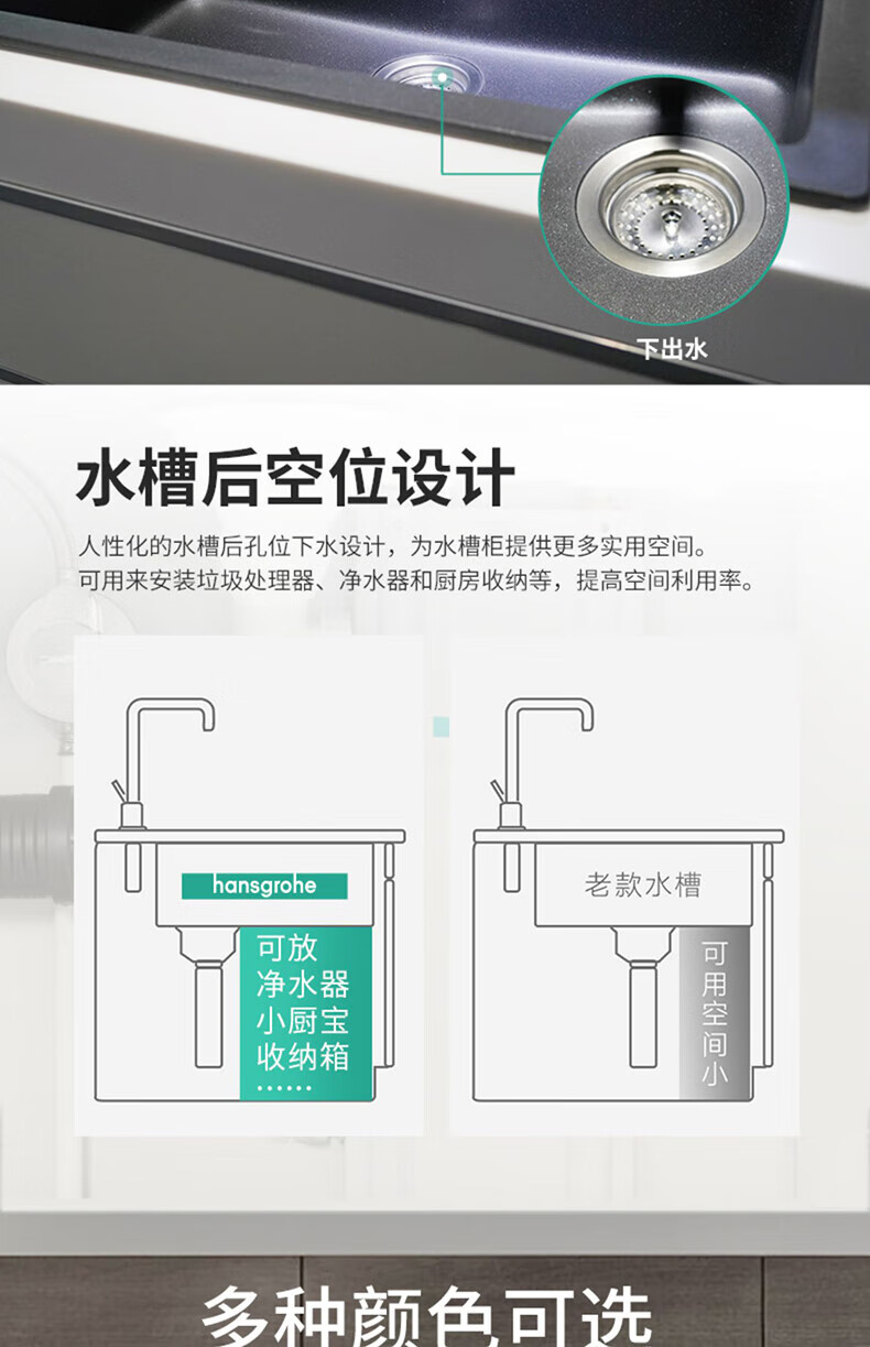 Hansgrohe granite sink quartz stone wash basin kitchen above and below counter basin 43122500 now in stock black single tank + U-shaped pull-out faucet package