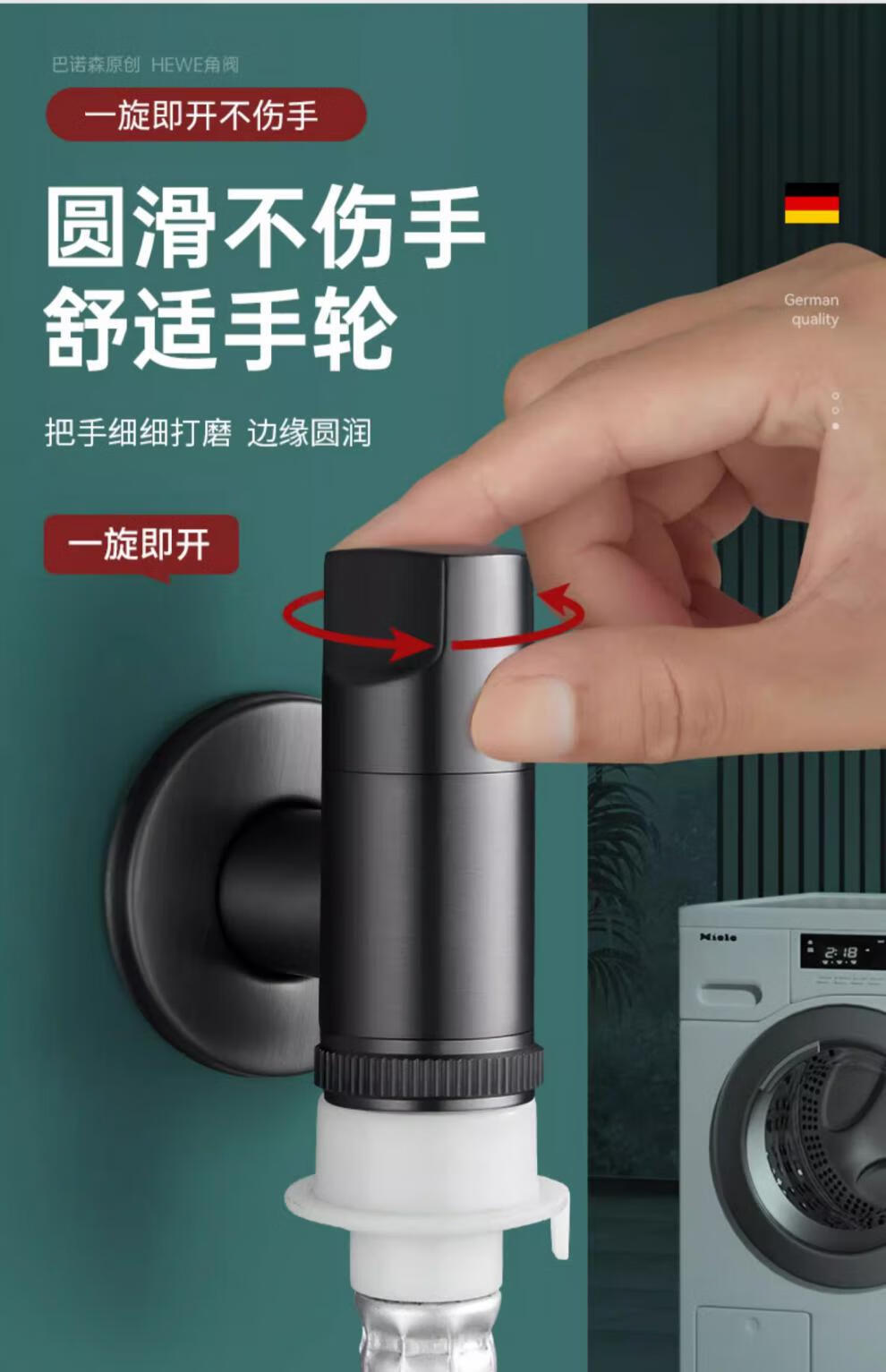 Ingenuity - Kohler faucet, fully automatic washing machine, four-point automatic water stop valve, anti-falling drum, ultra-short, Haier washing machine, bright silver, full copper thickened valve