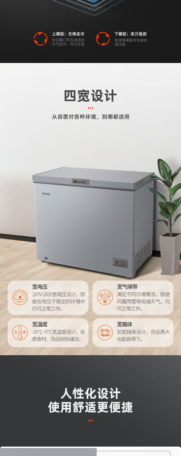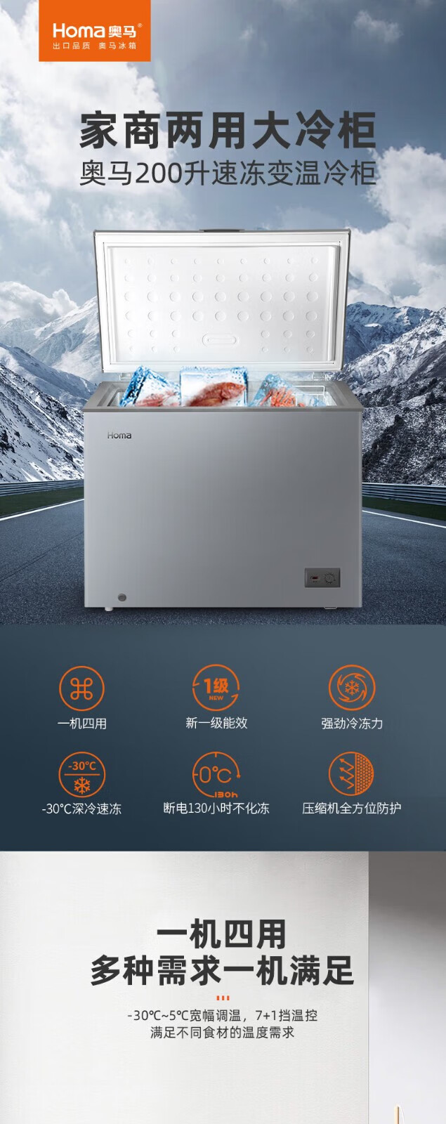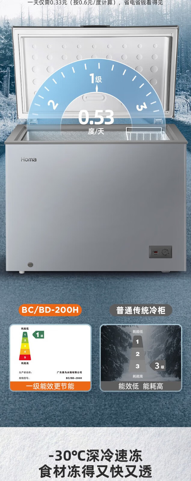 Homa 200 liter household quick freezing freezer refrigeration and freezing conversion - 30 degree deep freezing quick freezing first level energy efficiency frost reduction 80%