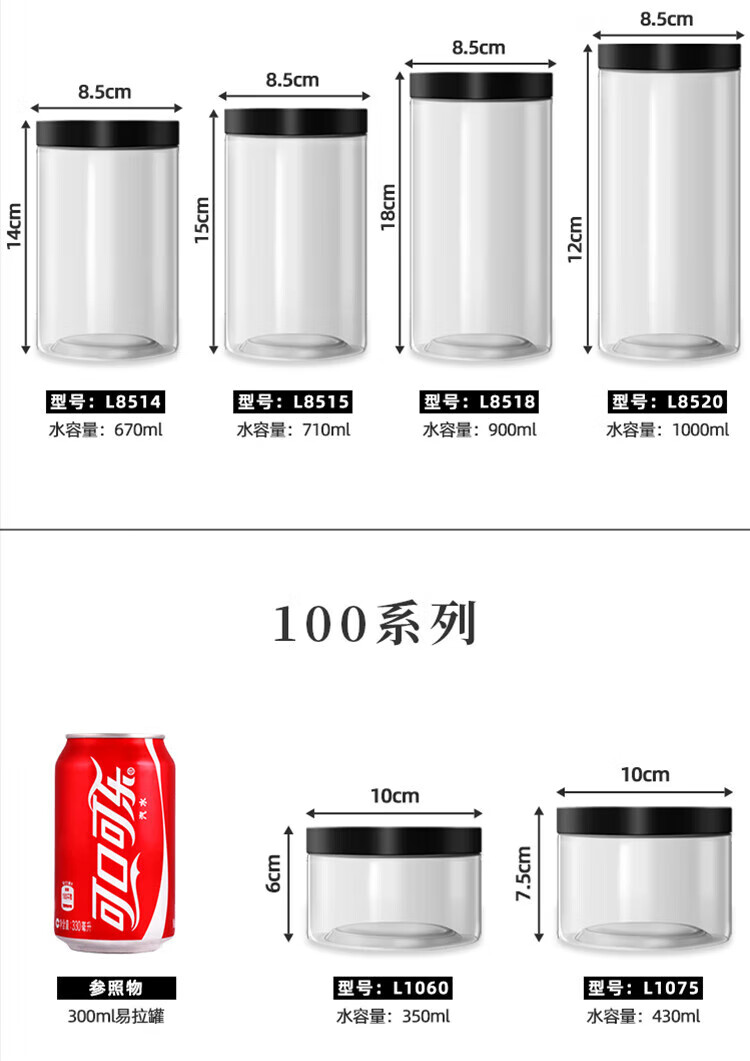 OLOEY plastic jar food grade sealed small jar transparent large mouth empty plastic bottle wide mouth round nut biscuit jar 5.5CM*6.5CM thickened 100mL