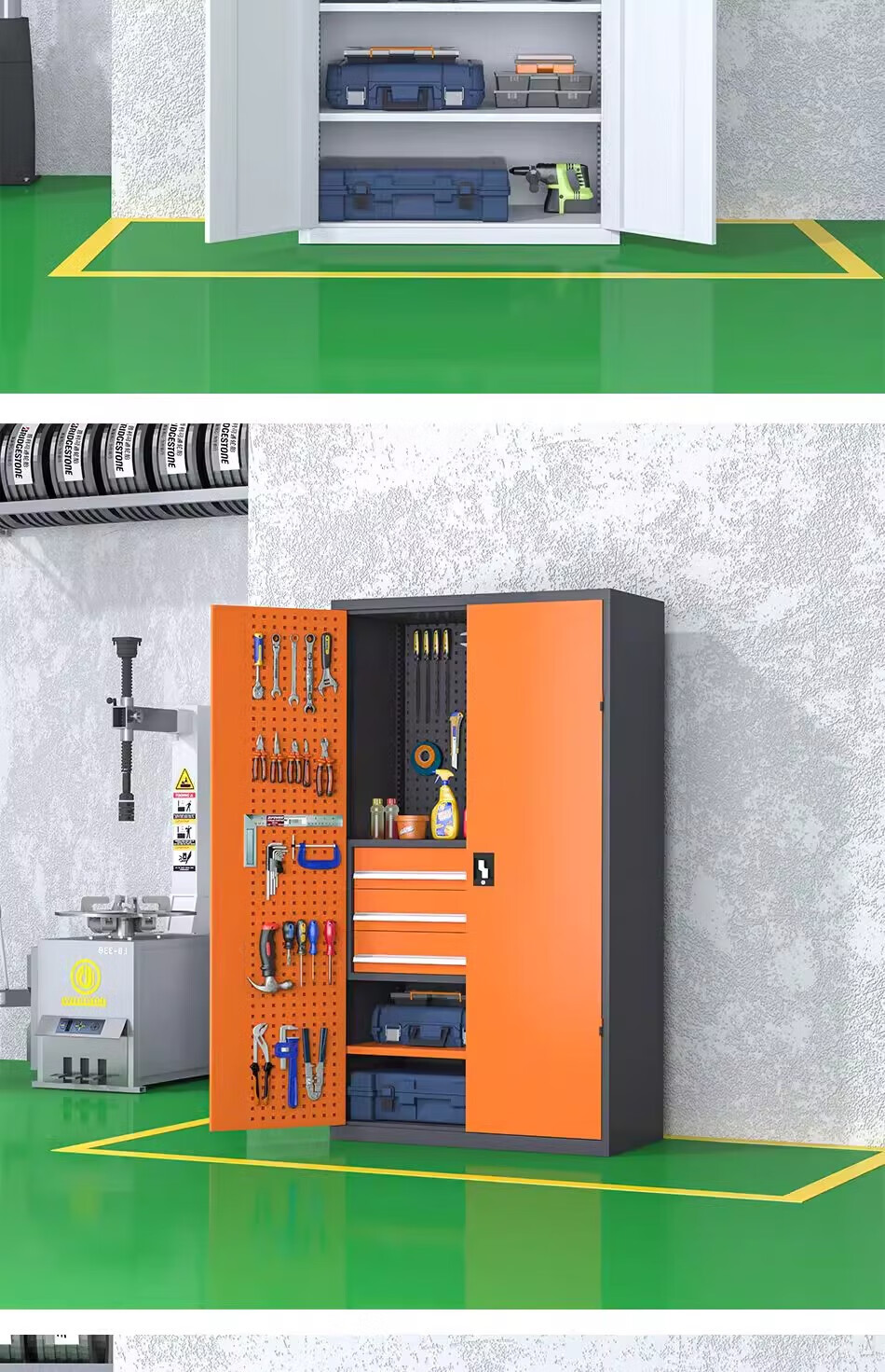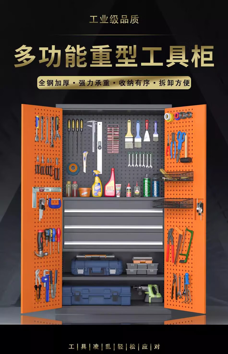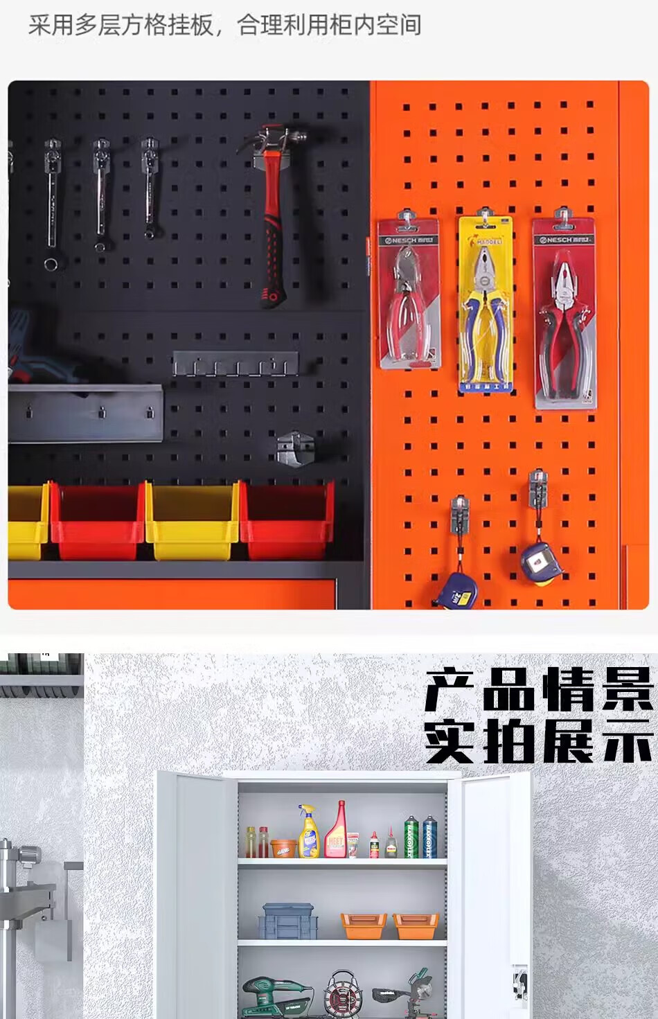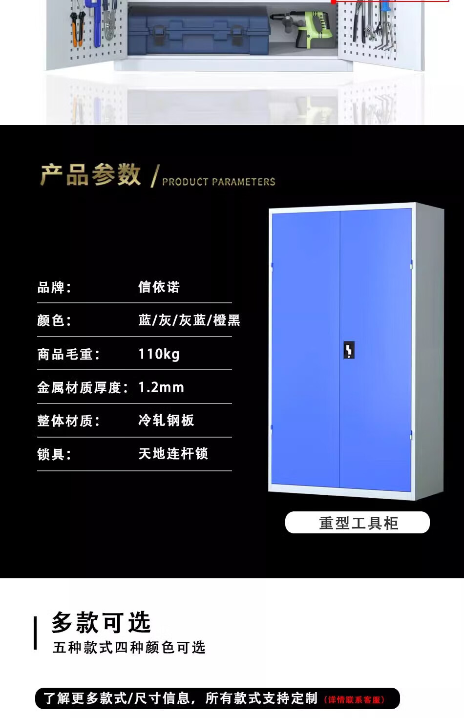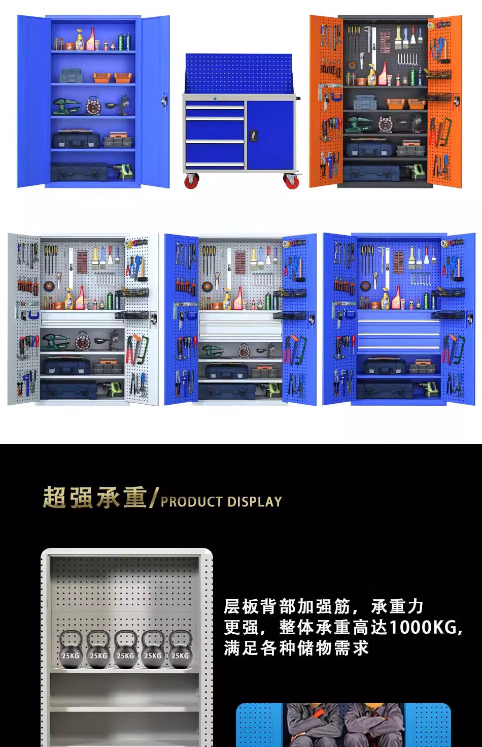 Pupan thickened industrial heavy-duty tool cabinet workshop hardware factory double-door storage tool box auto repair tool cart thickened gray five-layer no hanging board