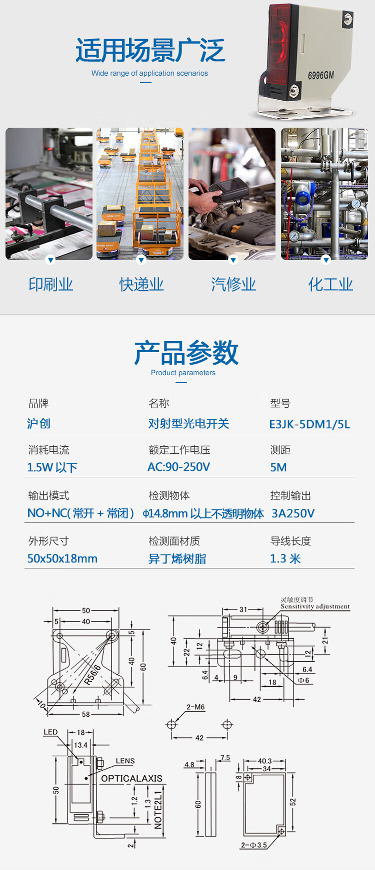 Photoelectric switch sensor through-beam sensor E3JK-5DM1 E3JK-5L 220V AC voltage 220V