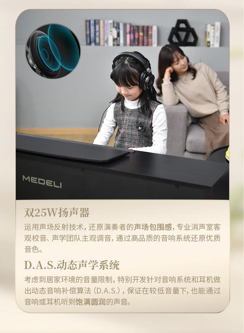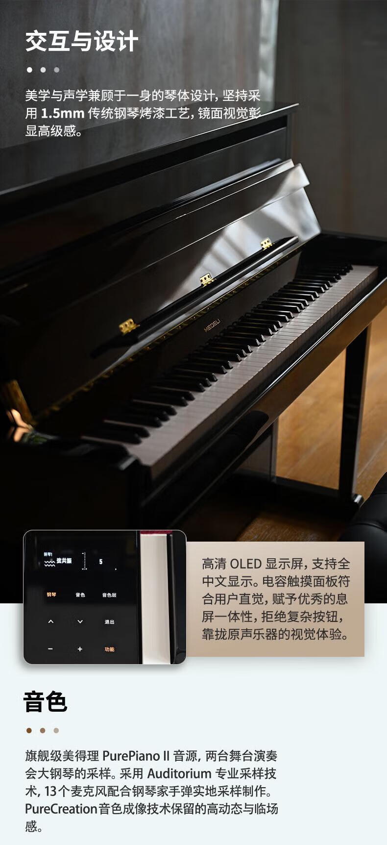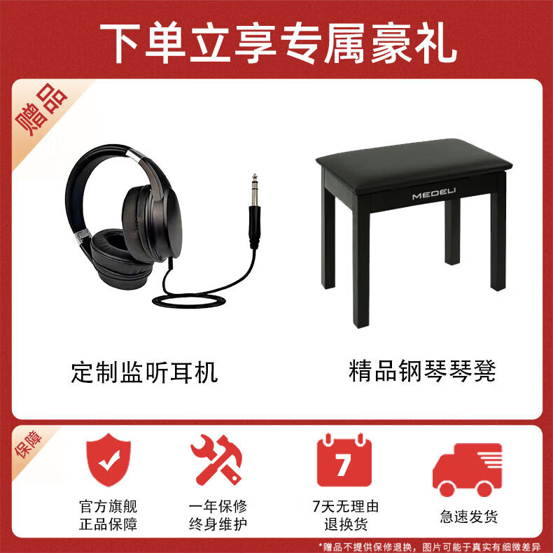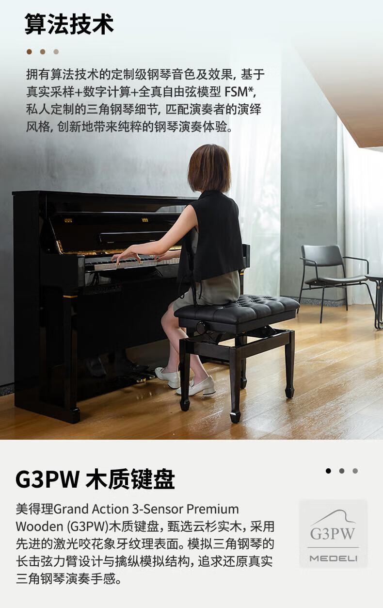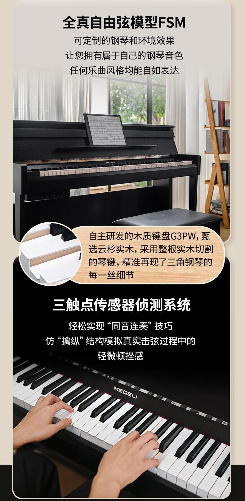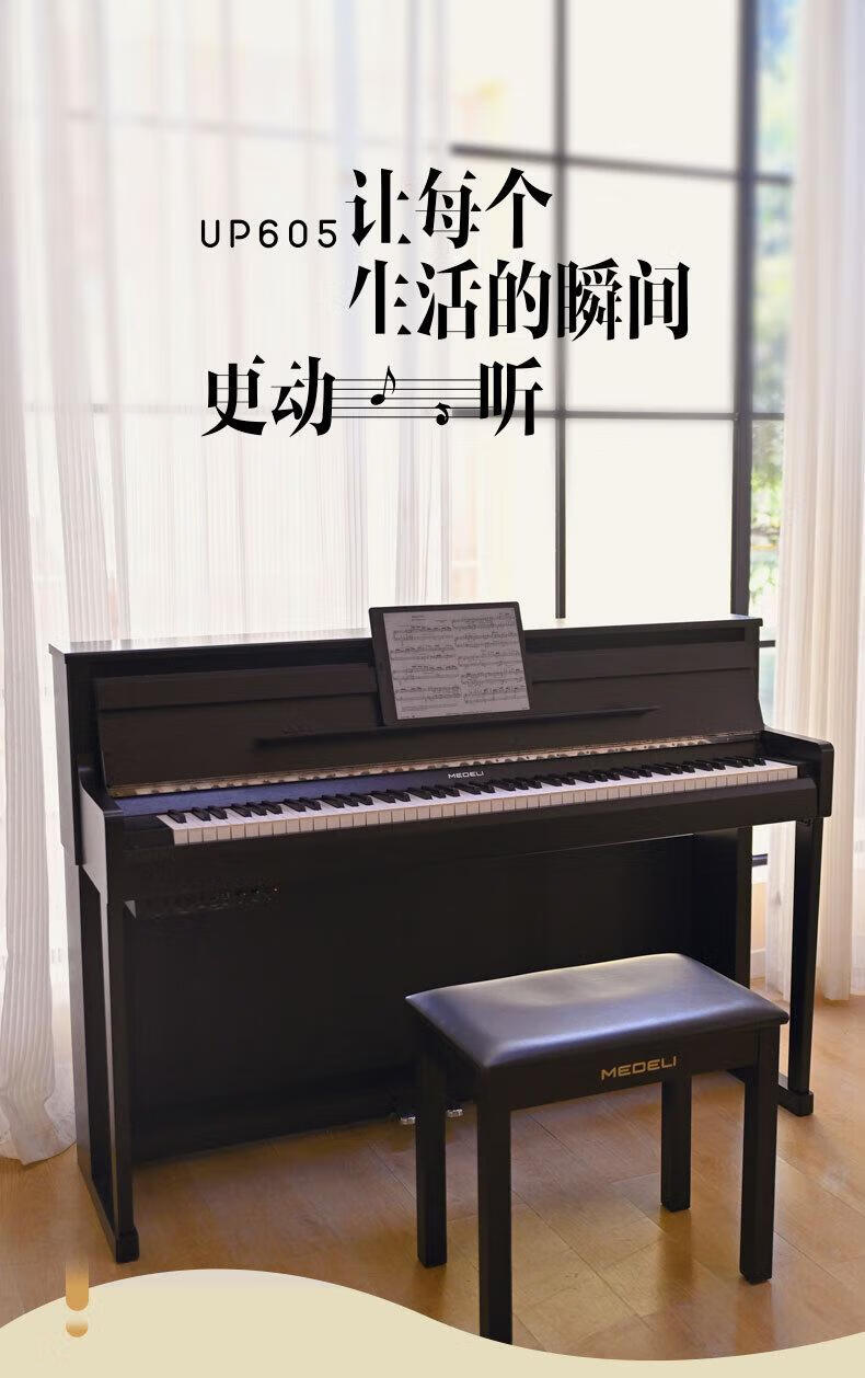 MEDELI UP605 electric piano UP405 professional 88-key graded UP205 heavy hammer keyboard beginner home upright piano UP605 (G3PW wooden keyboard) free high-end headphones and stool gift pack