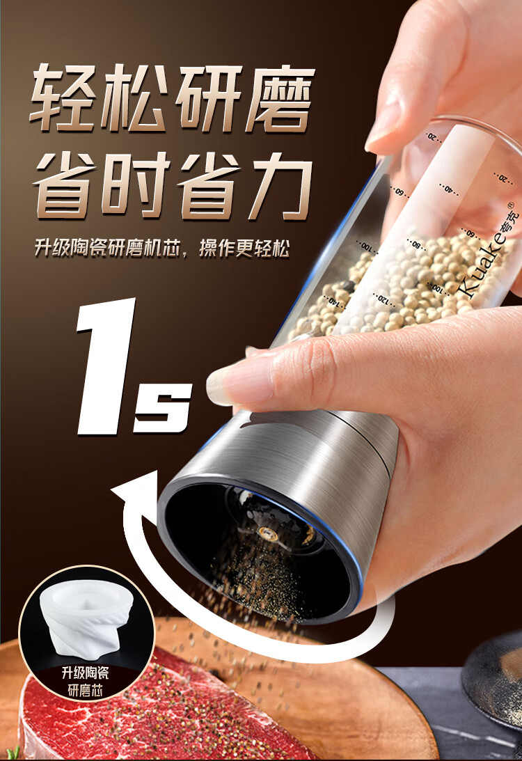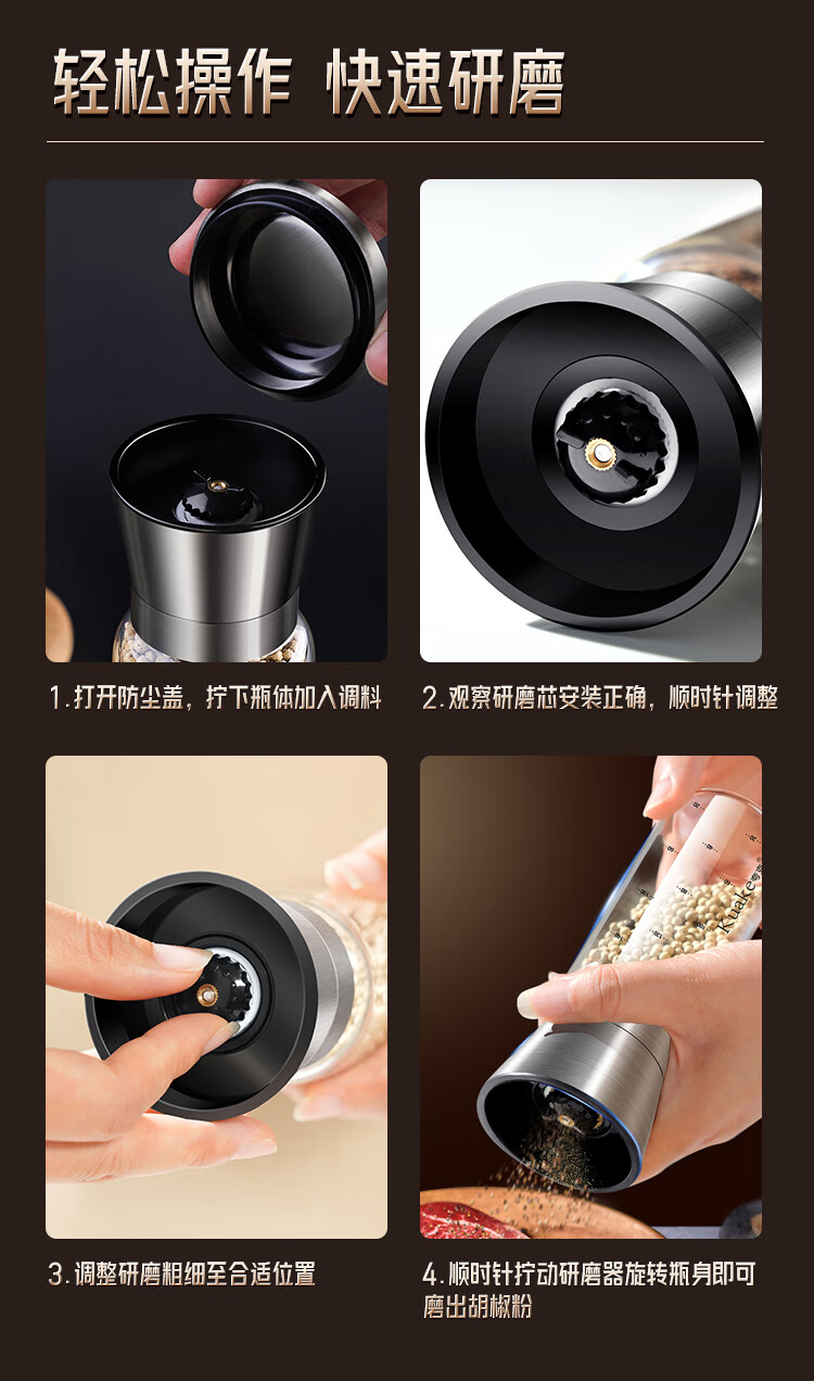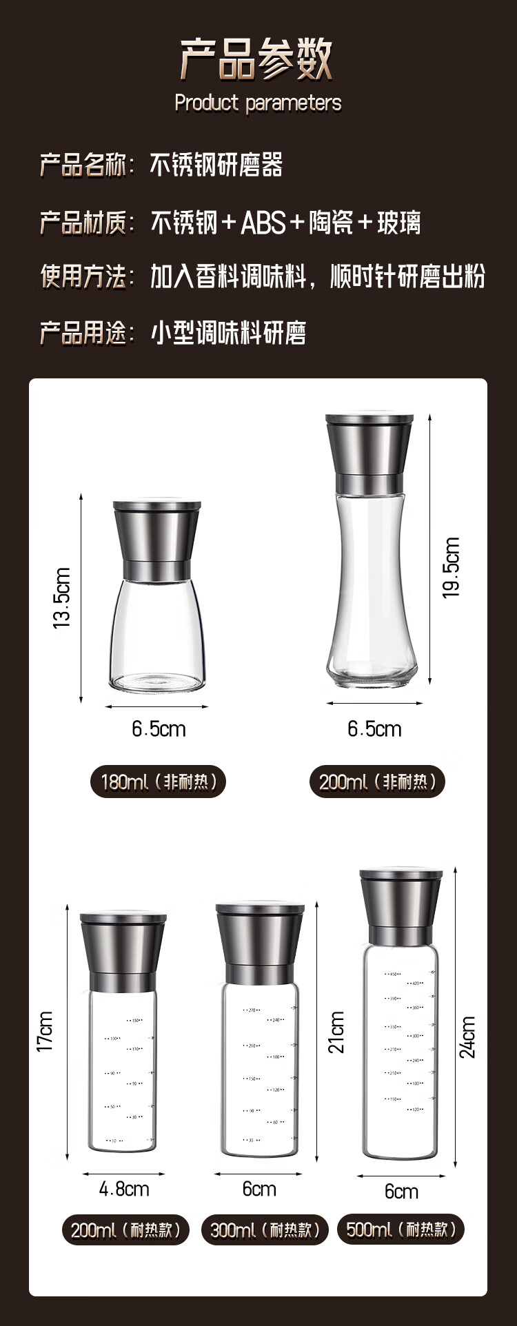 TYZAYR Japanese pepper grinder manual sea salt peppercorn grinding bottle black and white pepper grinding artifact seasoning jar now short model 180ml*2 pieces
