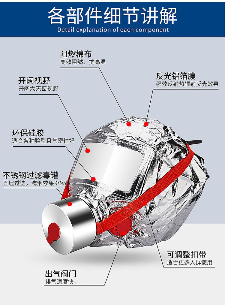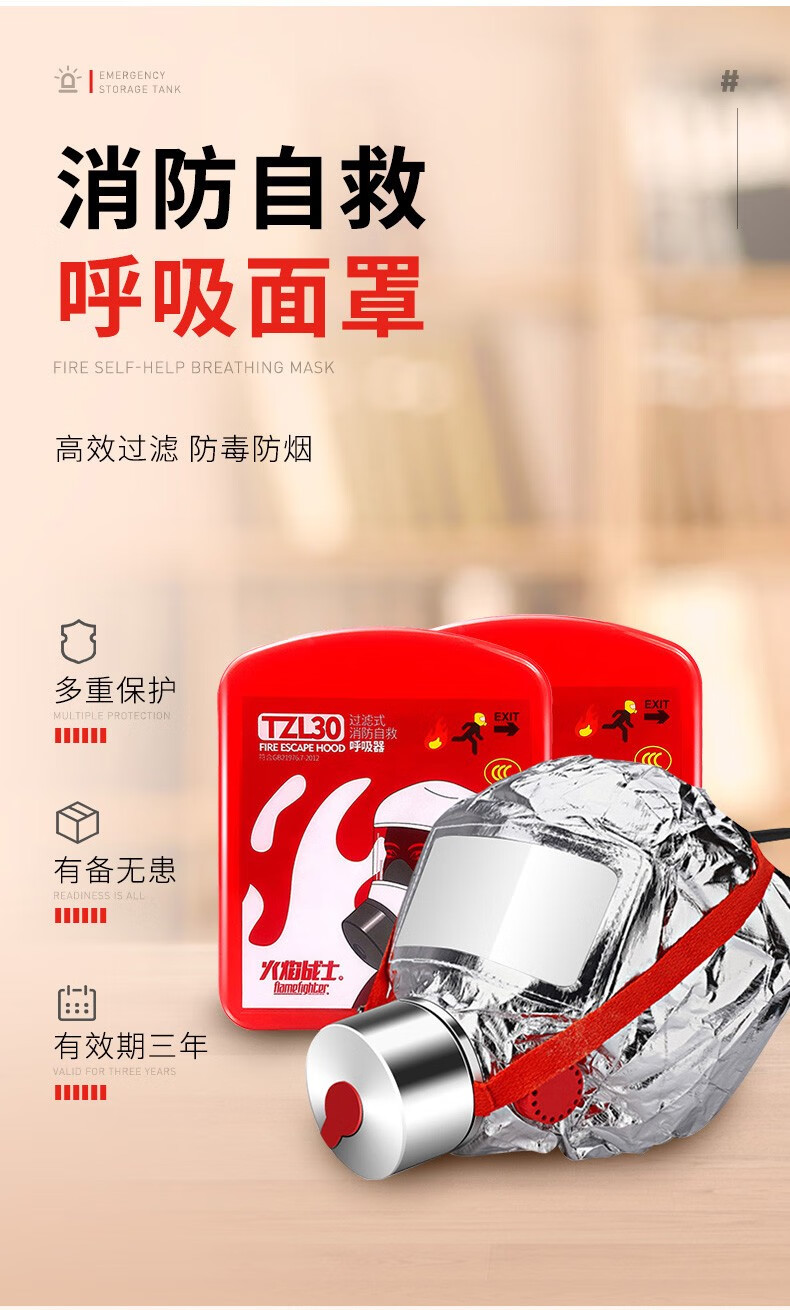 Household fire mask fire escape emergency kit set water-based fire extinguisher combination firefighting four-piece safety rope set home emergency escape 3-piece set