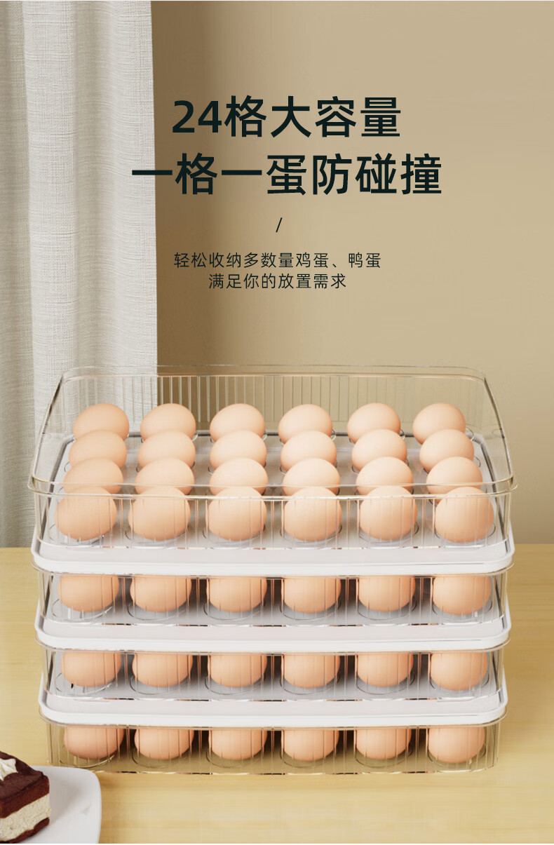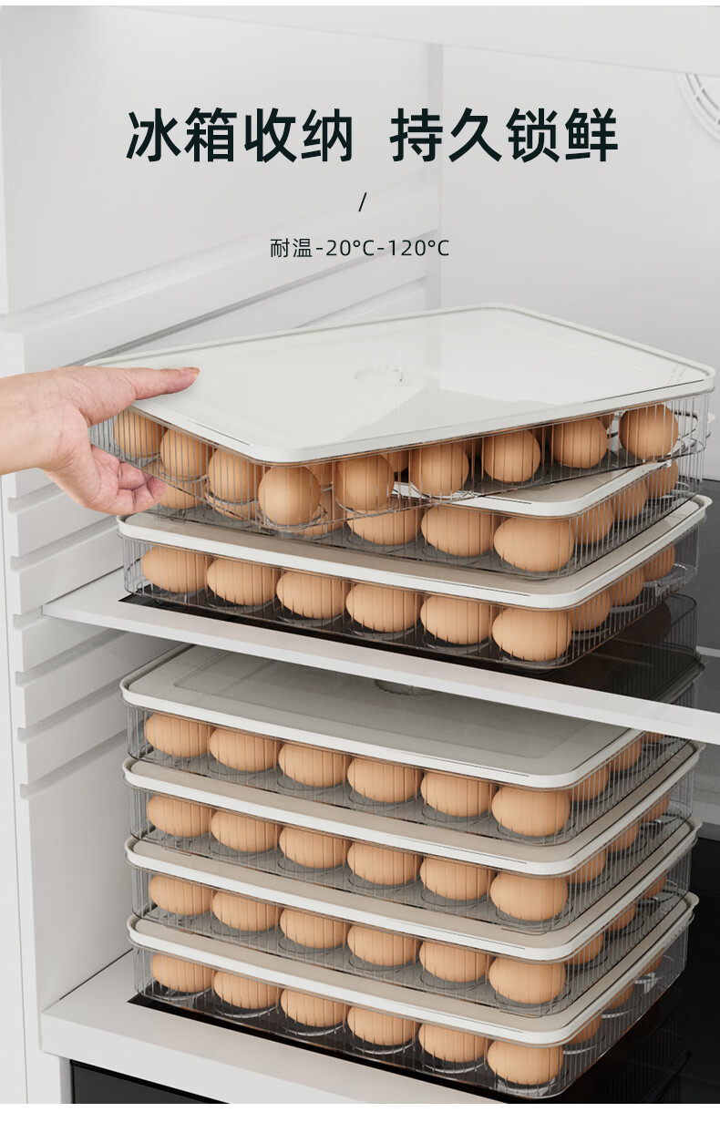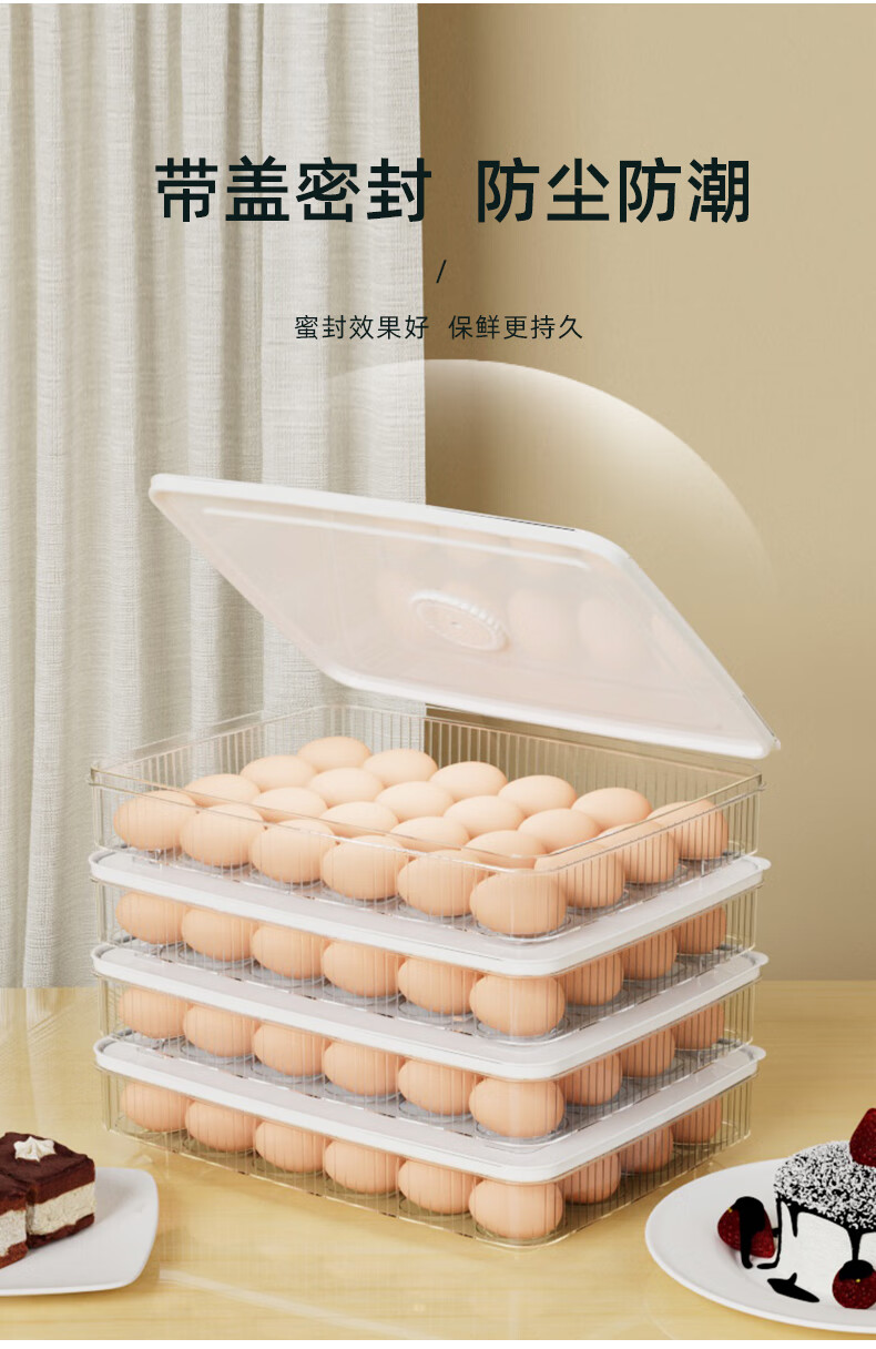 Mangong high-quality egg rack egg storage box refrigerator crisper box kitchen storage and organization artifact for storing eggs, milky white, four layers and four lids, can hold 96 eggs