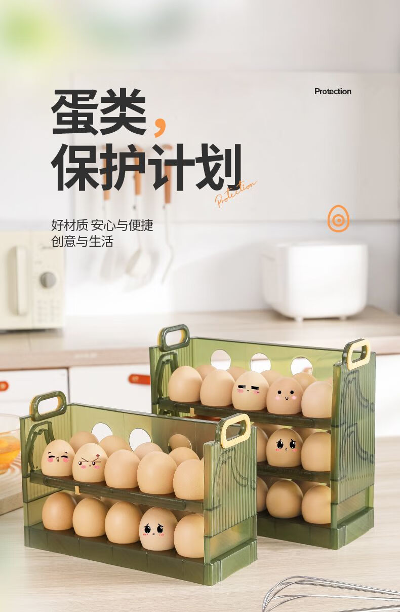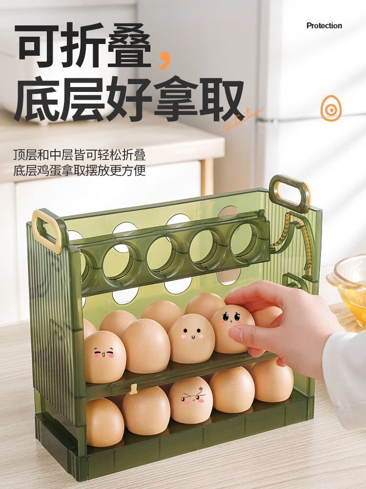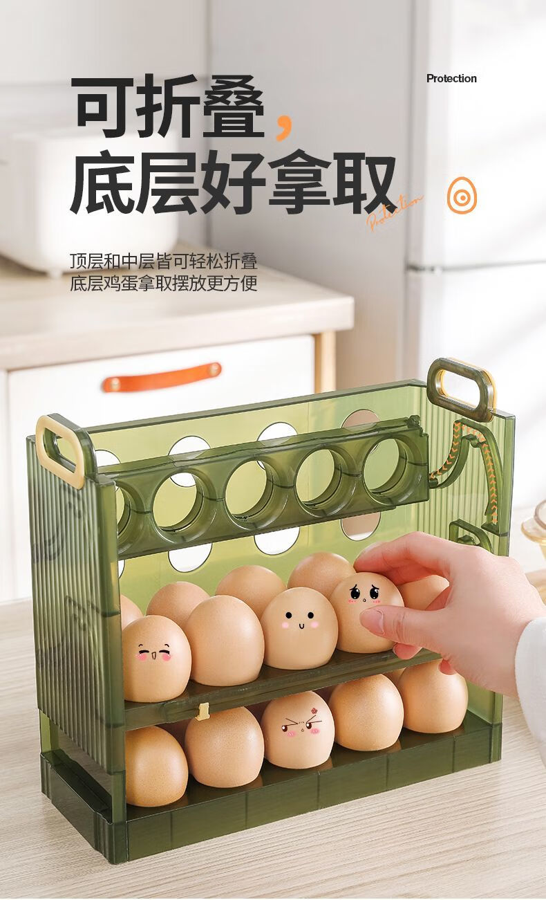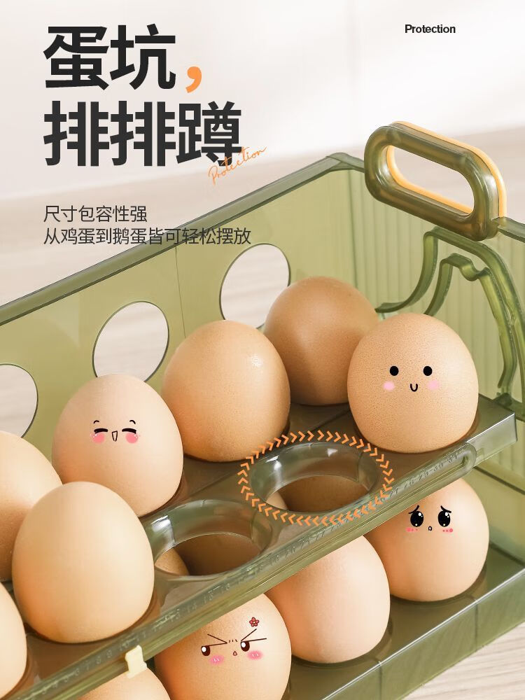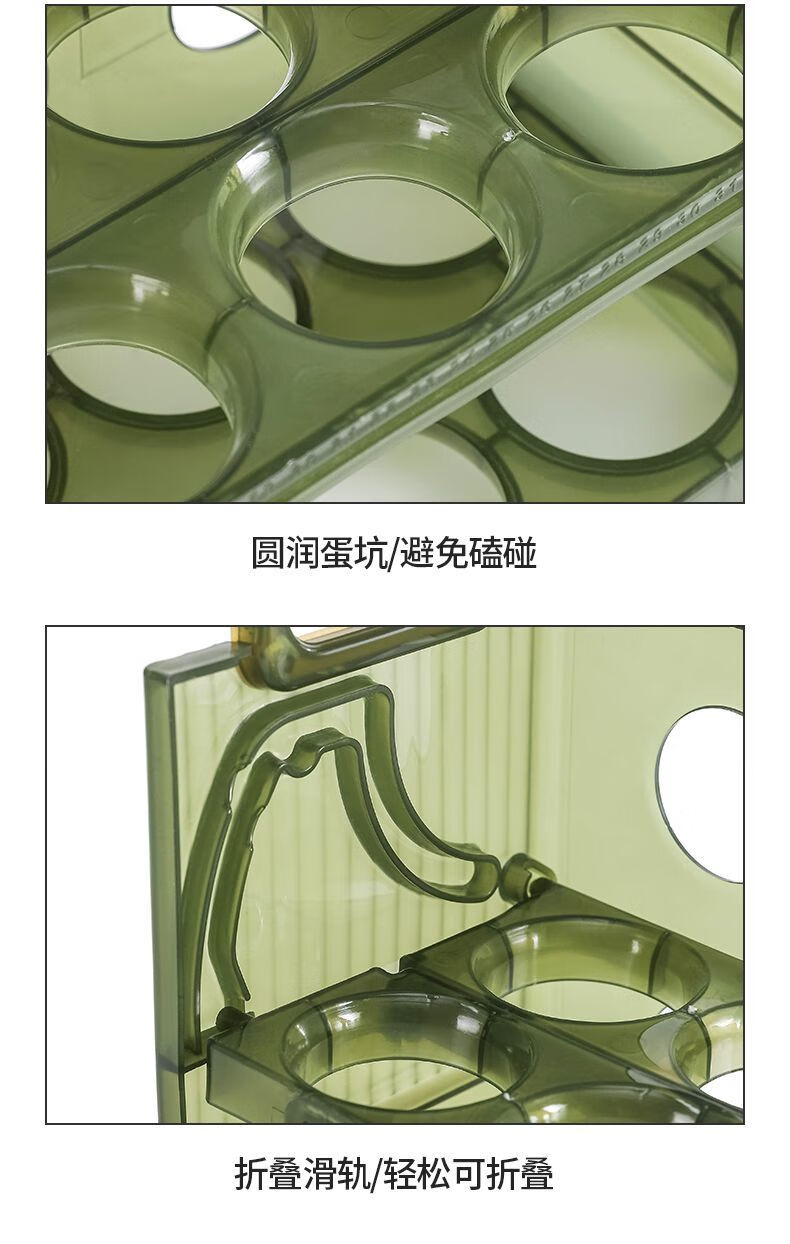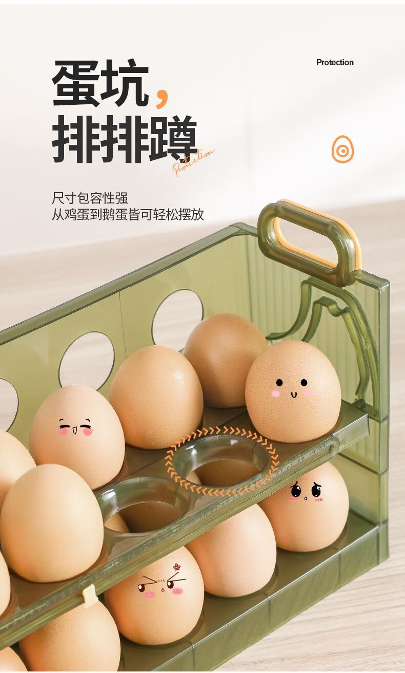 An Junsheng egg storage folding flip egg carton refrigerator side door with timer fresh-keeping egg carton egg tray egg storage device green double layer (can hold 20 eggs)